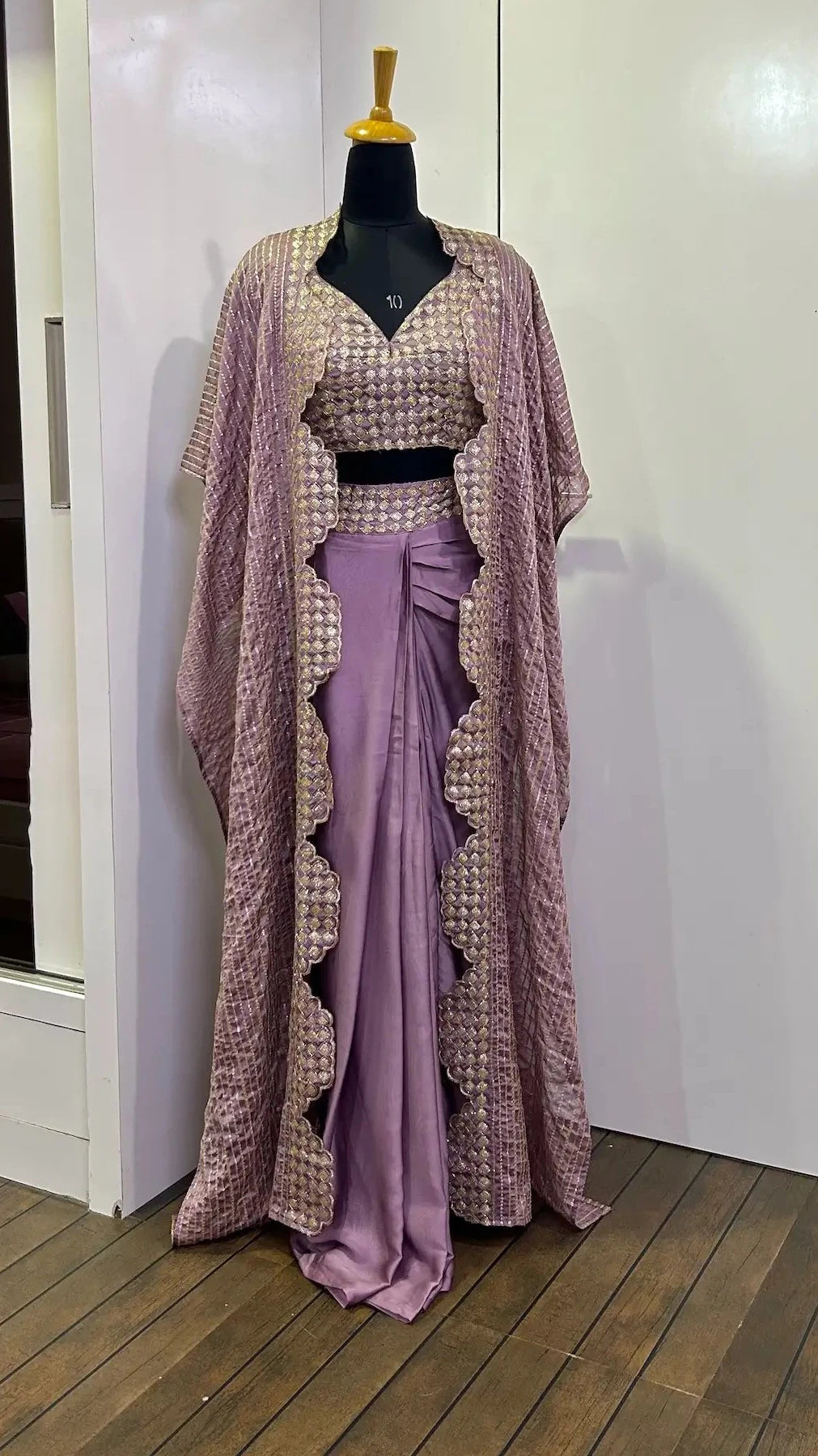 Lavender Kasturi Silk Indo-Western Ensemble with Sequin and Dori Work