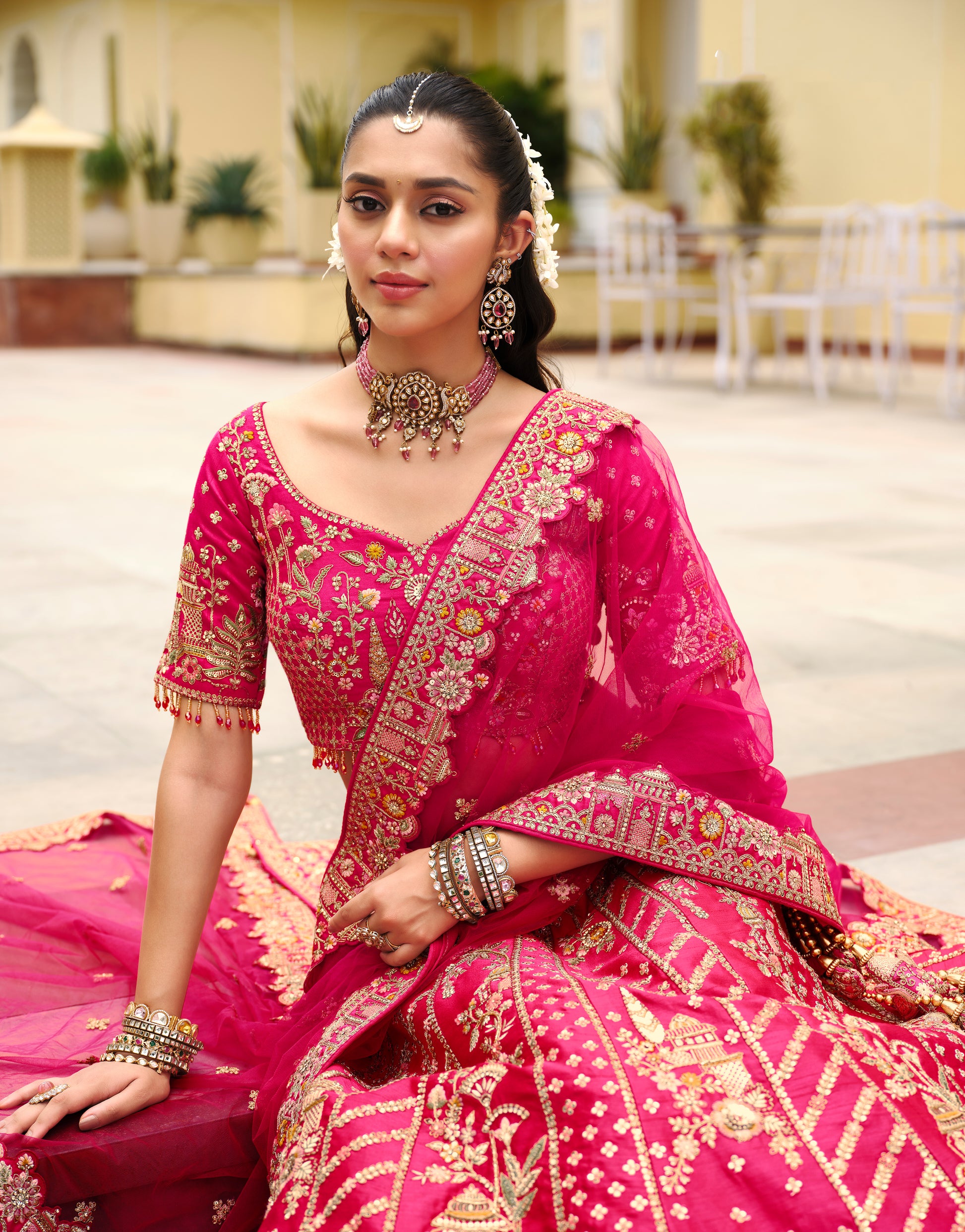 Exclusive Designer Fuchsia Pink Bridal Lehenga with Embroidered and Applique Work NAVYA COLLECTION 2025