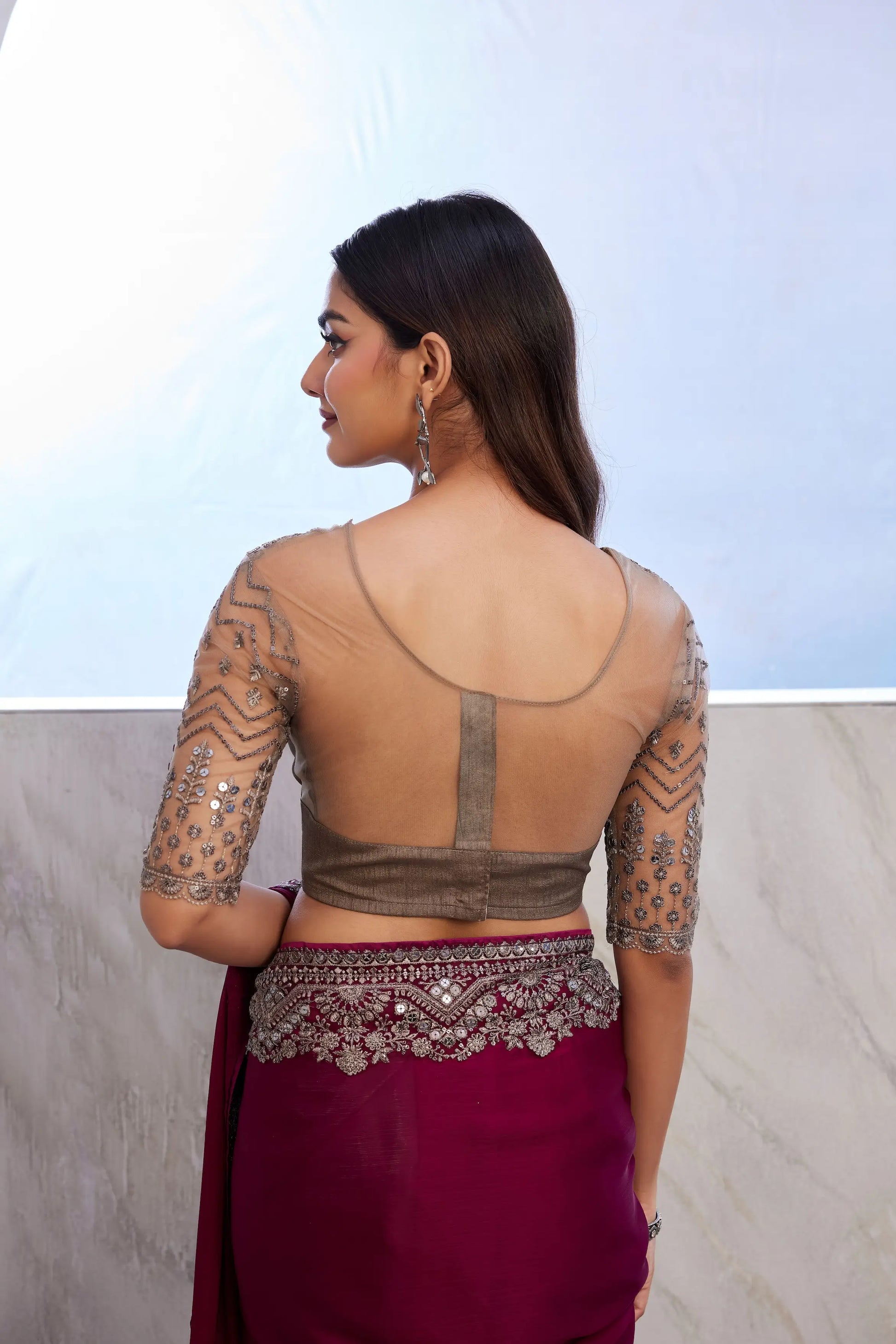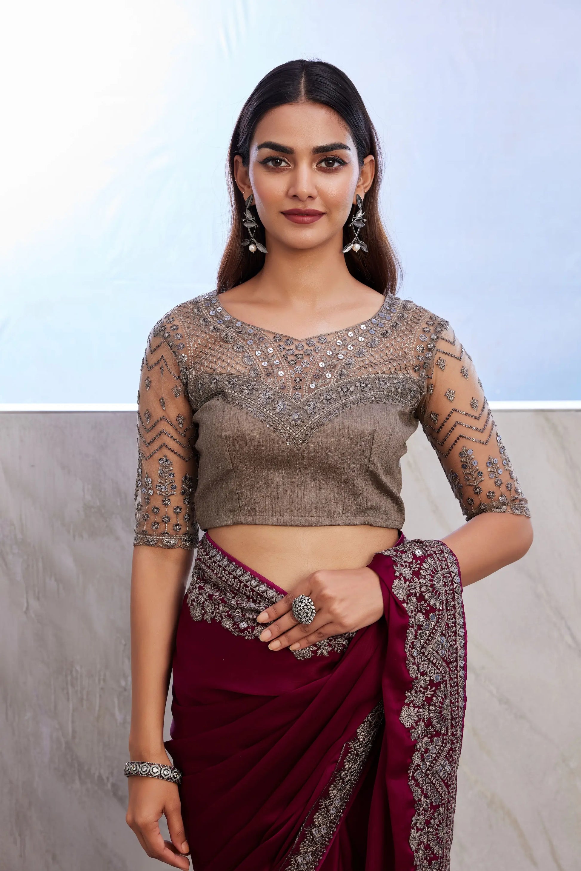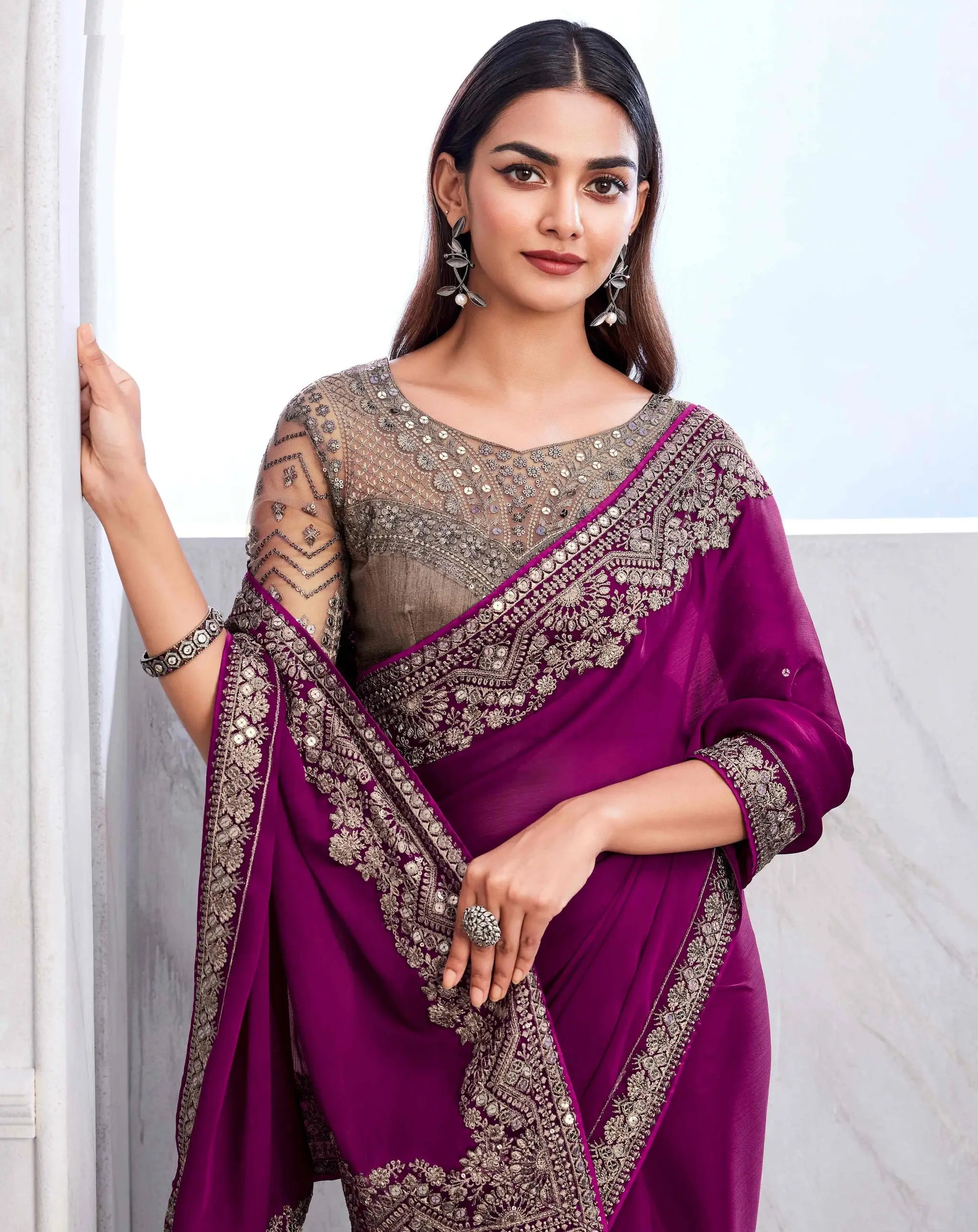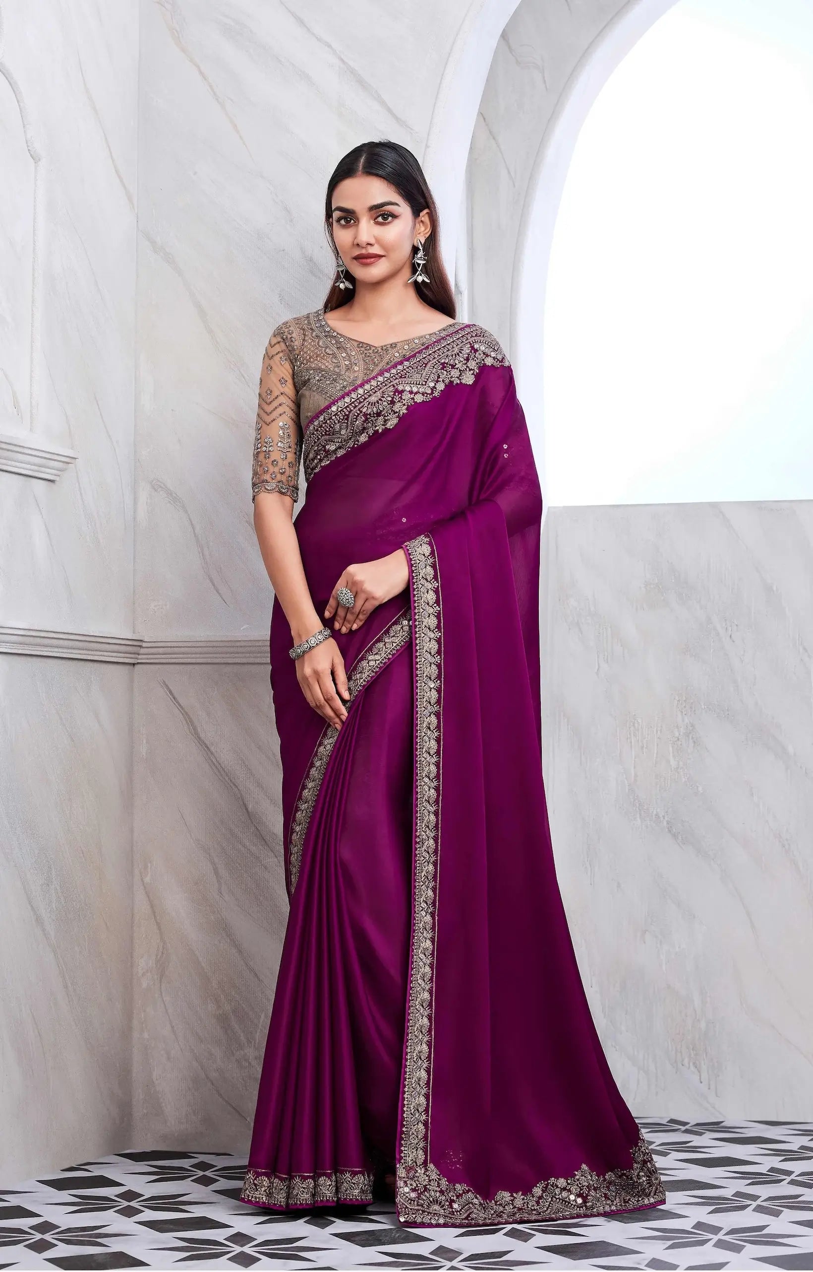 Celebrate in style with our sumptuous party saree. Designed with exquisite details and a flattering cut, its rich fabric and sophisticated drape are perfect to highlight your elegance. Ideal for weddings and festive events!