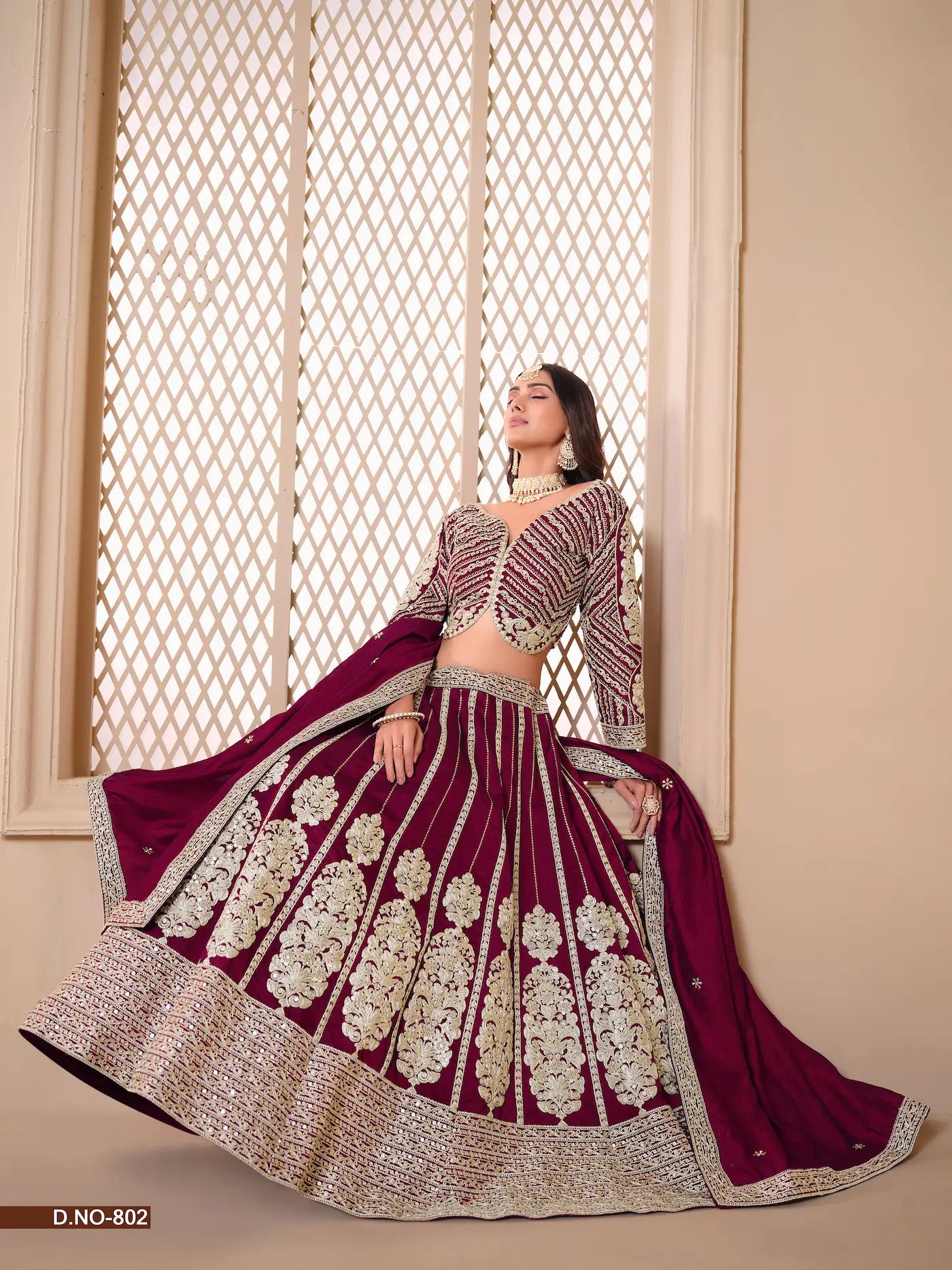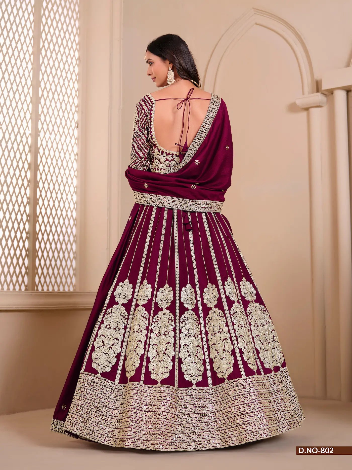Dark purple shimmer art silk lehenga choli set adorned with delicate thread work and shimmering sequin embroidery