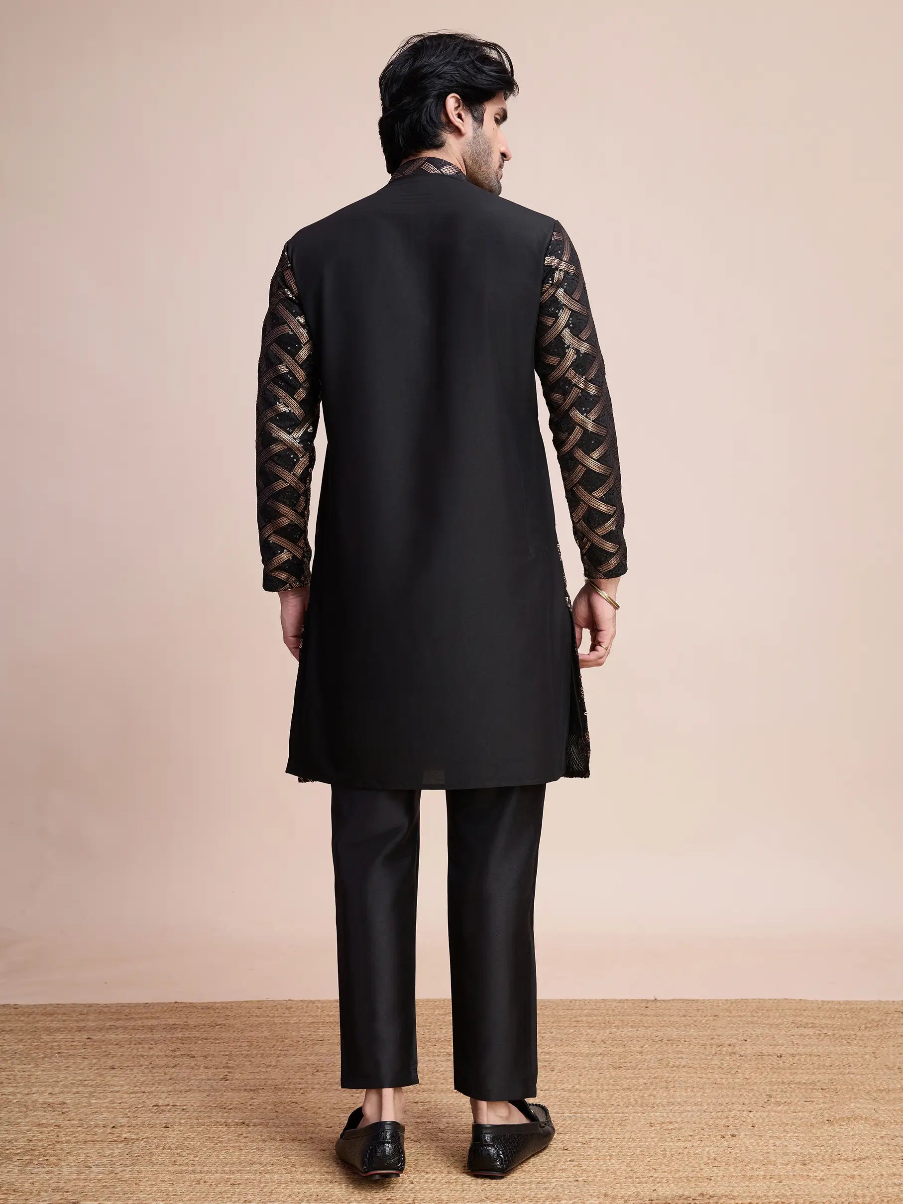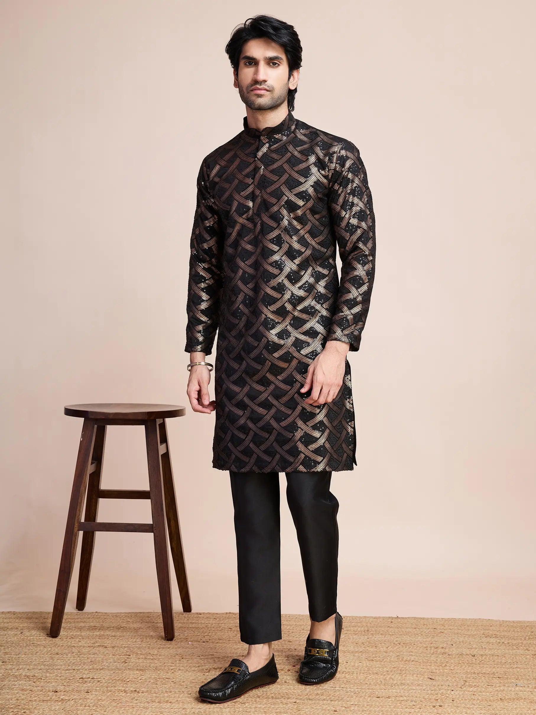 Kurta en soie noire avec broderie au fil et sequins COLLECTION AAMAN