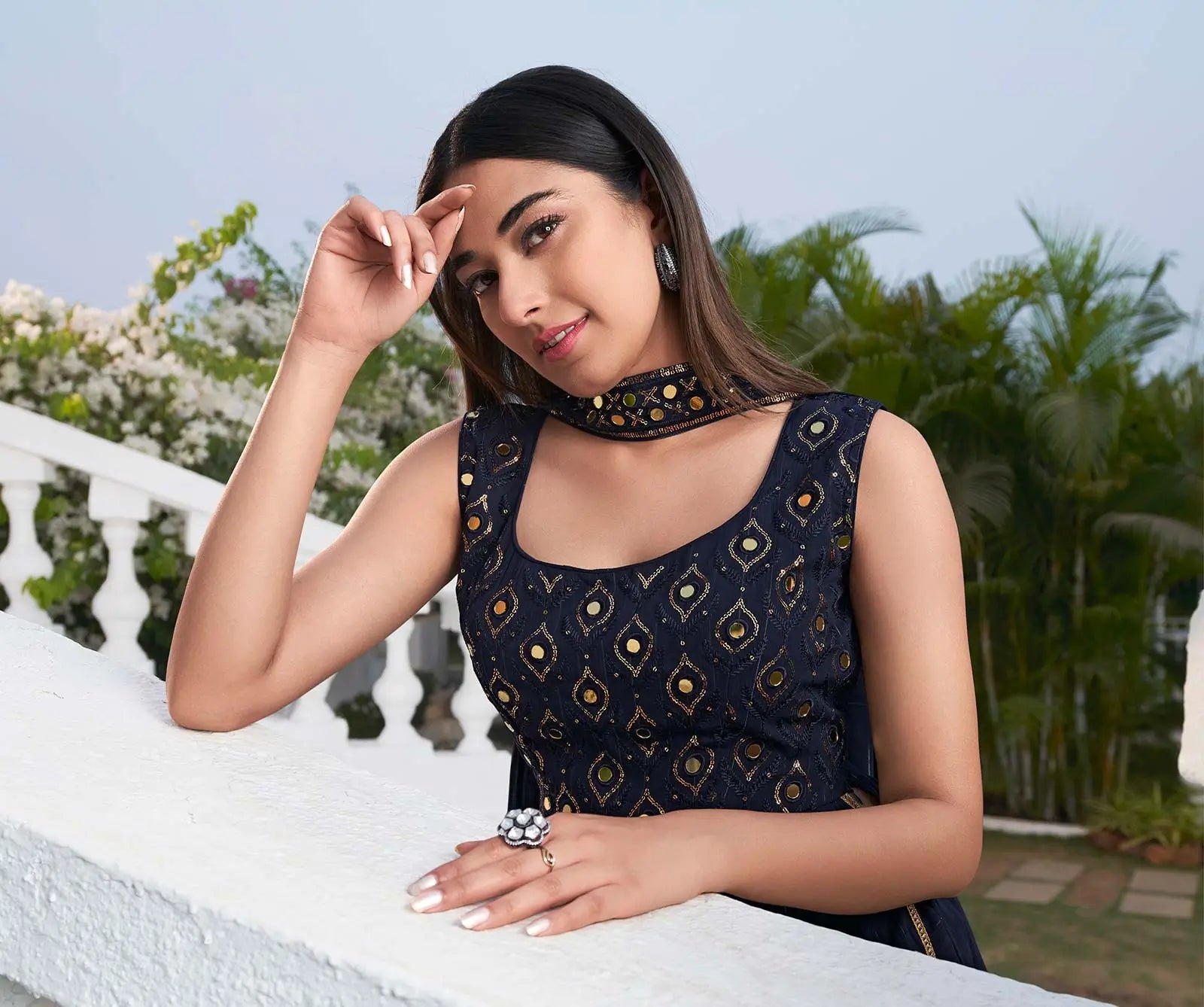 Nous sommes ravis de vous présenter notre collection de Salwar Suit, conçue pour célébrer l'élégance intemporelle avec une touche moderne. Chaque ensemble présente un haut en georgette gracieux, orné de broderies au fil et sequins exquises qui donnent vie à un art délicat. Le palazzo en georgette assorti garantit une silhouette fluide et élégante, tandis que le dupatta en georgette, également embelli de broderies détaillées au fil et sequins, ajoute une touche raffinée pour une finition parfaite. Cette collection est idéale pour celles et ceux qui apprécient un glamour subtil et un style classique.
