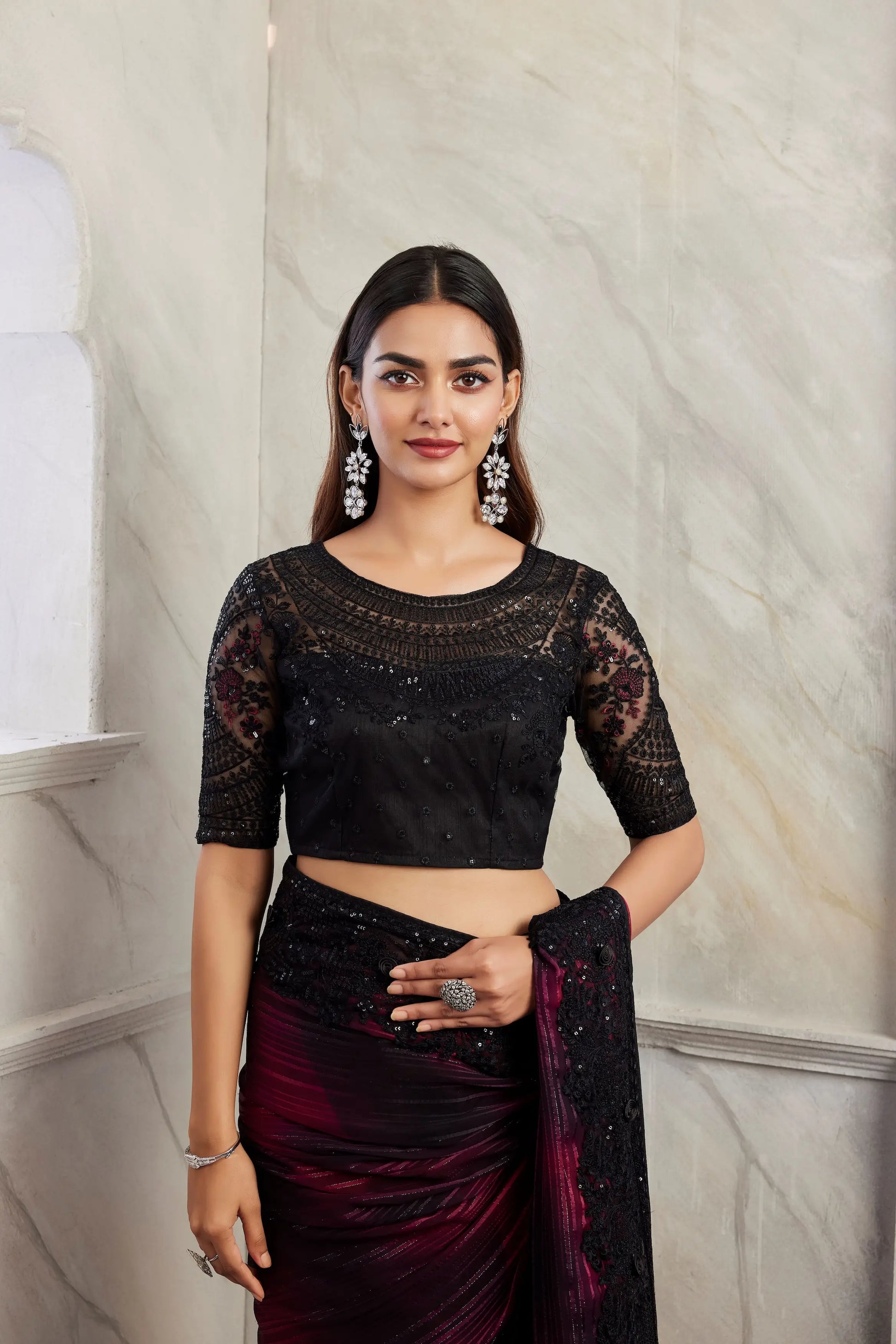 Célébrez avec style avec ce sari éblouissant pour les occasions festives. Conçu avec des détails soignés et une coupe flatteuse. Son tissu riche et sa drapé sophistiquée sont parfaits pour mettre en valeur votre élégance. Idéal pour les mariages et les événements festifs !