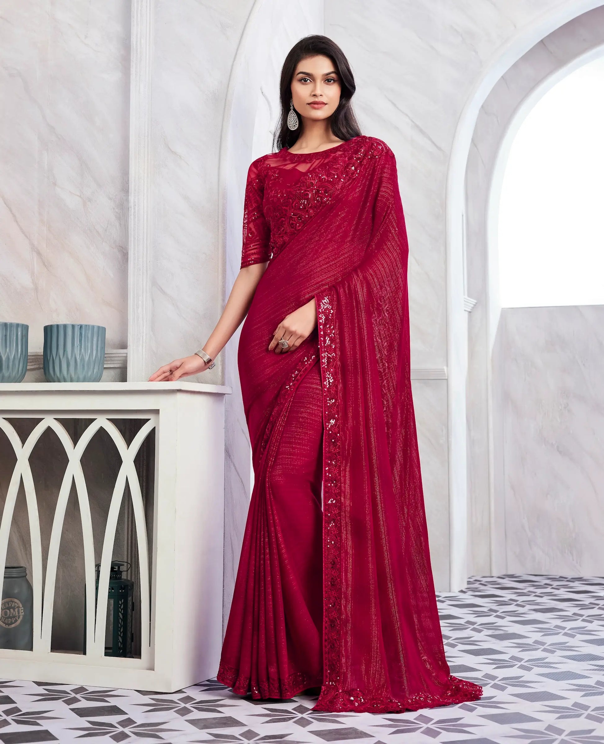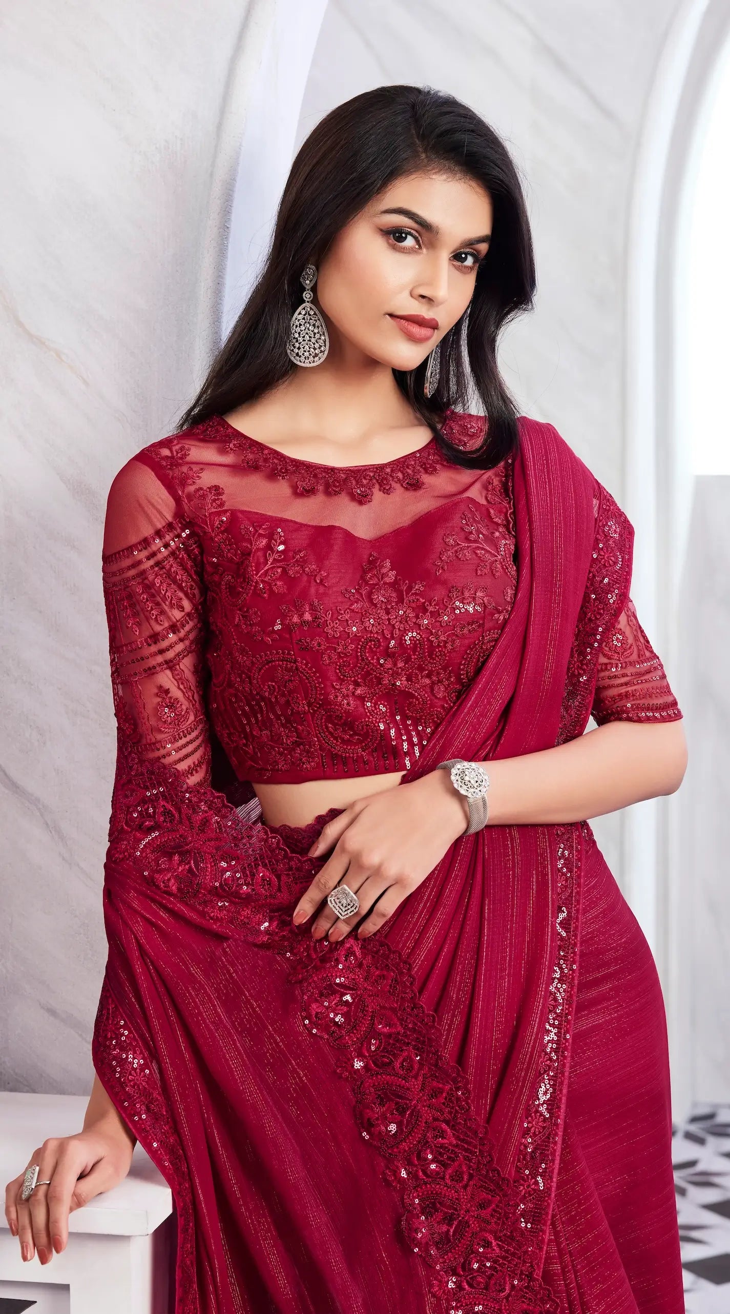 Célébrez avec style grâce à notre saree de fête époustouflant. Conçu avec des détails raffinés et une coupe flatteuse. Son tissu riche et son drapé sophistiqué sont parfaits pour mettre en valeur votre élégance. Idéal pour les mariages et événements festifs !