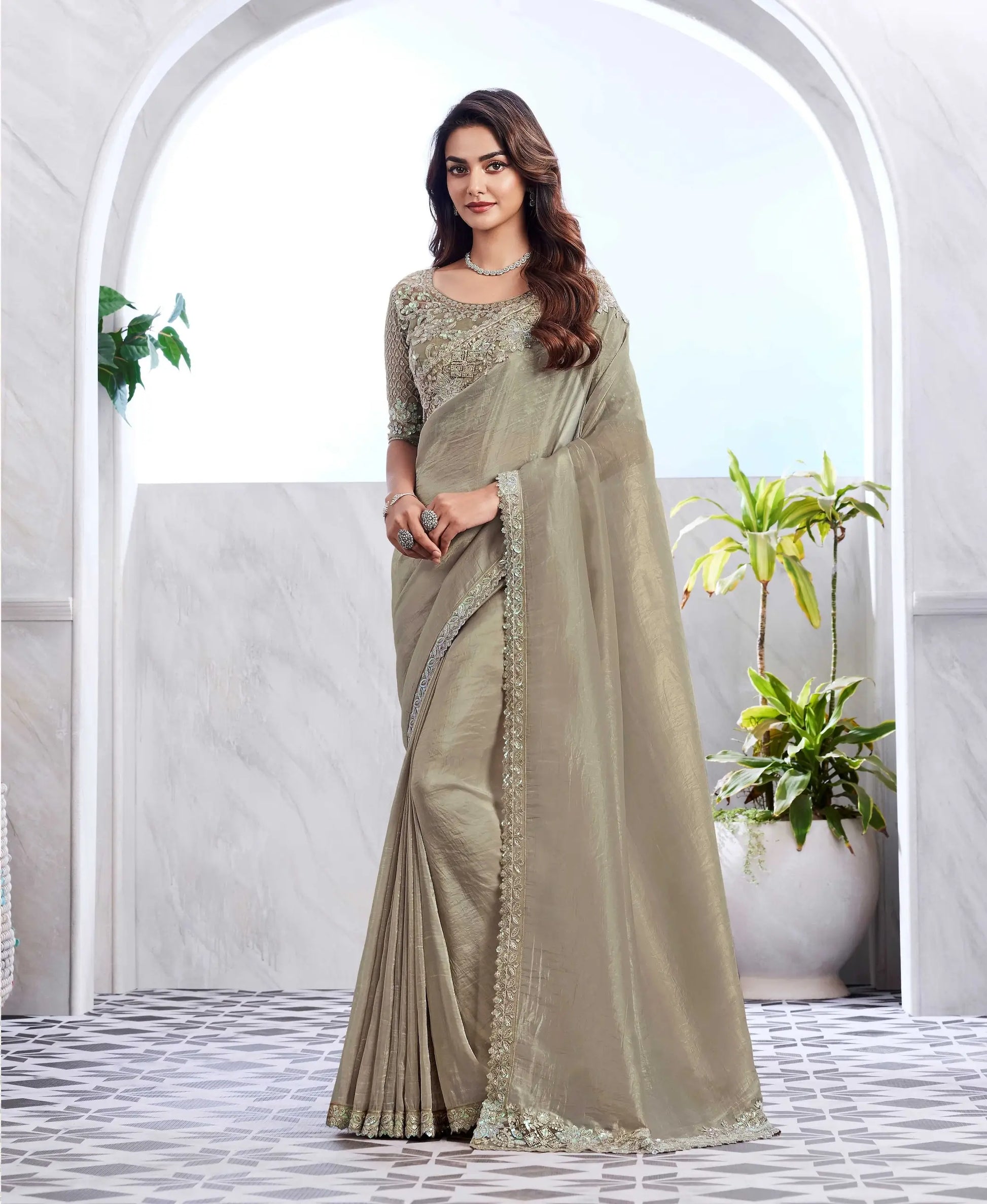 Célébrez avec style avec notre incroyable saree de fête. Conçu avec des détails délicats et une coupe flatteuse, son tissu riche et sa drapé sophistiquée sont parfaits pour mettre en valeur votre élégance. Idéal pour les mariages et événements festifs !