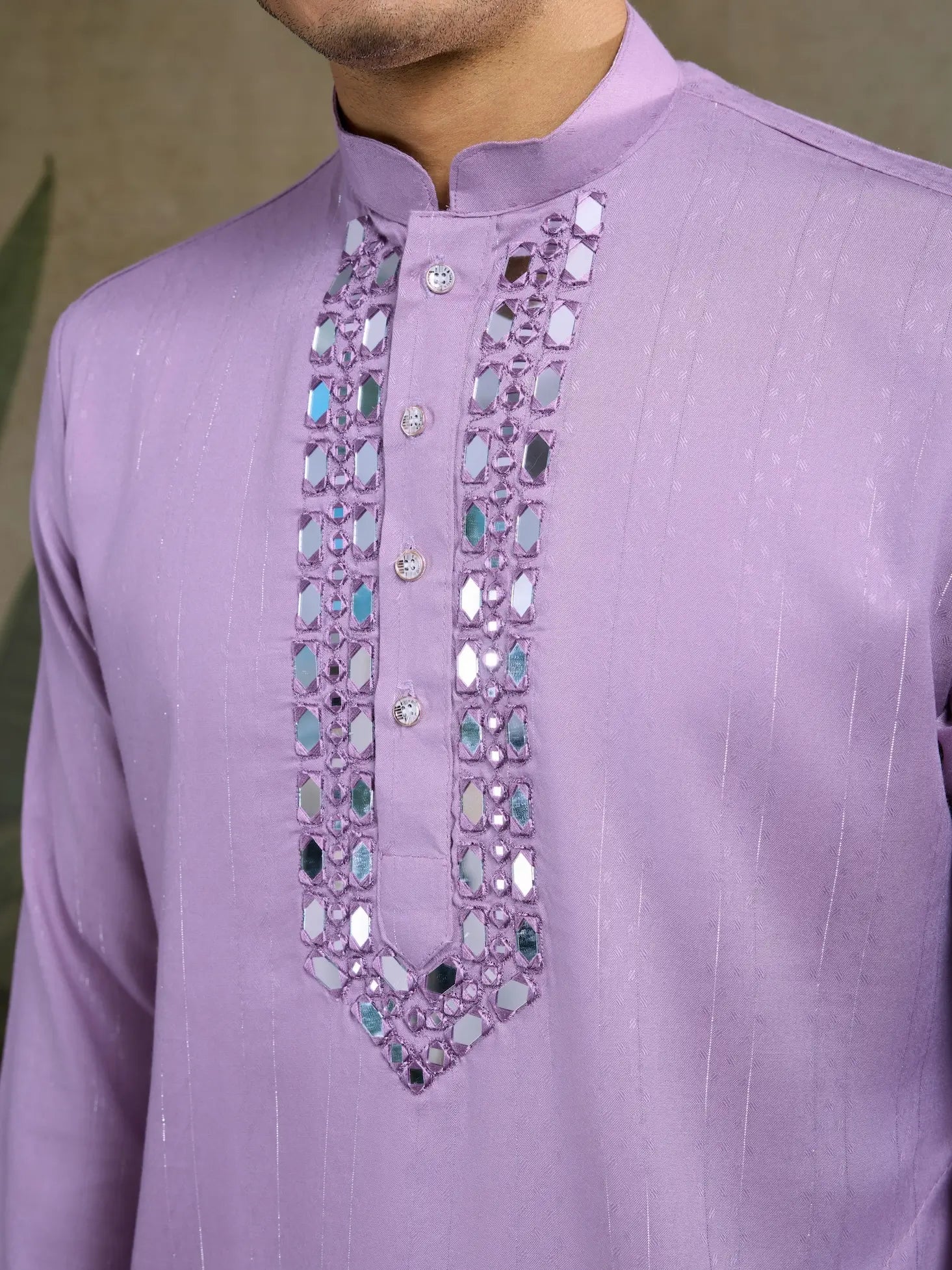 Ensemble Kurta Mauve avec Travail de Jari et Miroir, Pantalon et Dupatta