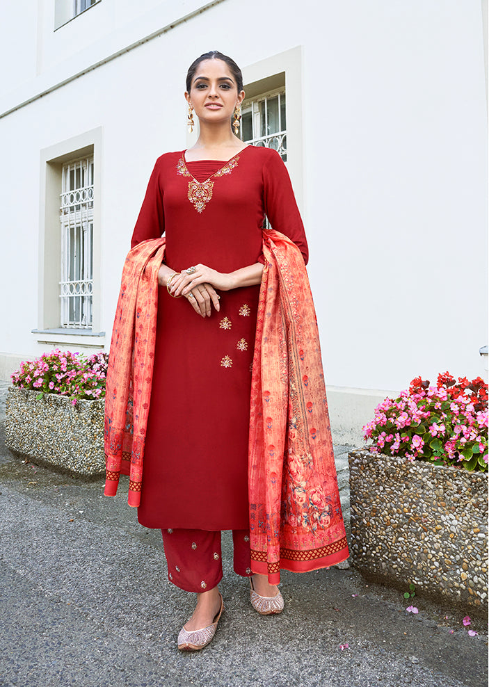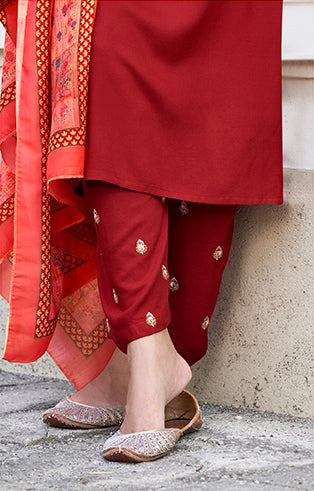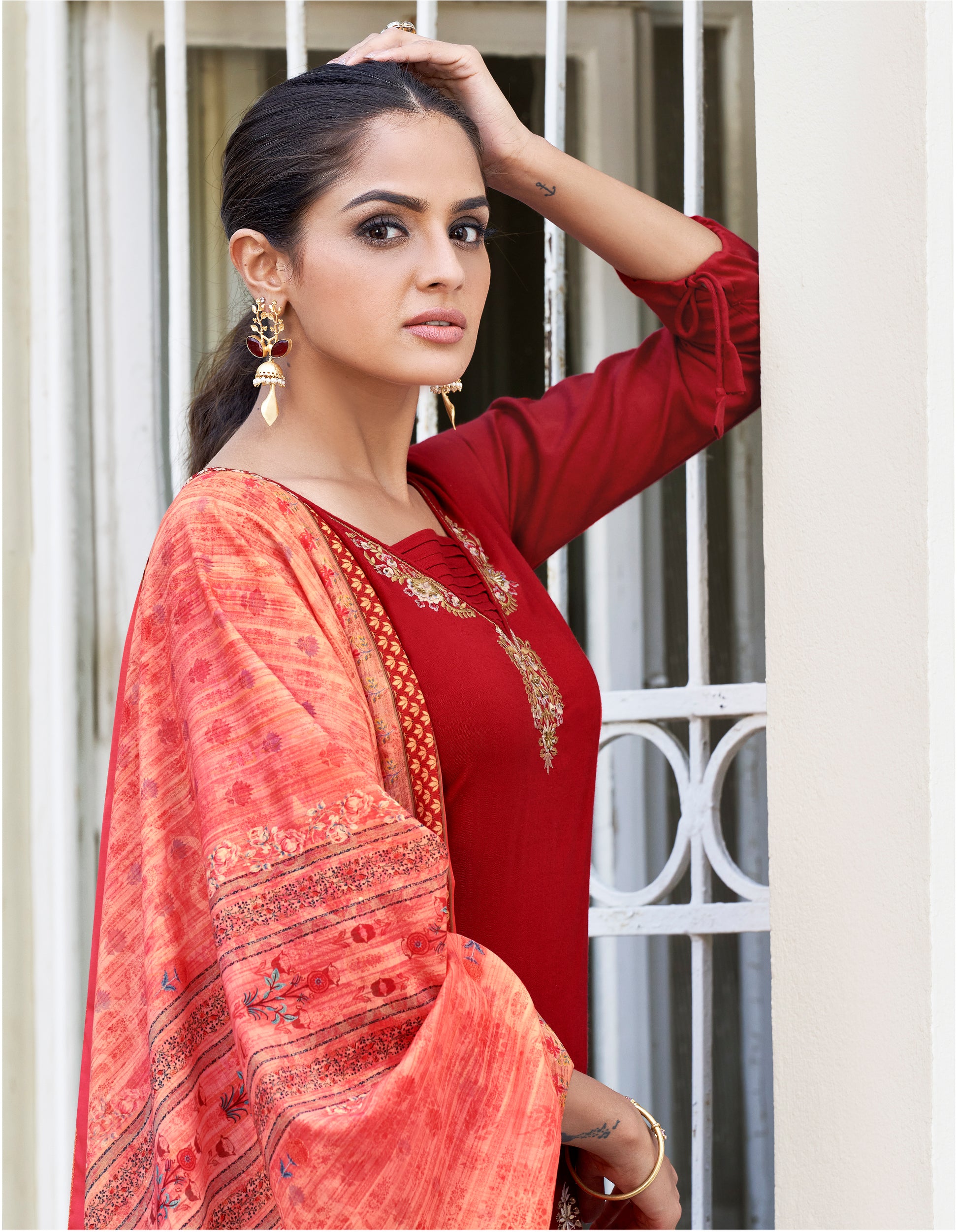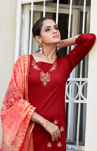Ensemble Kurta long en rayon avec dupatta rouge flamboyant et détails modernes