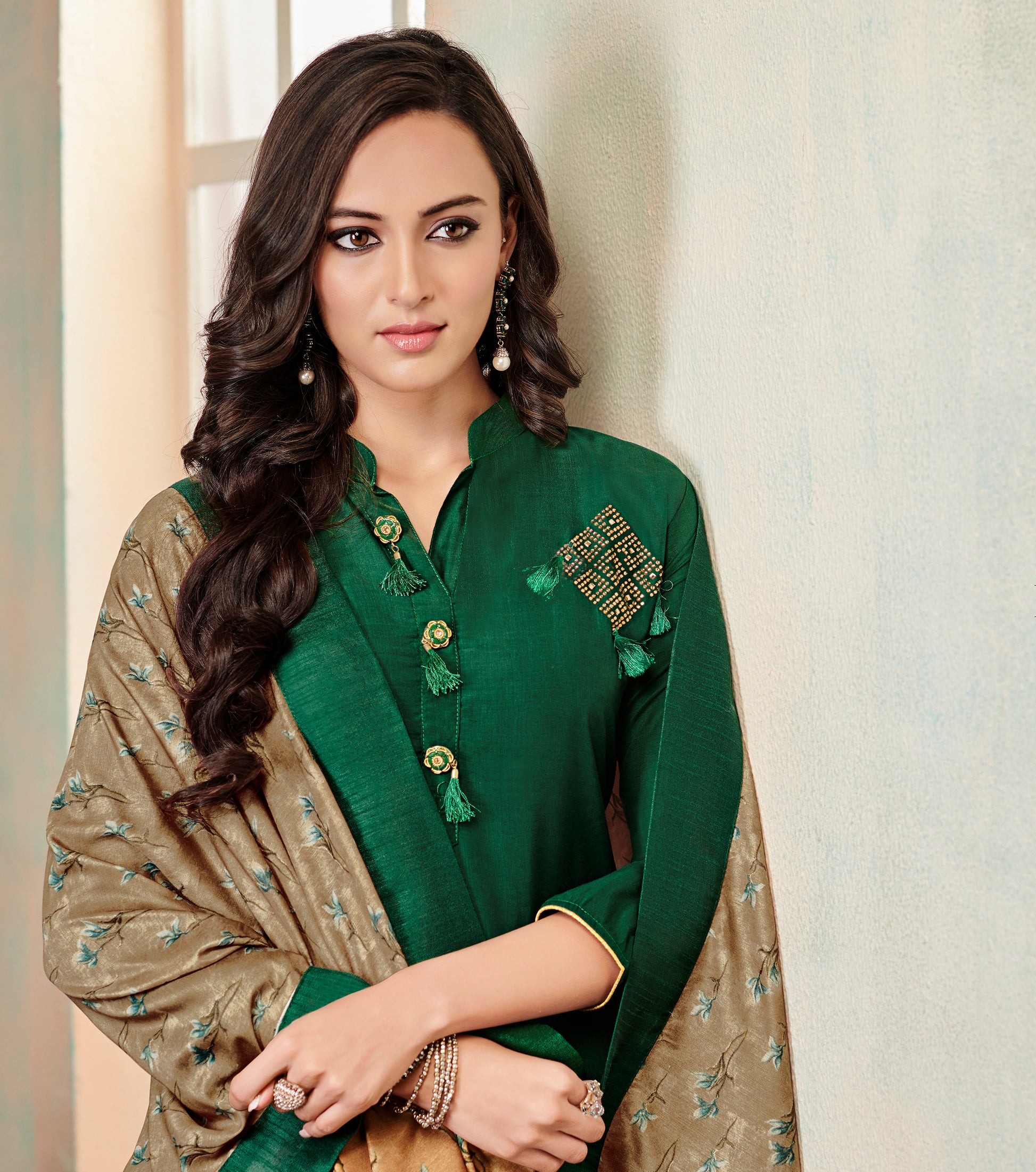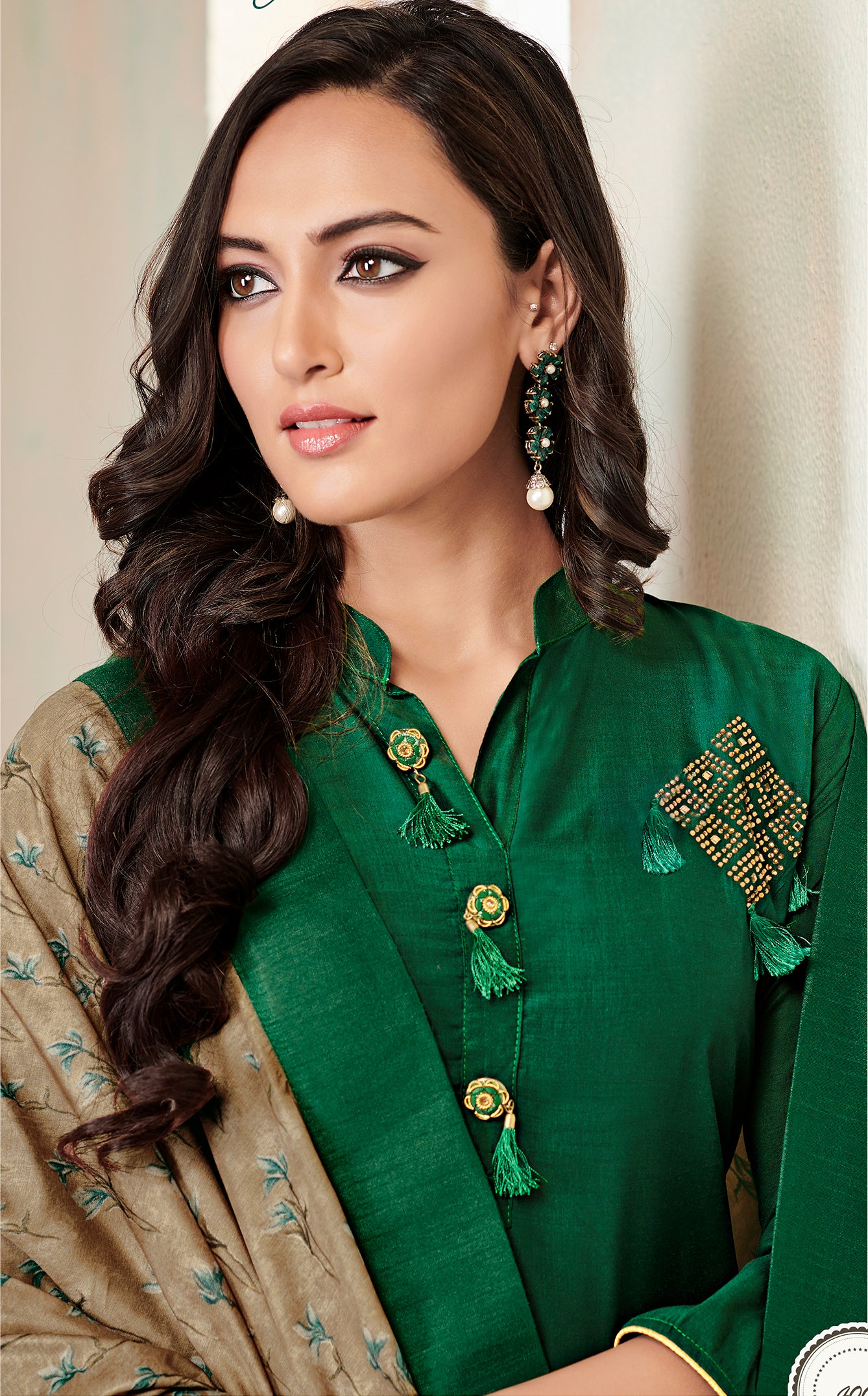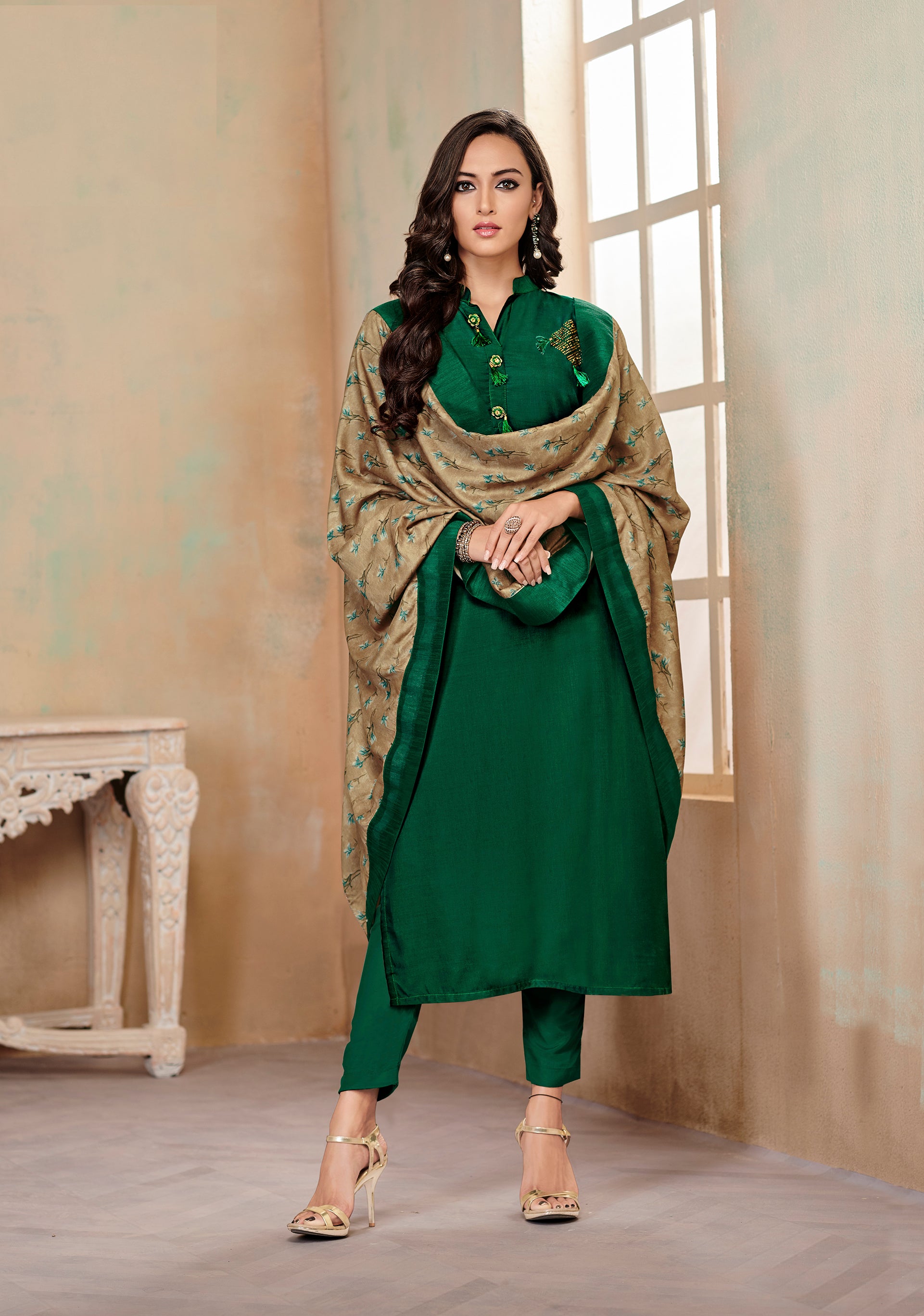 Ensemble Kurta long avec dupatta et poches élégant vert émeraude