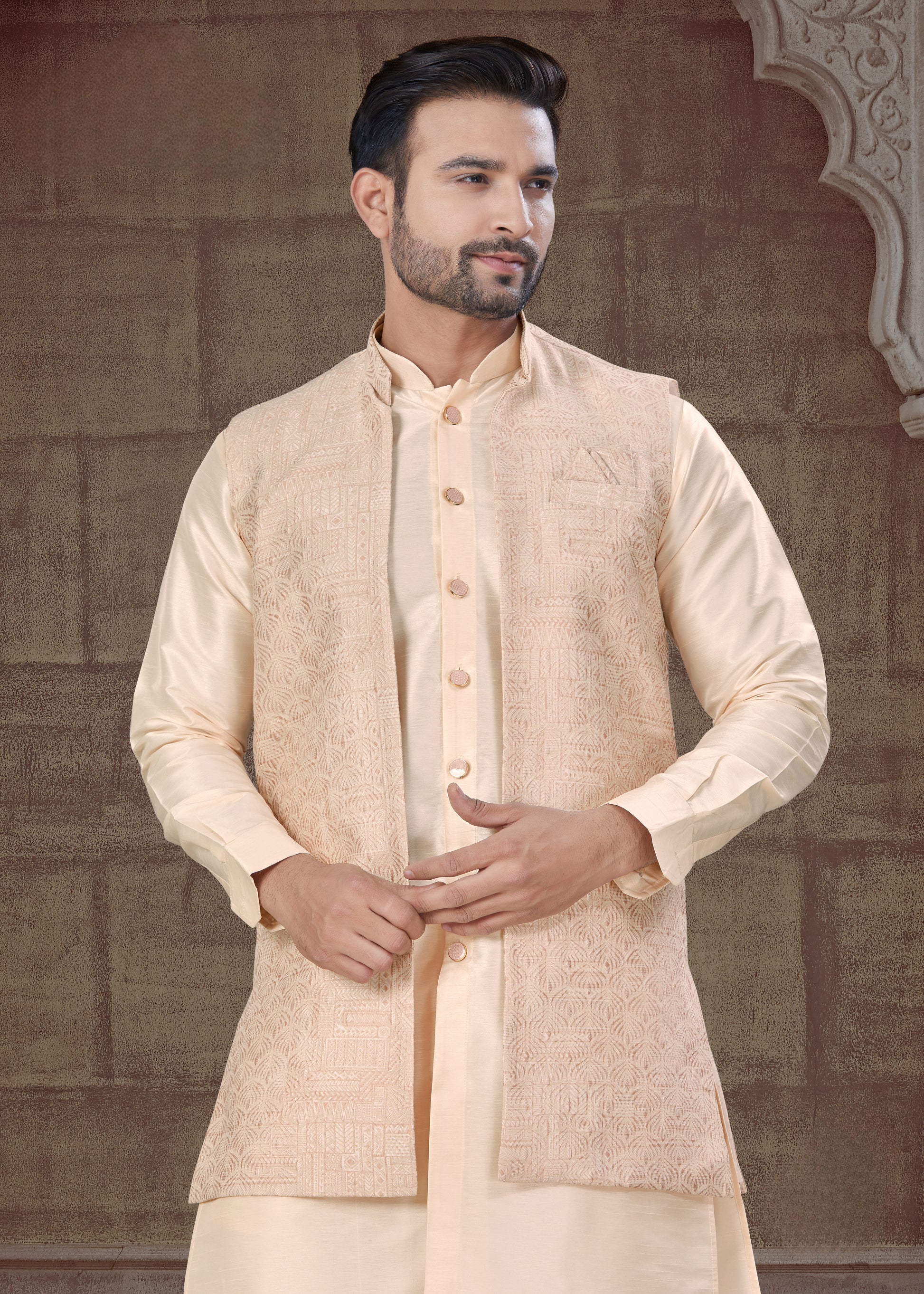 Ensemble Kurta beige ancien avec Veste Ouverte Ton sur Ton