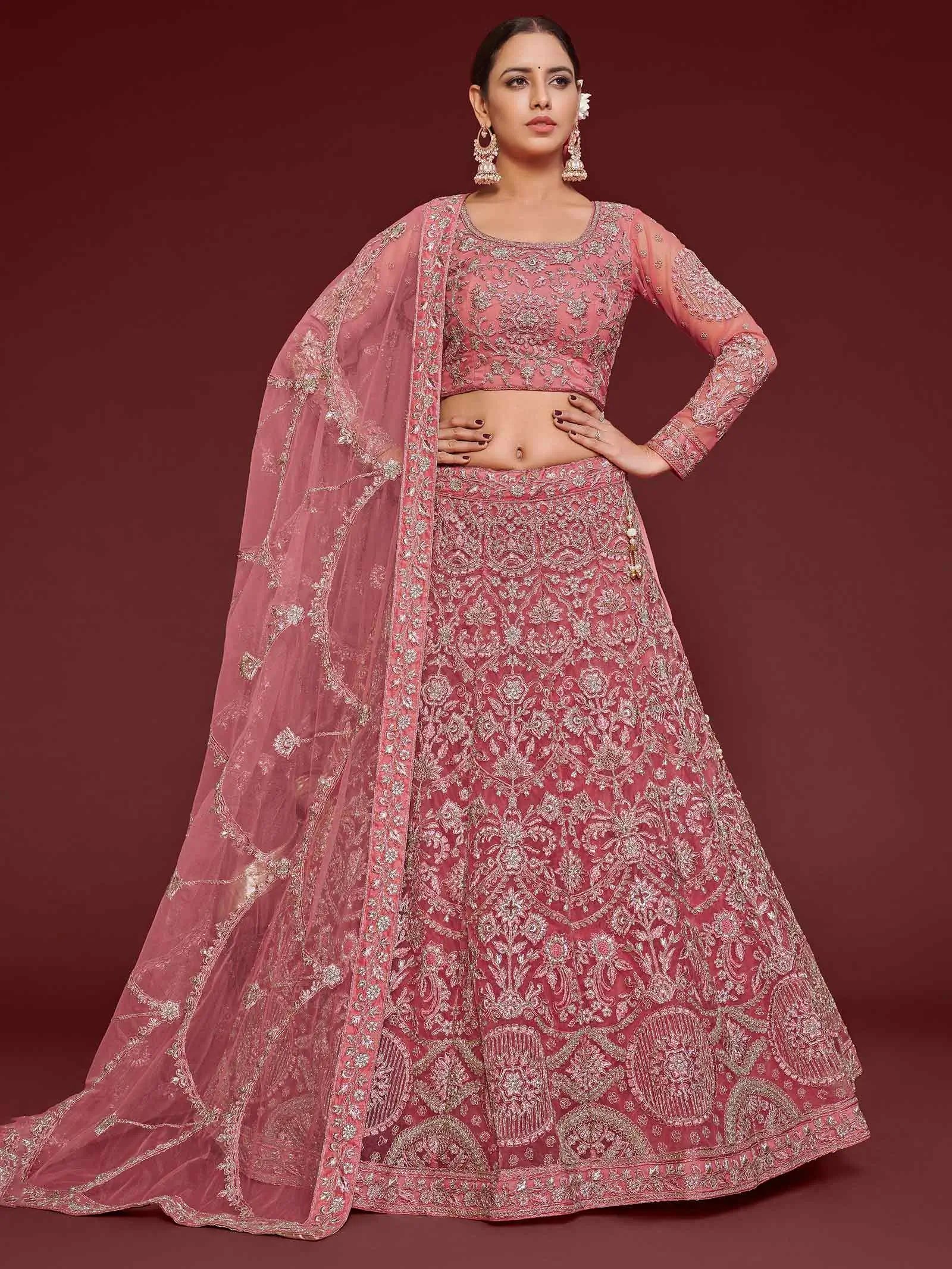 Lehenga Choli en tulle doux Rose fantaisie avec broderie en fil, zari, badla et dori pailleté COLLECTION JESAL