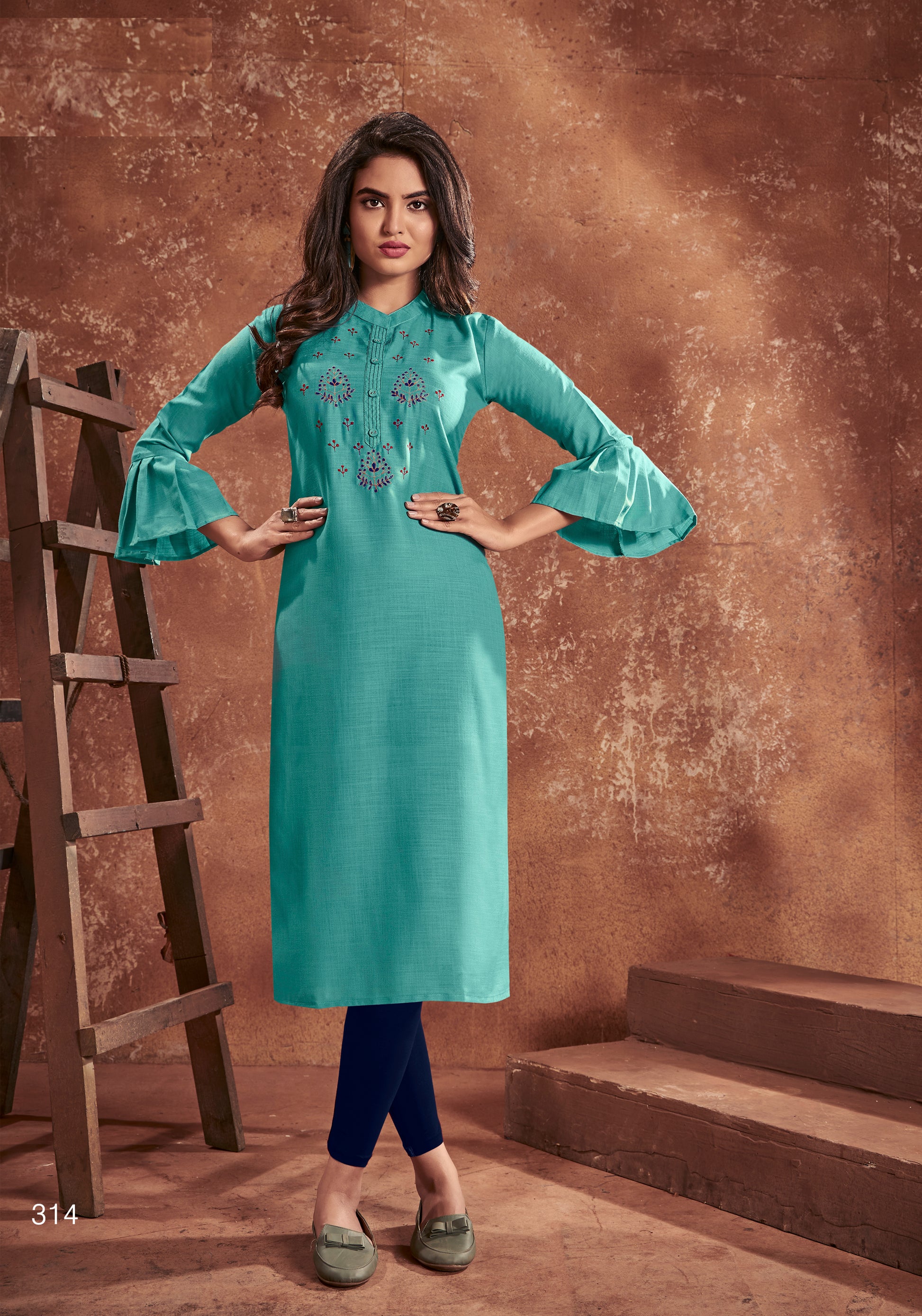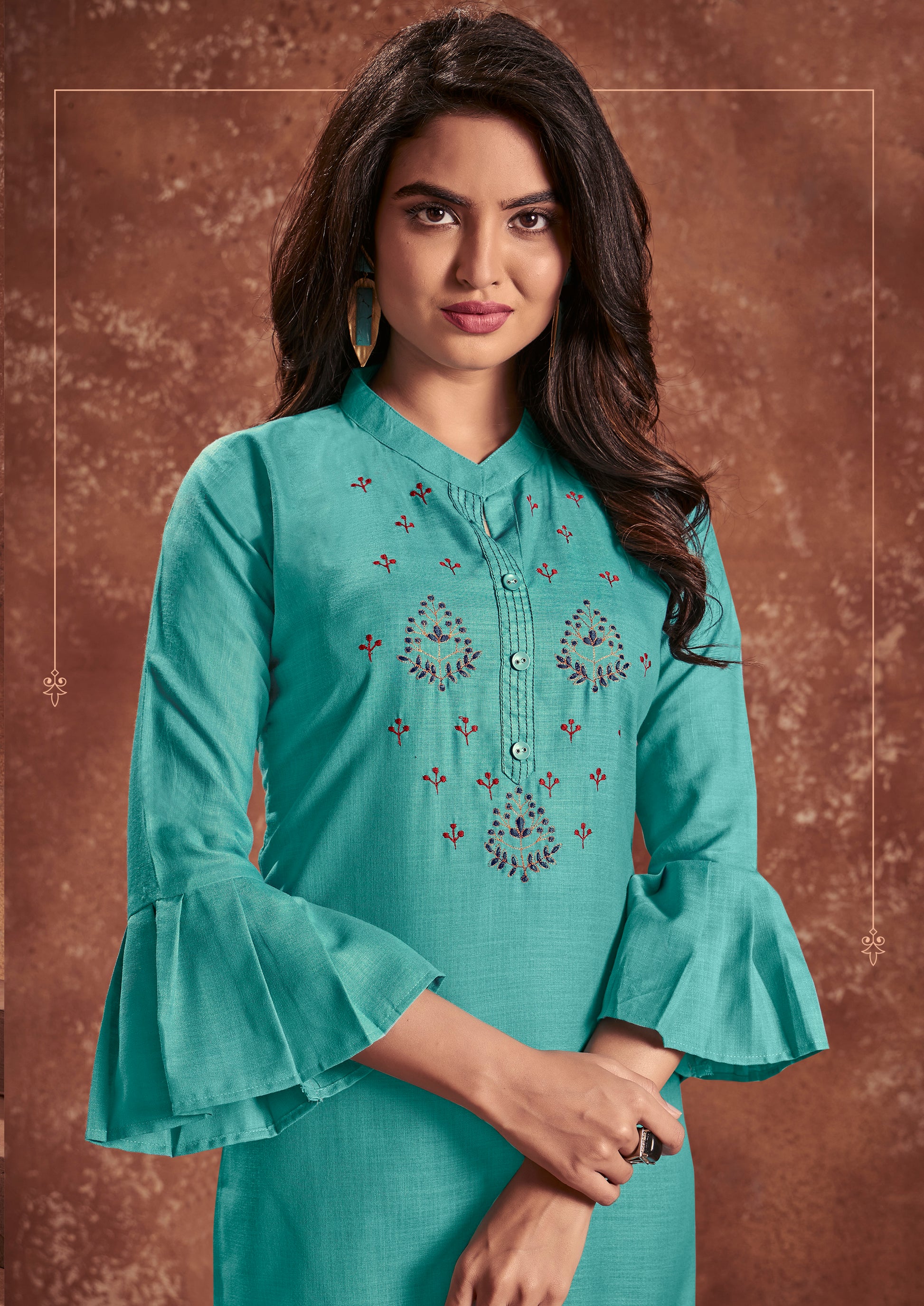 Haut Kurta mi-long bleu en rayon épais au style designer