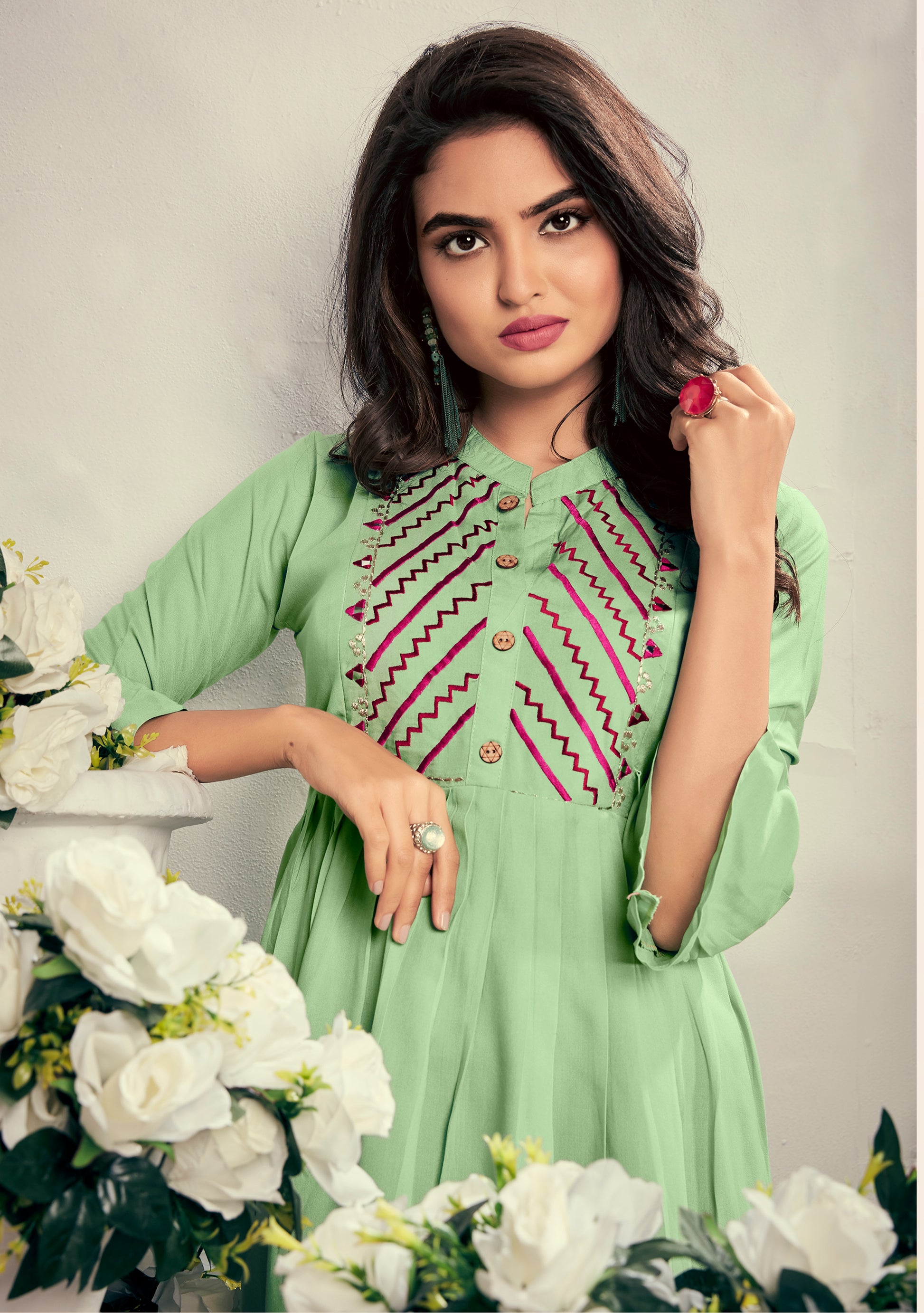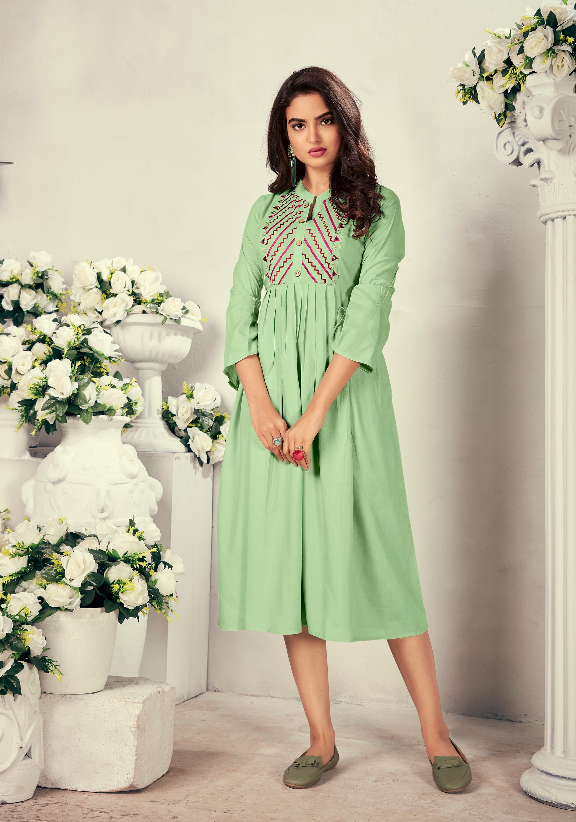 Haut Kurta vert clair mi-long en Rayon avec Détails