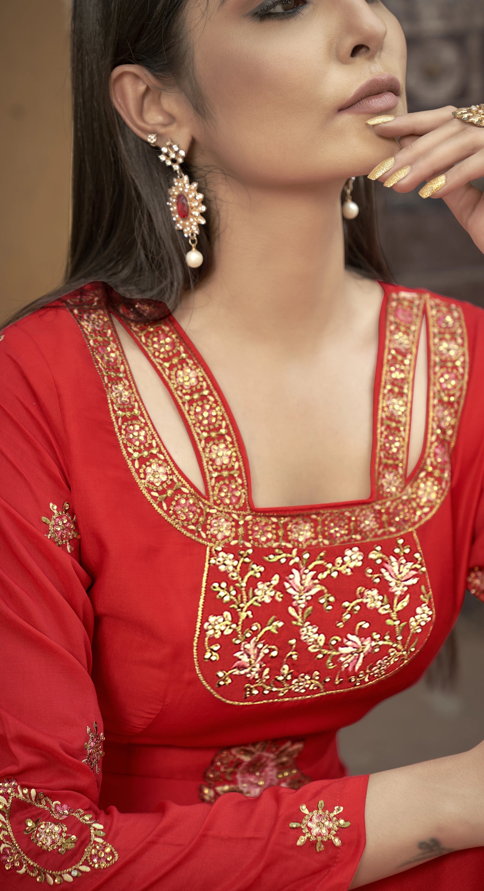 Affichez une allure raffinée avec ce top en heavy Maslin, sublimé par une broderie riche et minutieuse. Sa doublure intérieure cousue garantit confort et maintien tout au long de la journée. Parfait pour les occasions festives, les événements culturels ou un look quotidien sophistiqué.