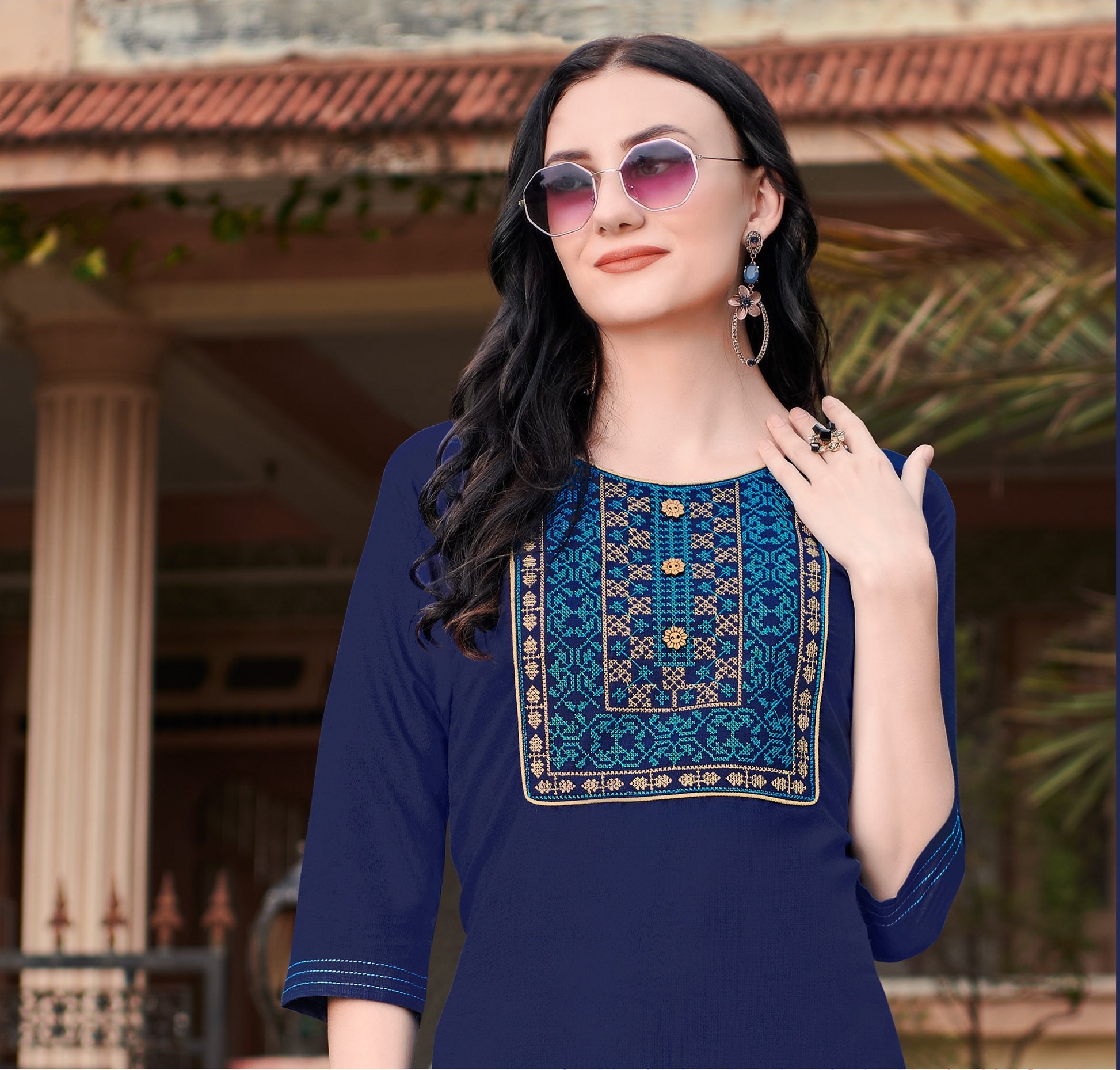 Alliant confort et raffinement, cette kurti en coton Nira se distingue par ses broderies minutieusement travaillées. Idéale pour les occasions spéciales comme pour un look élégant au quotidien.