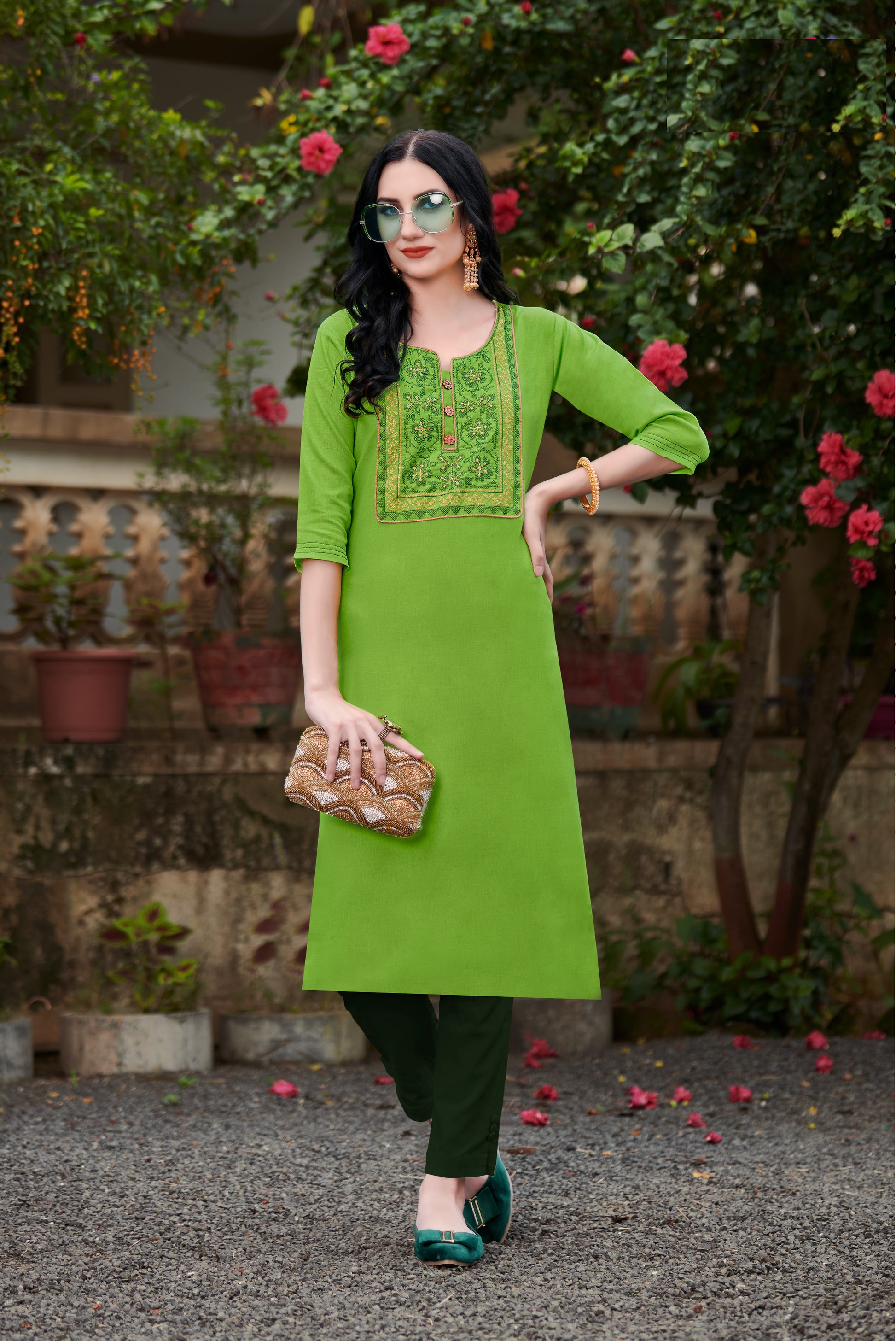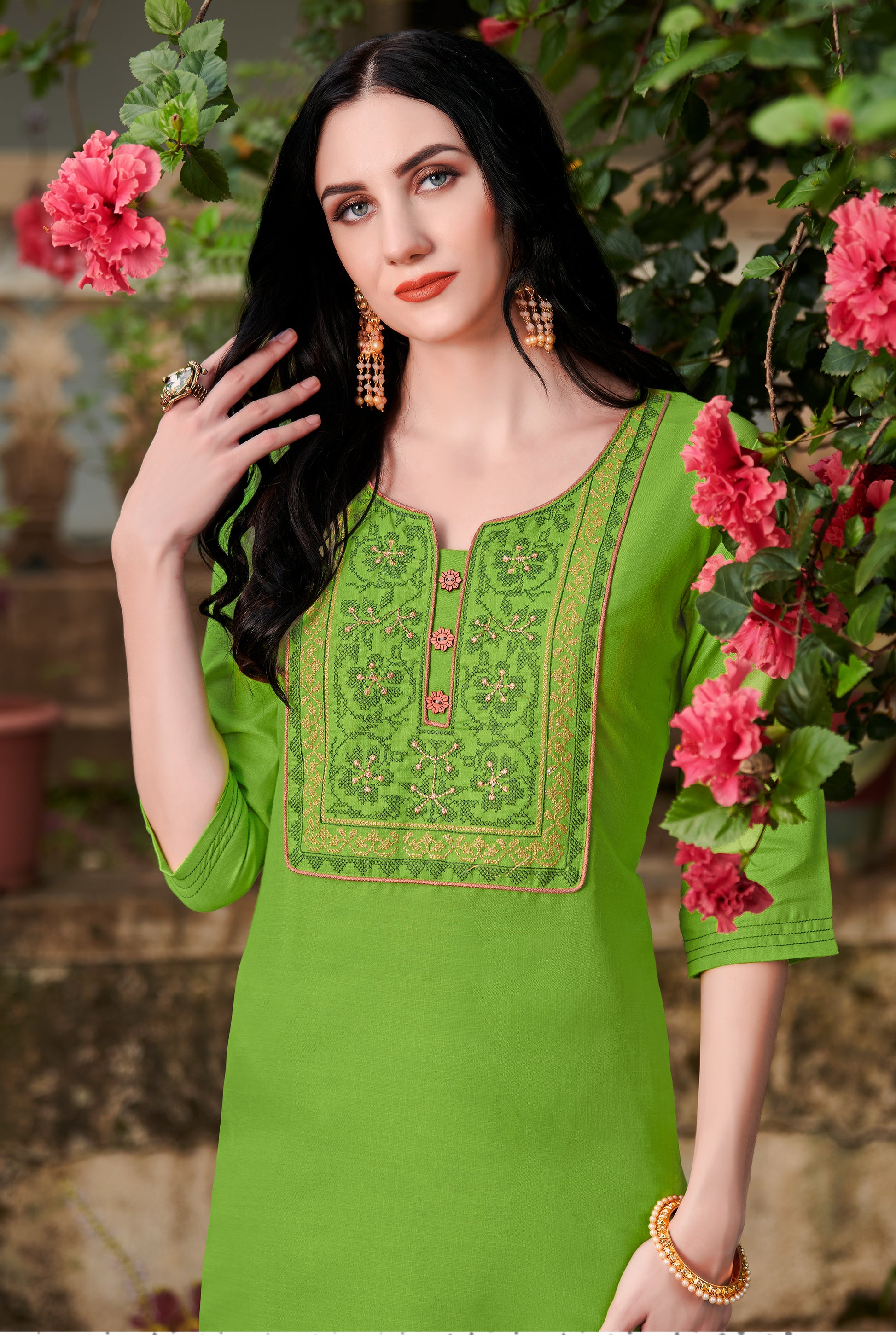 Alliant confort et raffinement, cette kurti en coton Nira se distingue par ses broderies minutieusement travaillées. Idéale pour les occasions spéciales comme pour un look élégant au quotidien.