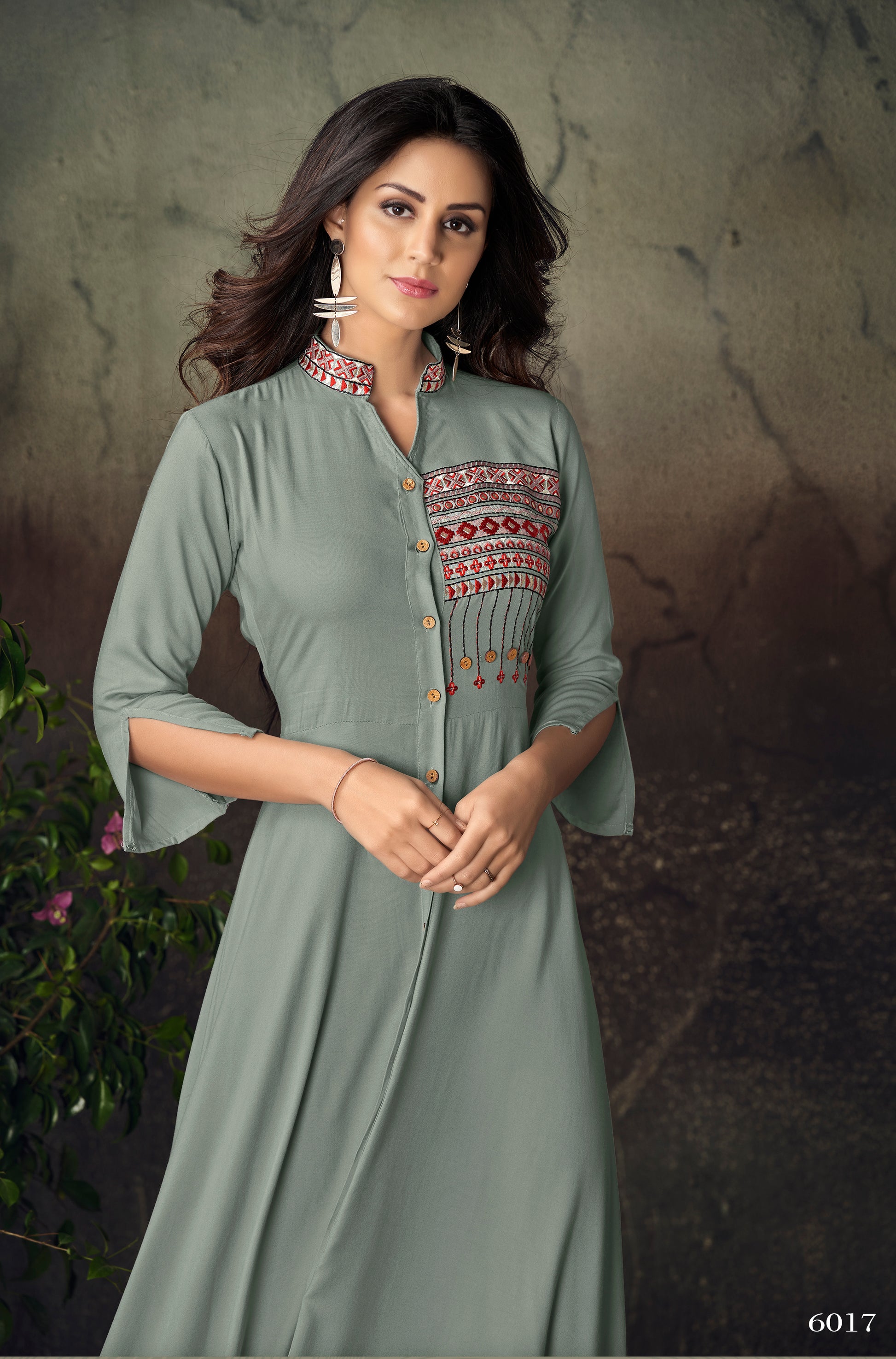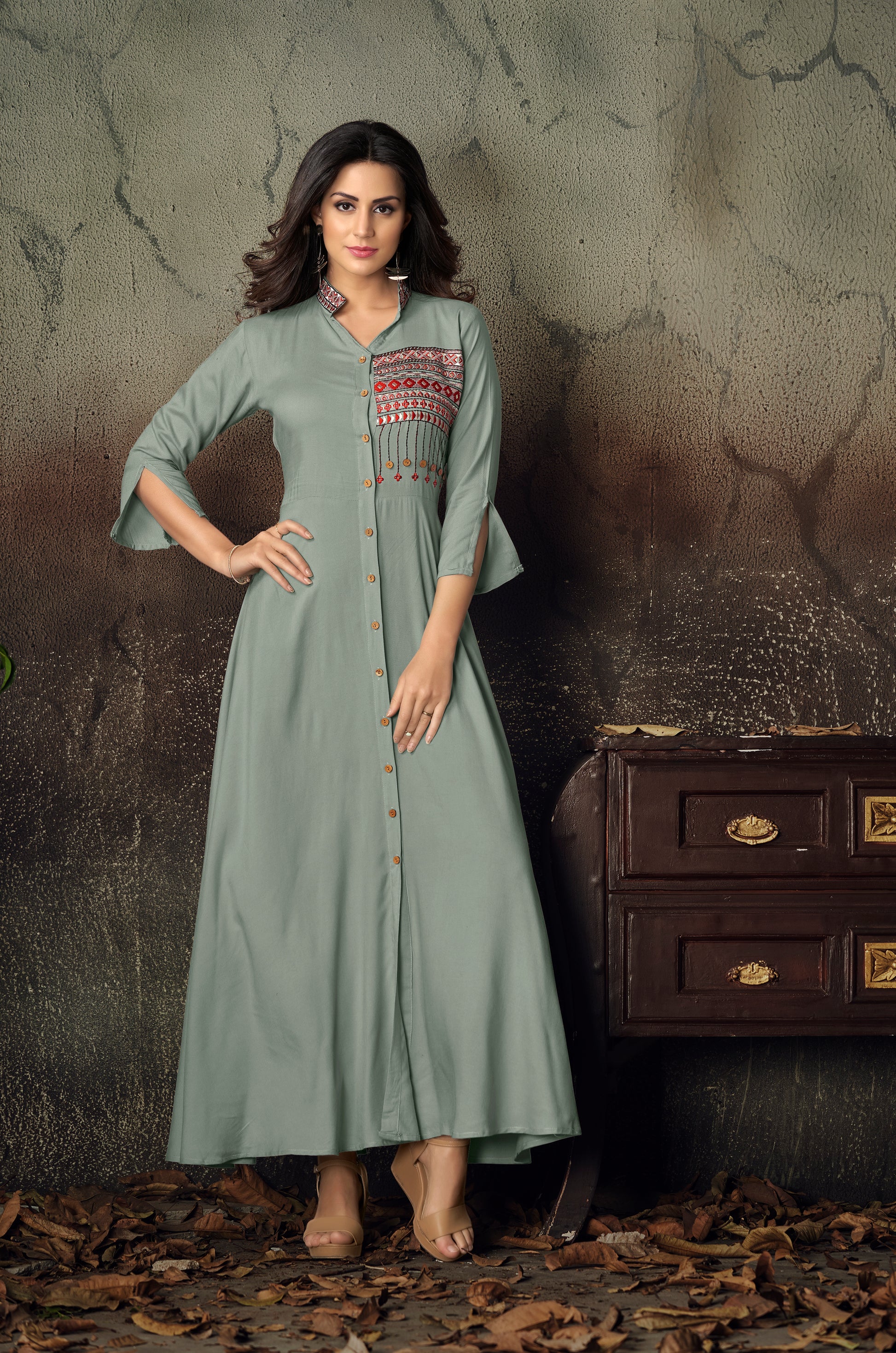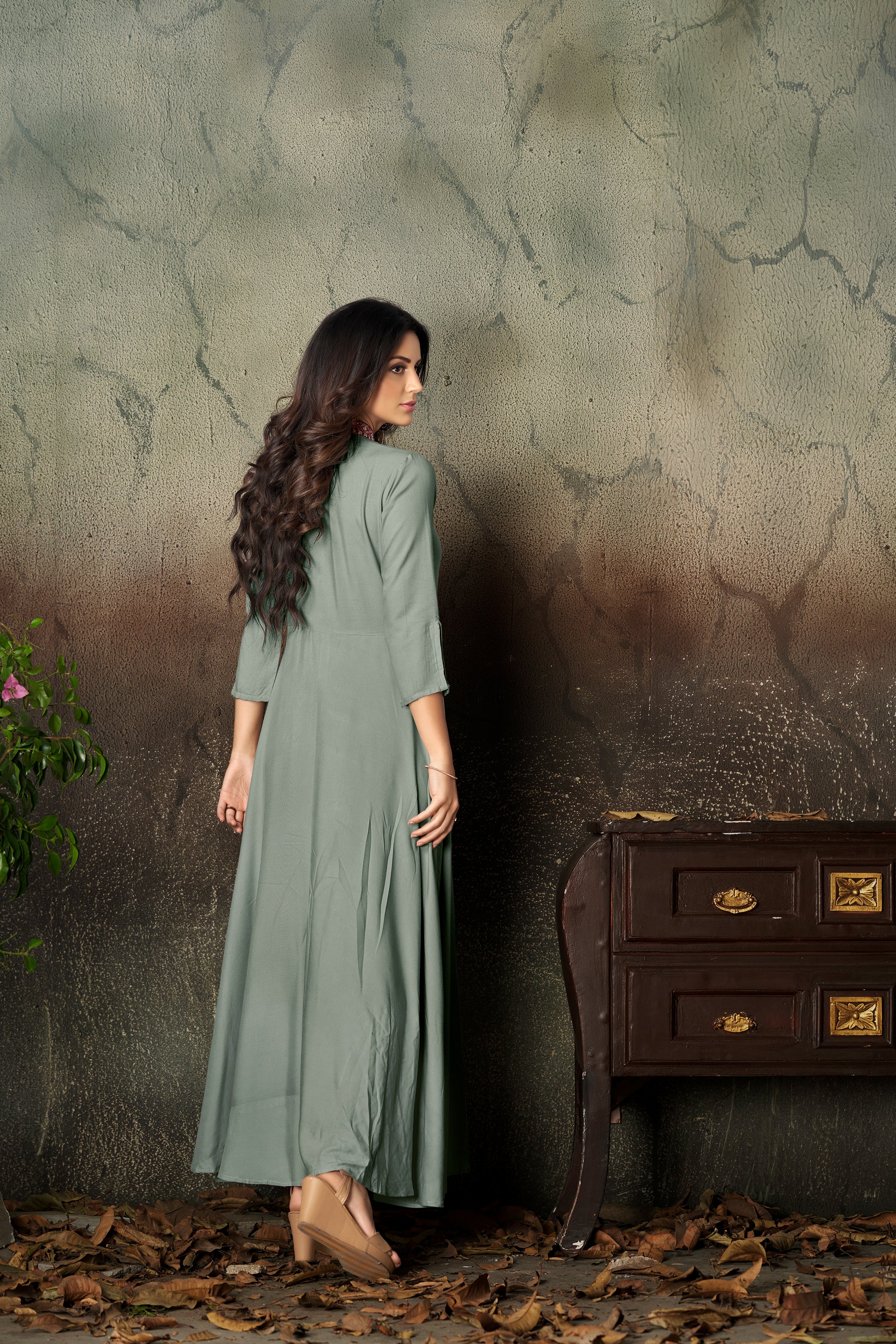 Haut Kurta style Robe long vert d’eau en Rayon avec Détails