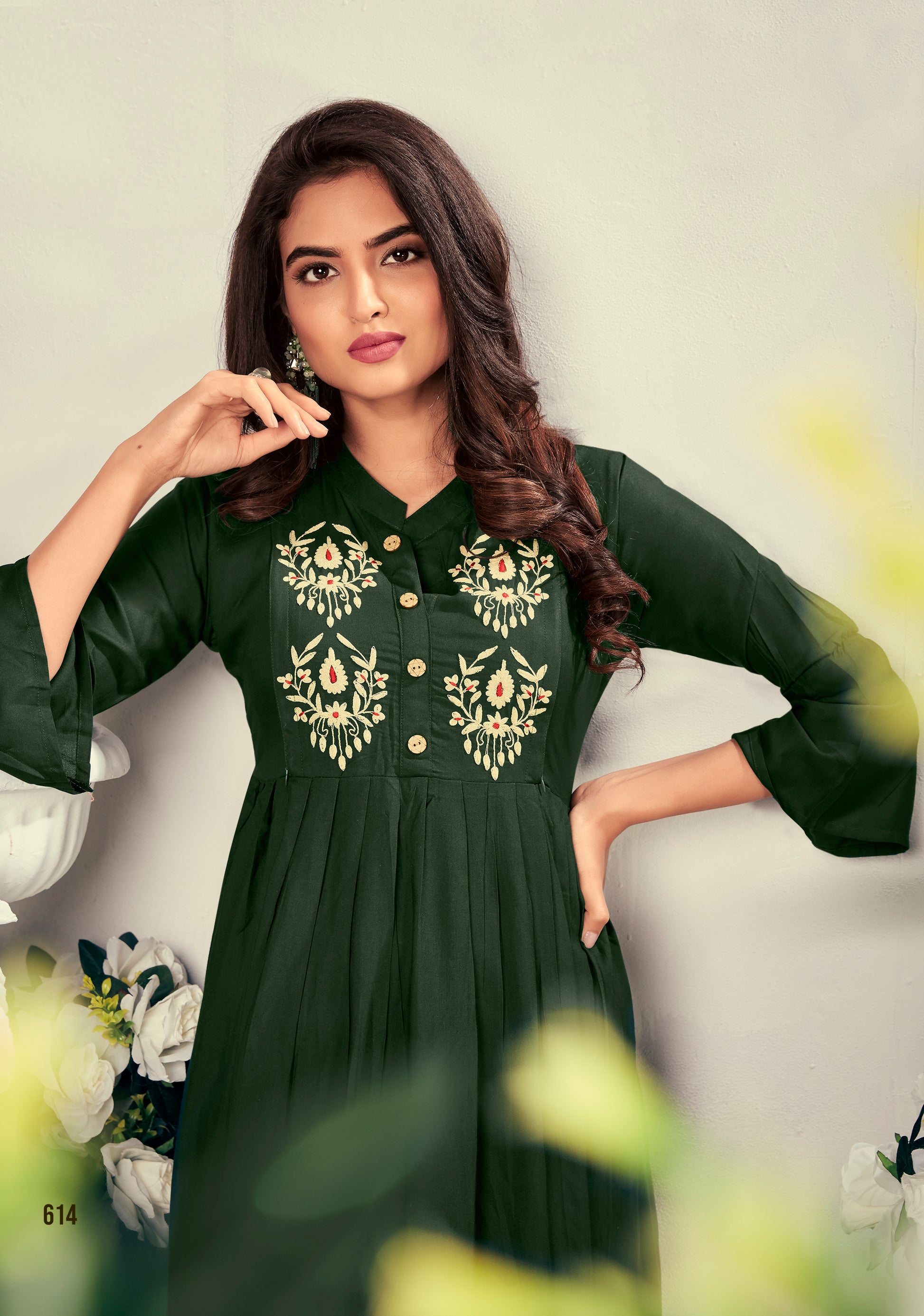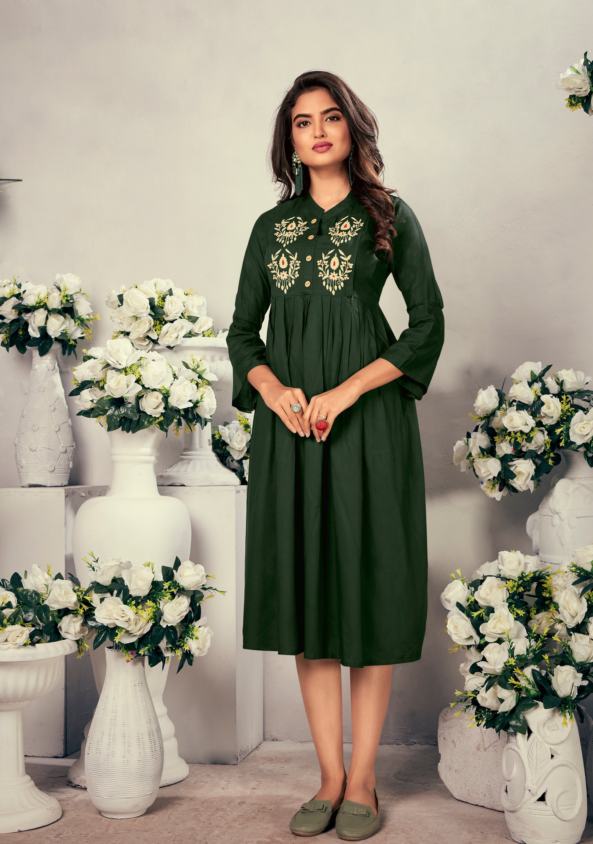 Haut Kurta vert foncé mi-long en Rayon avec Détails