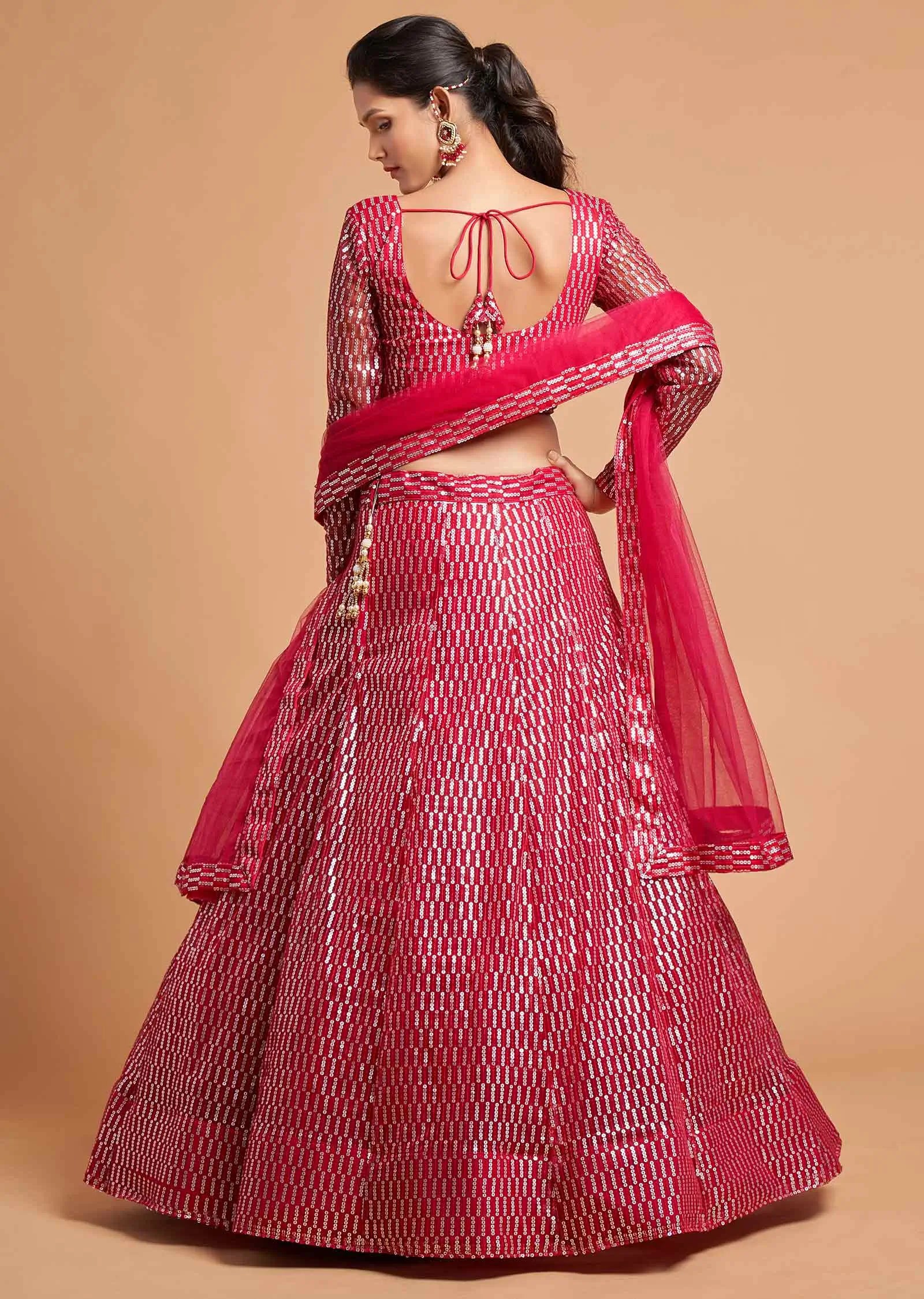 Lehenga choli en filet doux rose fuchsia avec broderie en fil et multiples sequins