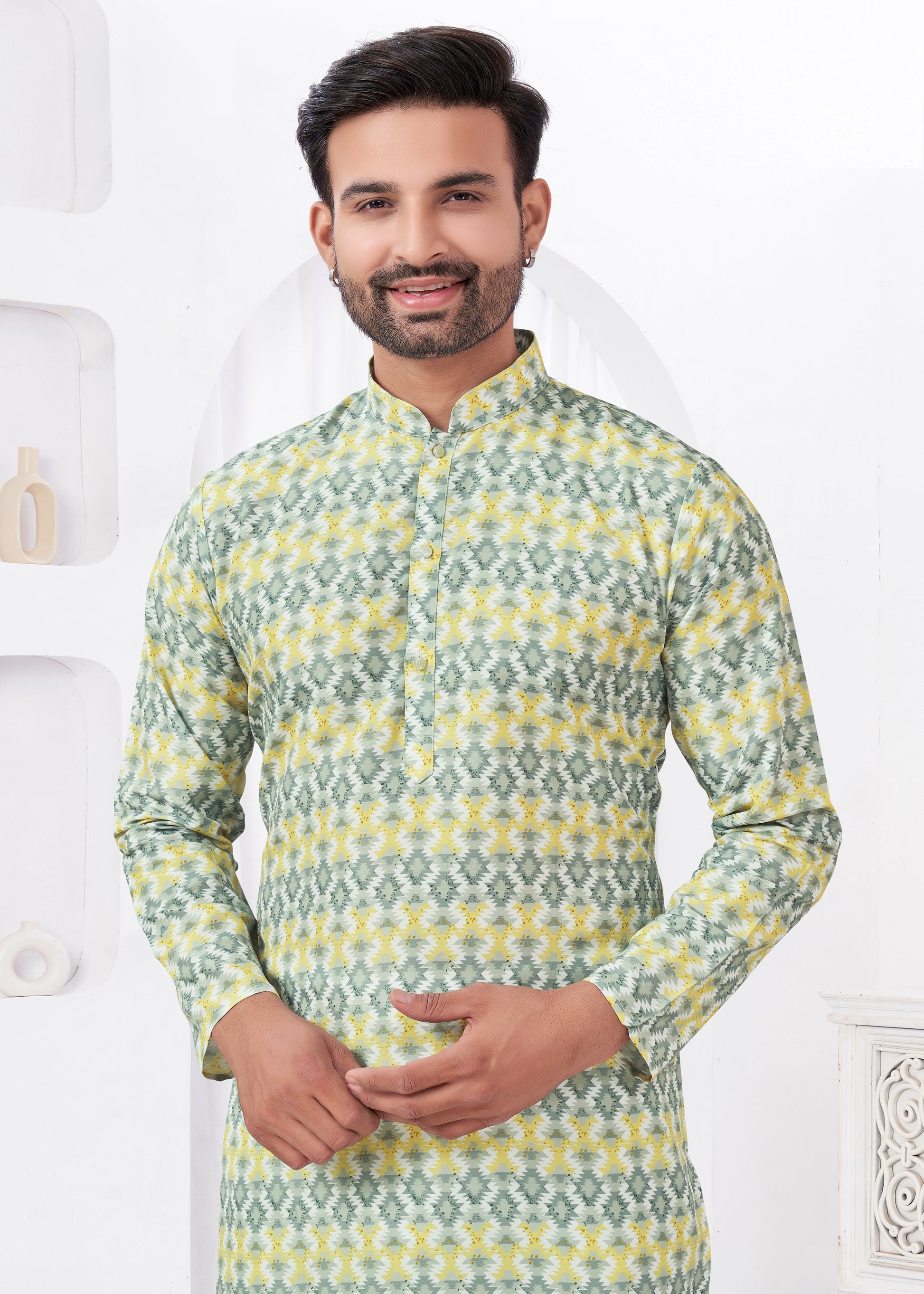 Kurta chic et décontracté jaune et vert imprimé doux en coton