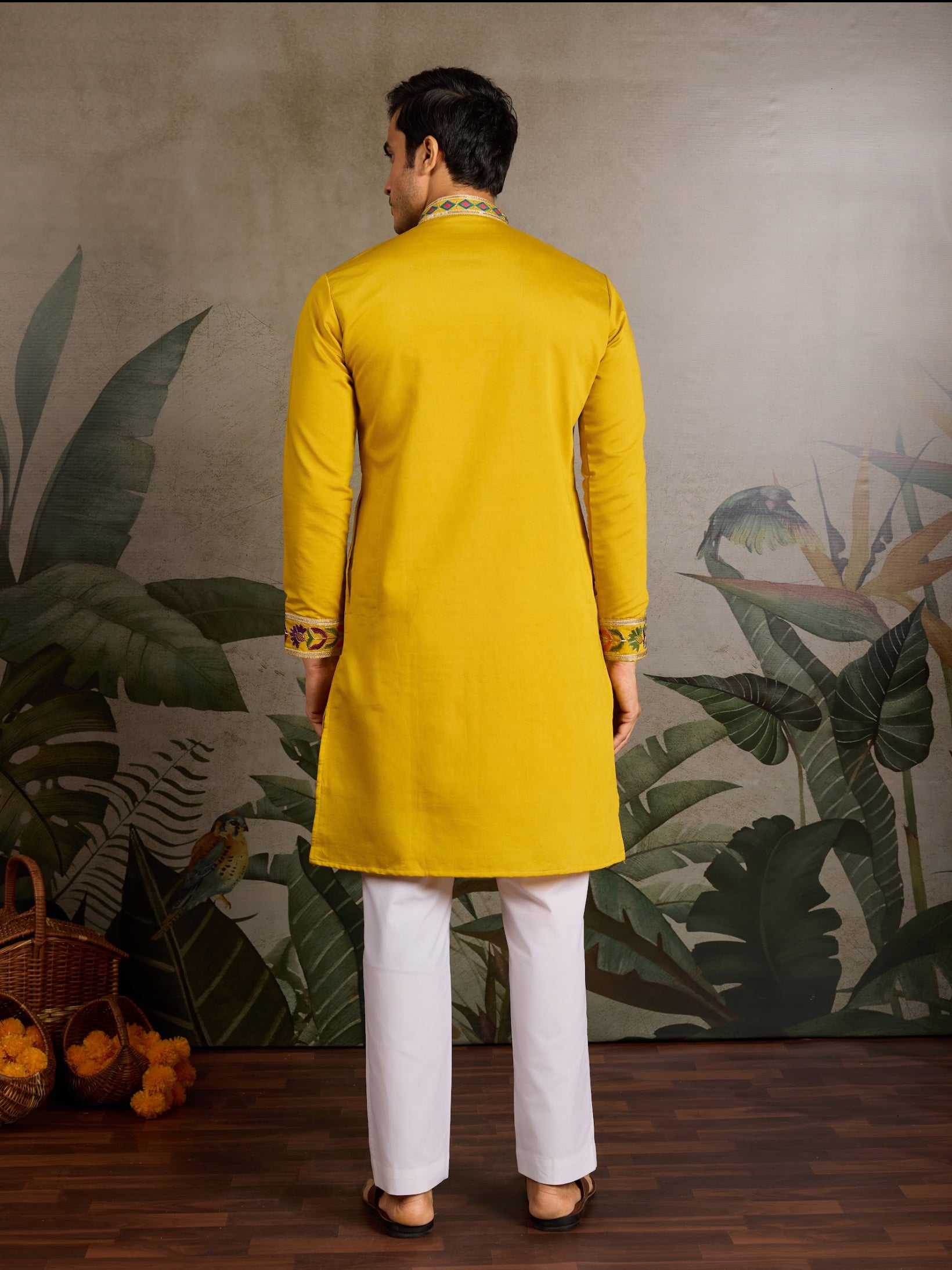 Kurta Homme jaune fluorescent en soie viscose avec broderies et sequins
