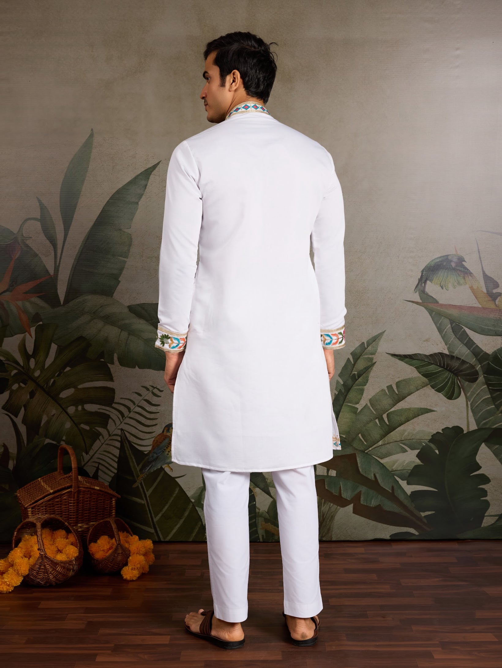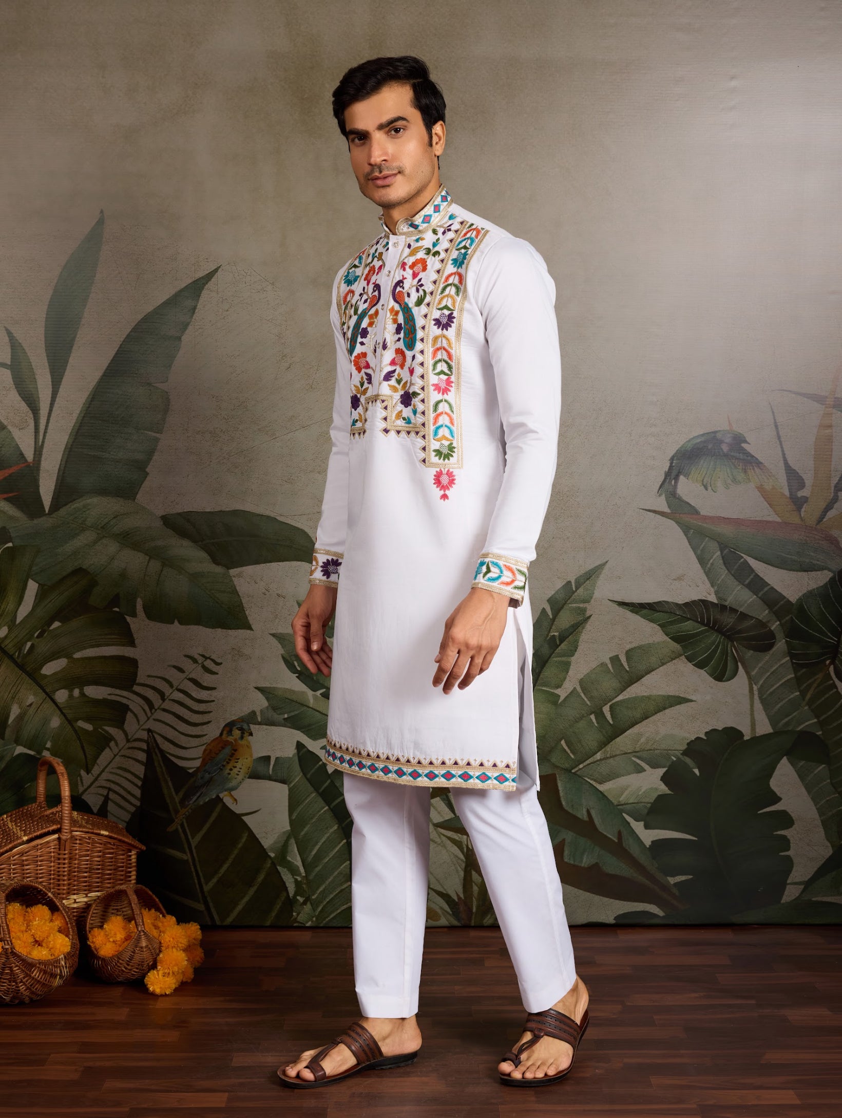 Kurta Homme blanc éclatant en soie viscose avec broderies et sequins