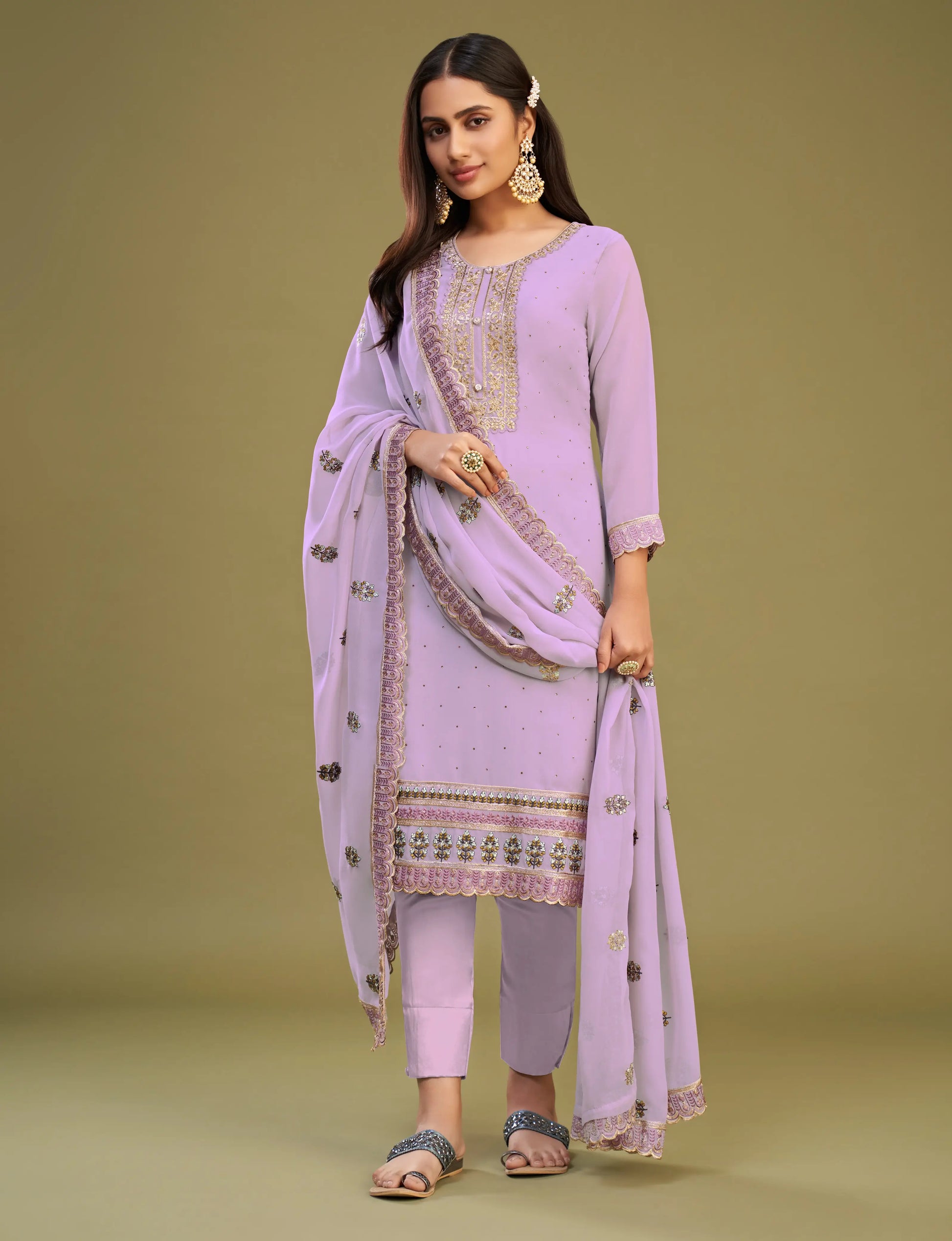 Salwar Kameez Lavande | Robe Traditionnelle Brodée | Tenue de Soirée avec Cristaux et Perles