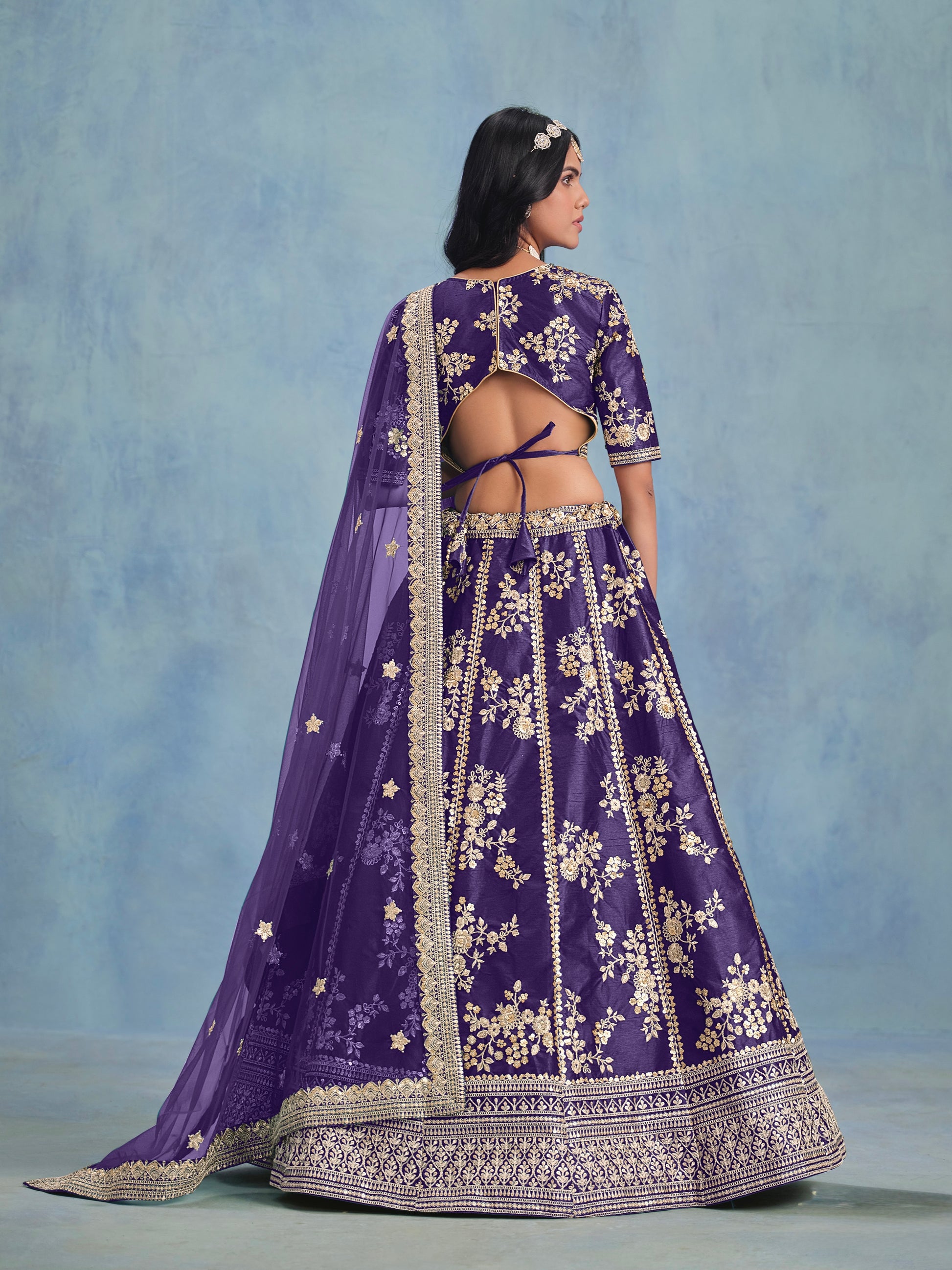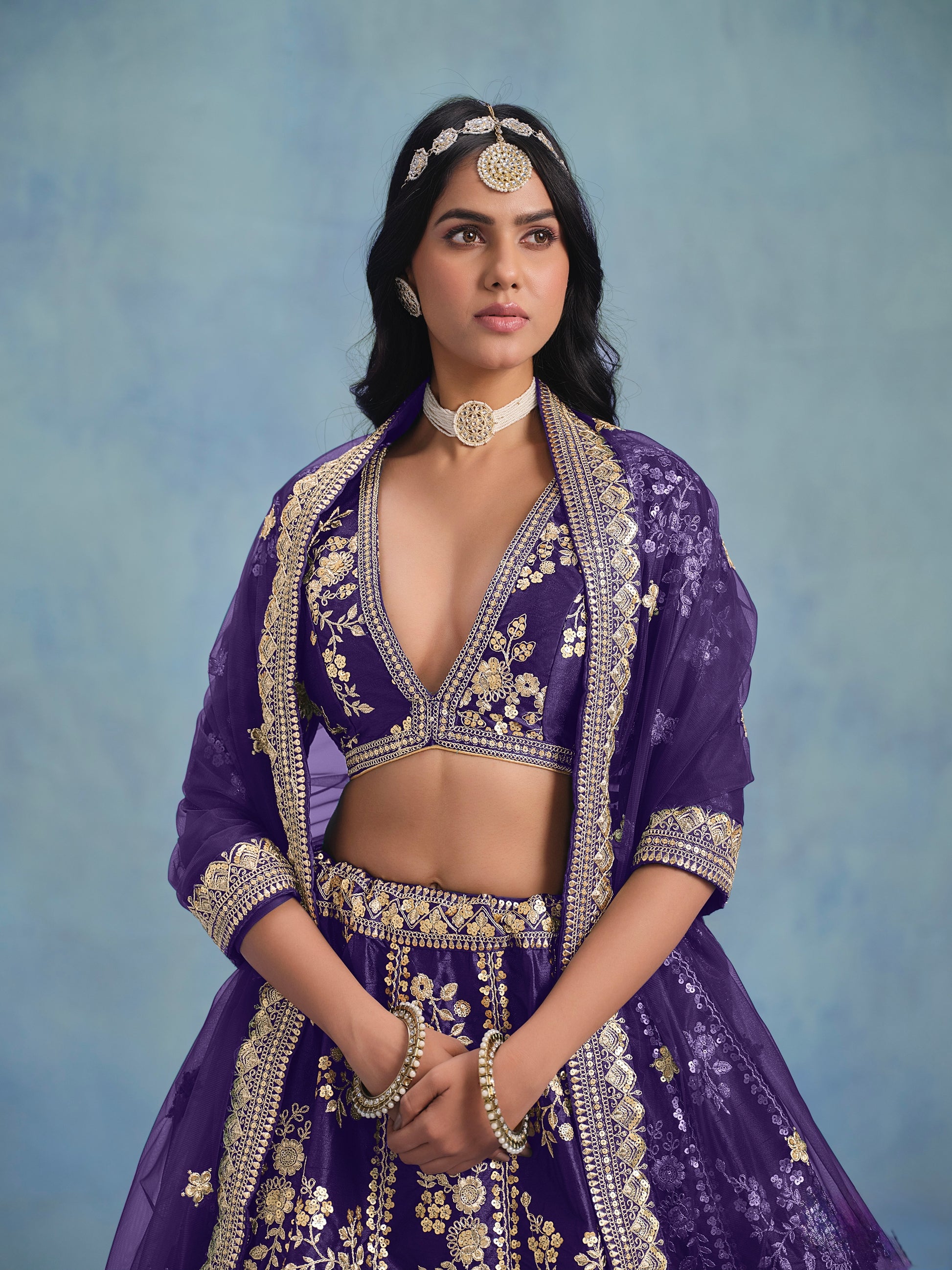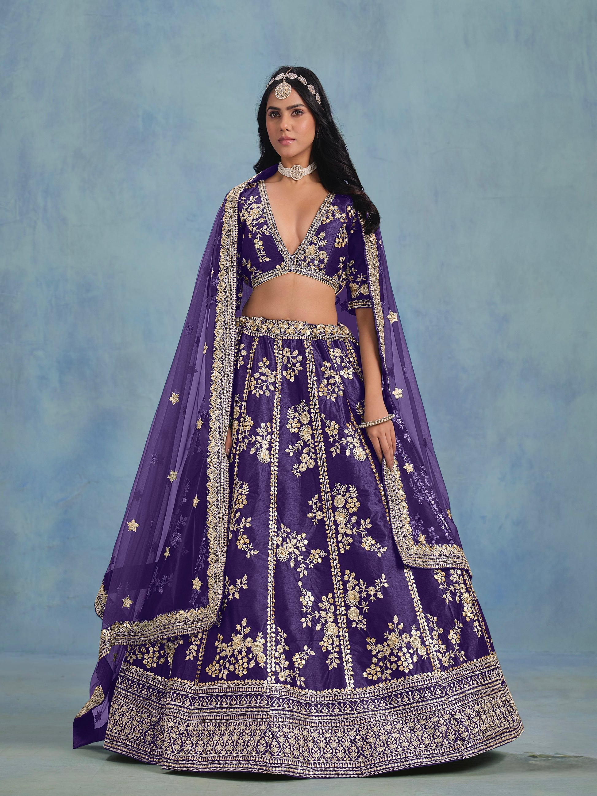 Lehenga Violet en soie artificielle et tulle COLLECTION SONAKSHI