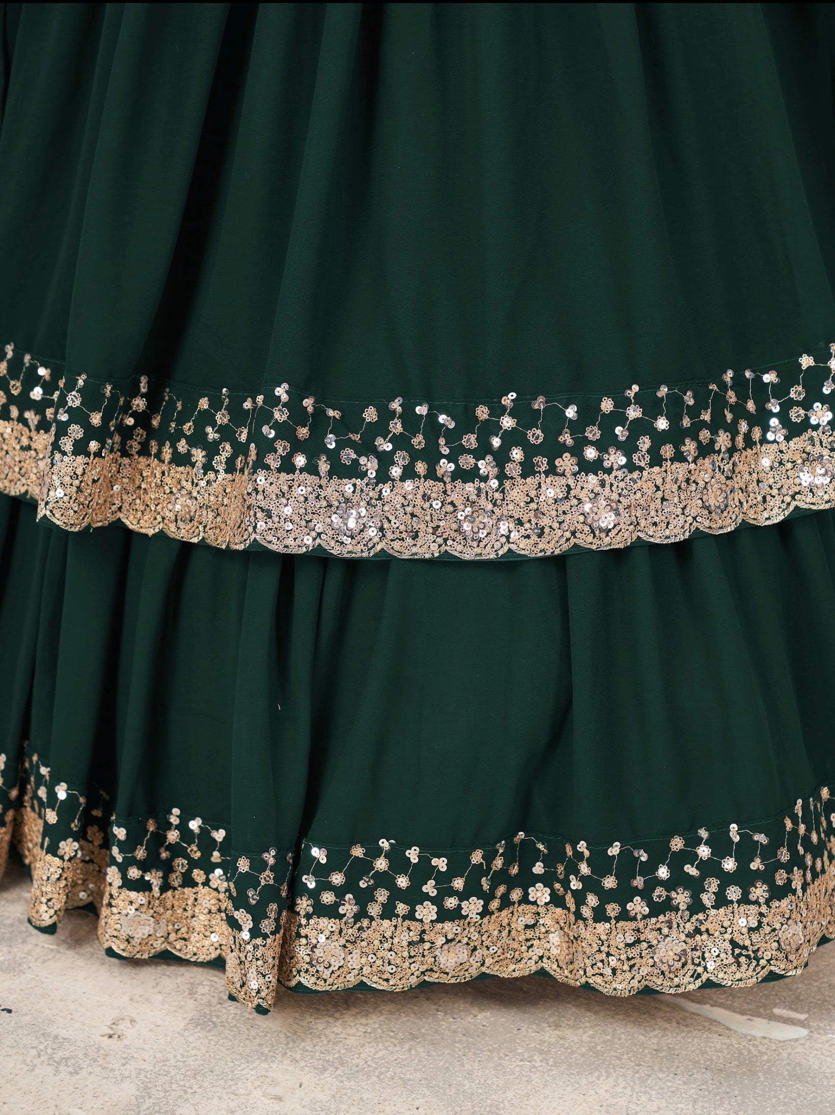 Lehenga vert foncé de fête en georgette et broderies travaillées COLLECTION ANJALI