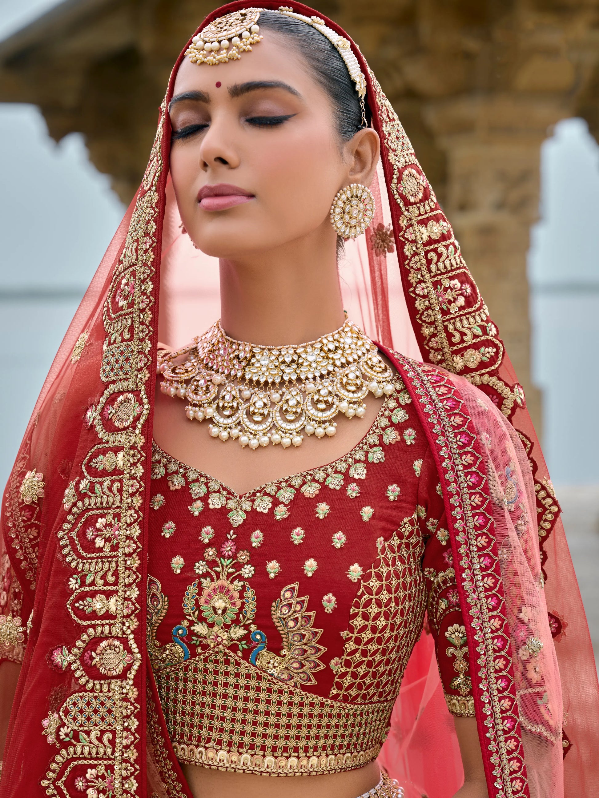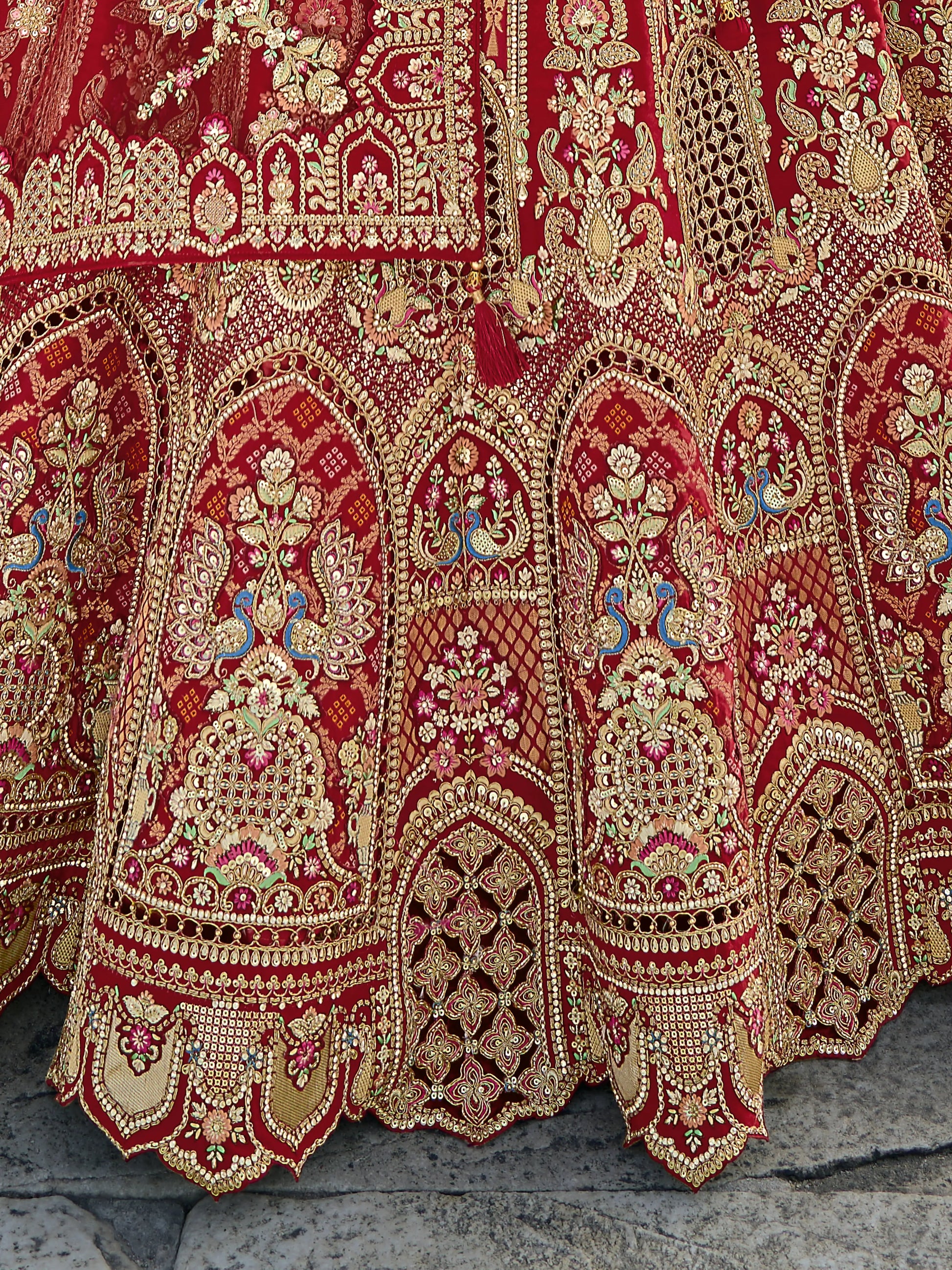 Tissu du lehenga : Soie de mariée de haute qualité, broderies khatli et travail artisanal détaillé