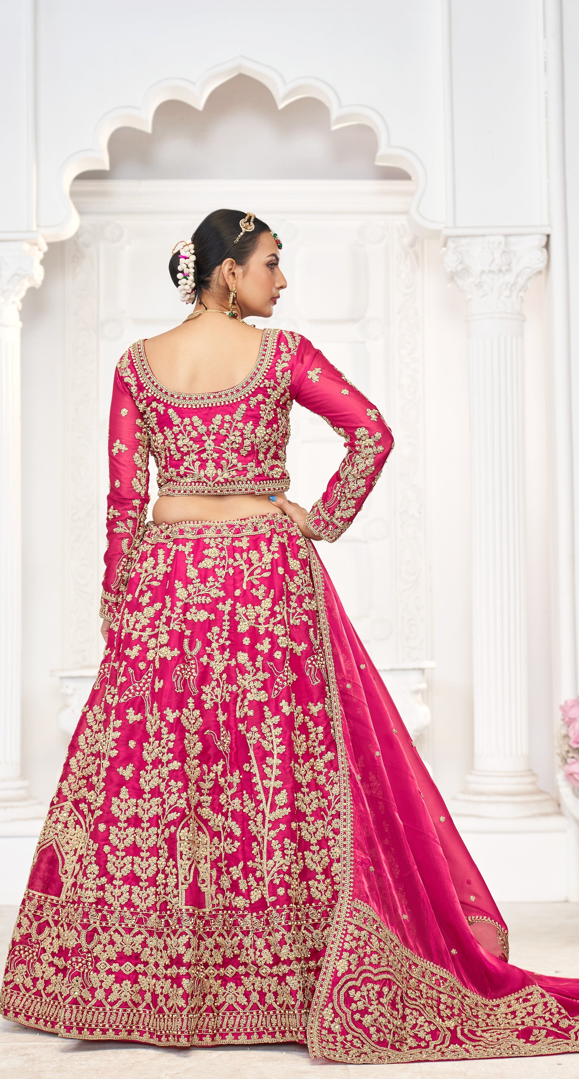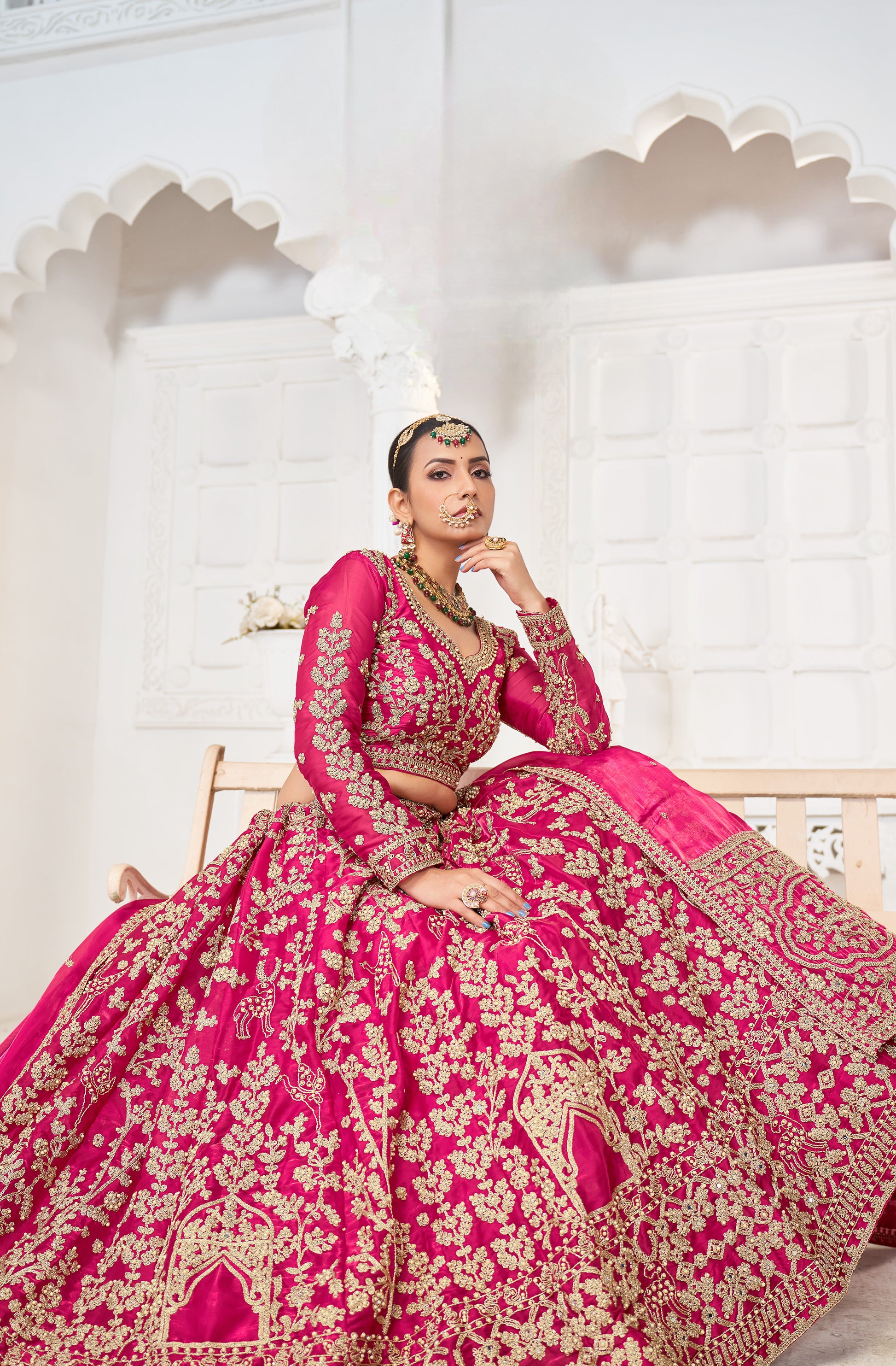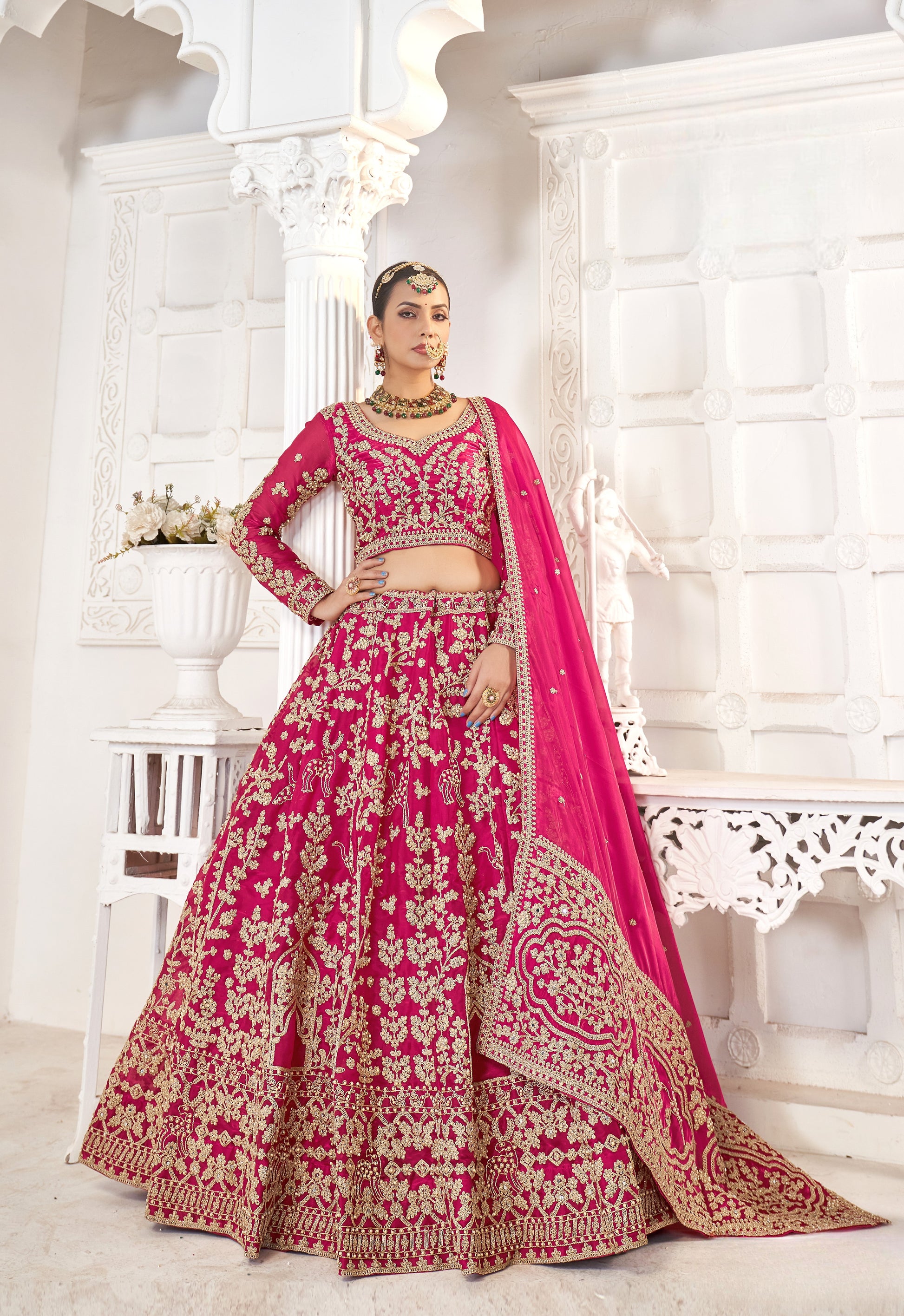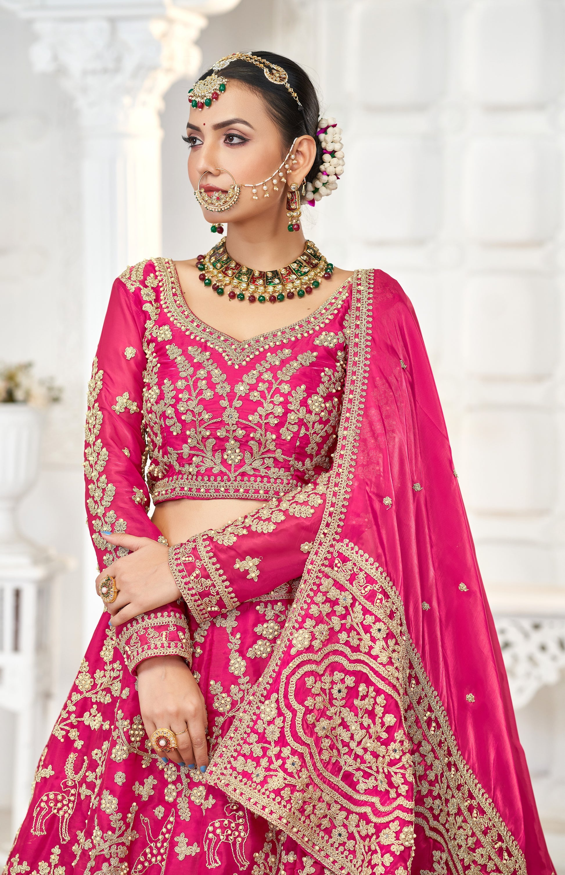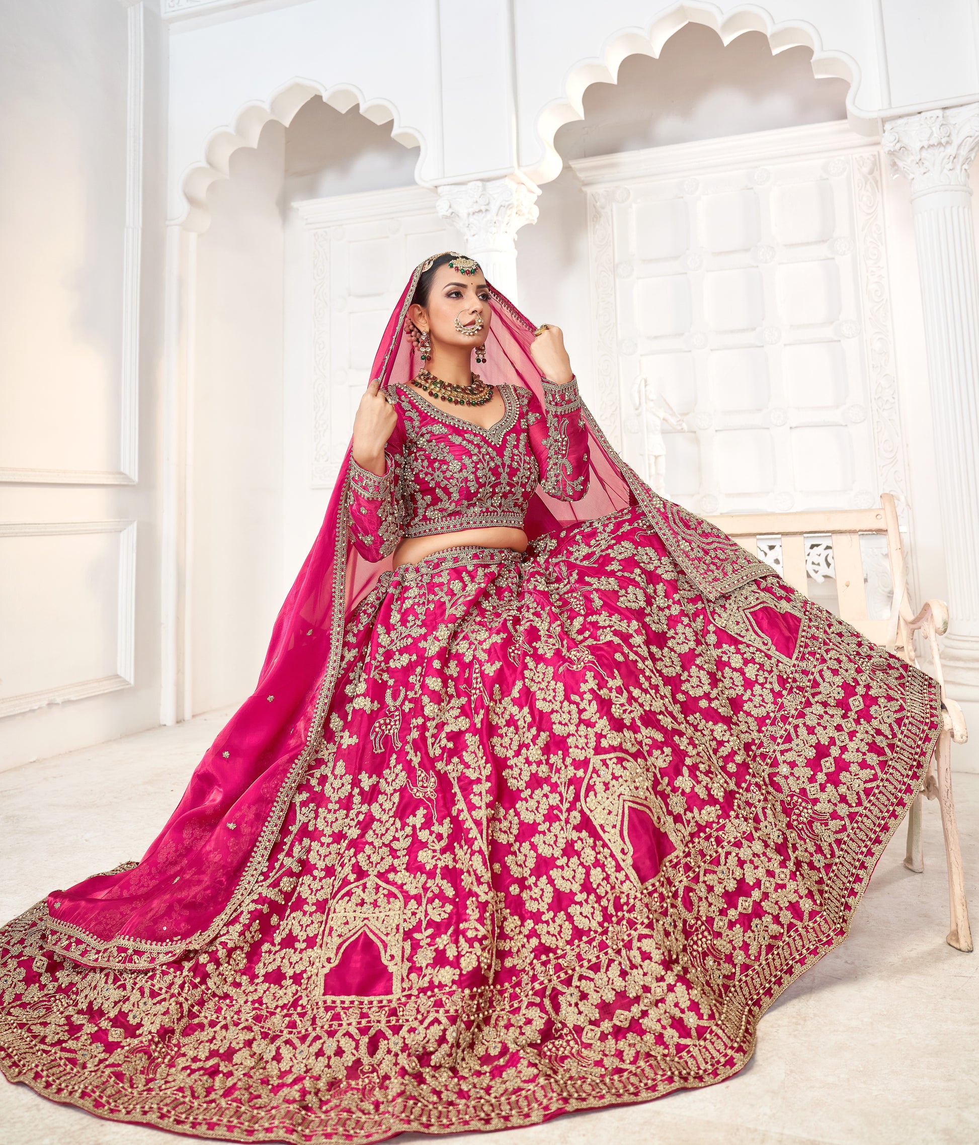 Lehenga de Mariée Rose avec broderie travaillée de haute qualité