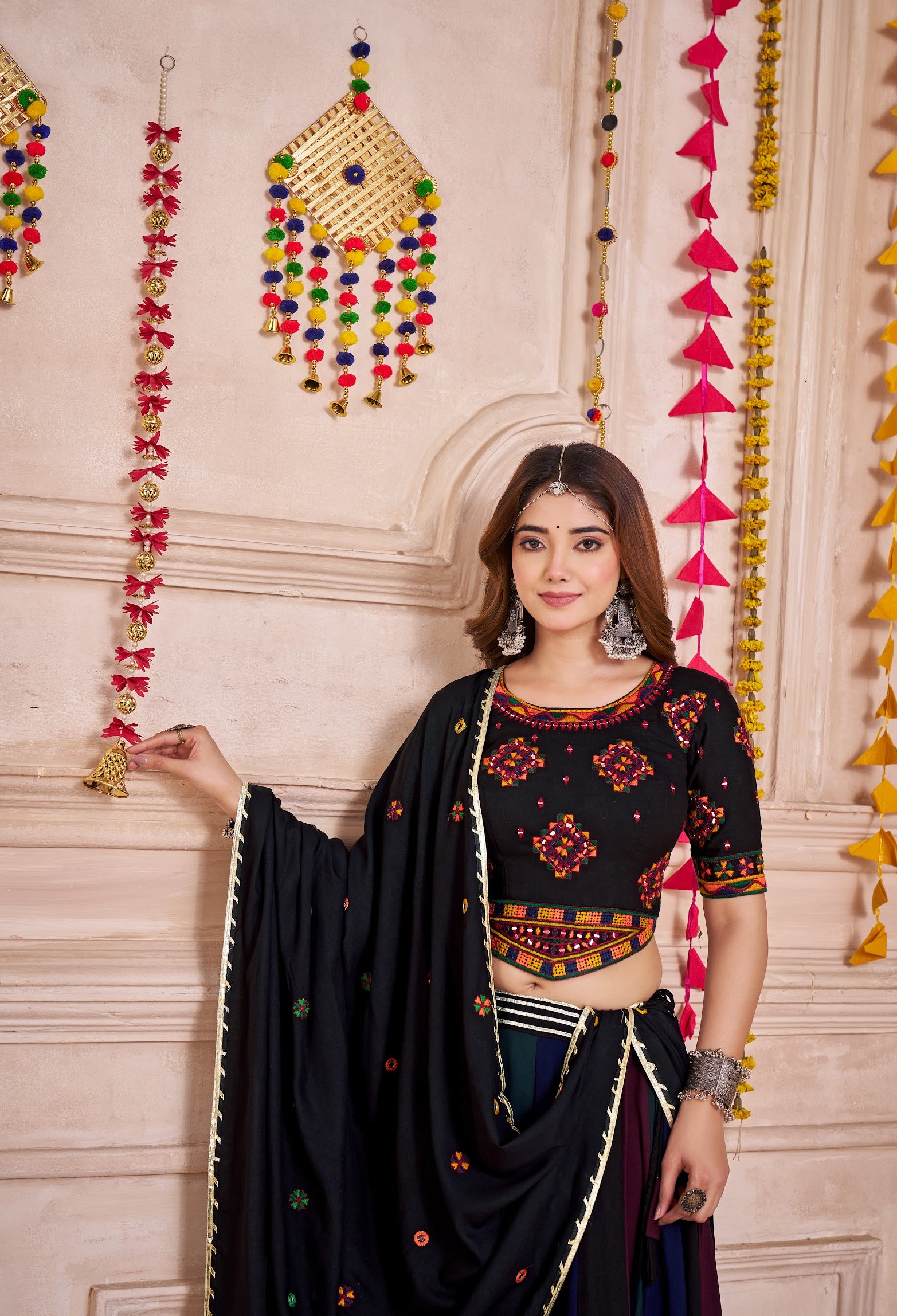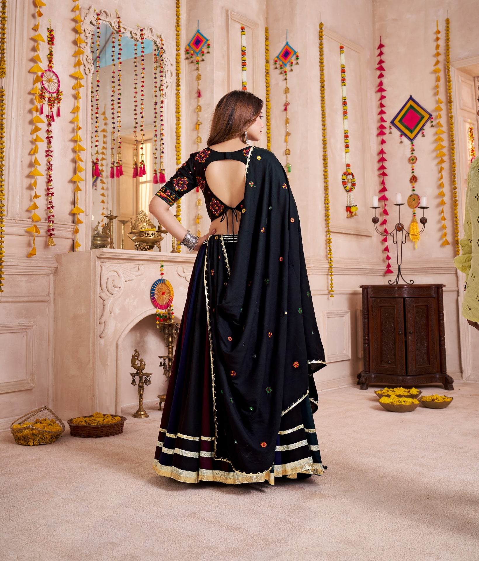 Faites vibrer vos célébrations de Navratri avec ce lehenga festif et coloré, pensé pour illuminer vos soirées de danse et de joie. Il vous offre un tombé fluide et élégant et accompagne chaque pas de garba ou de dandiya avec classe. Le choli ajustable assure confort et adaptation parfaite, tandis que la dupatta complète l’ensemble avec une grâce intemporelle.