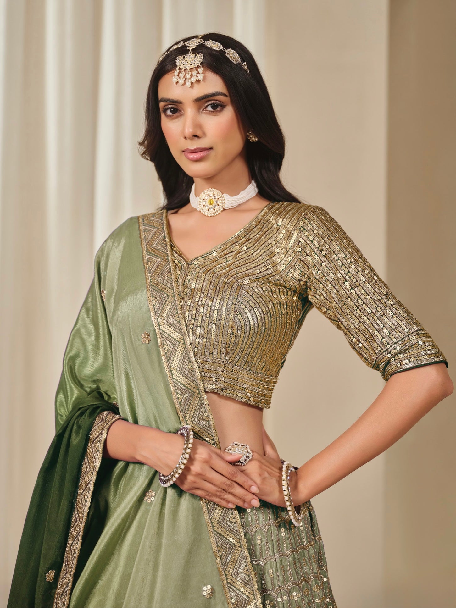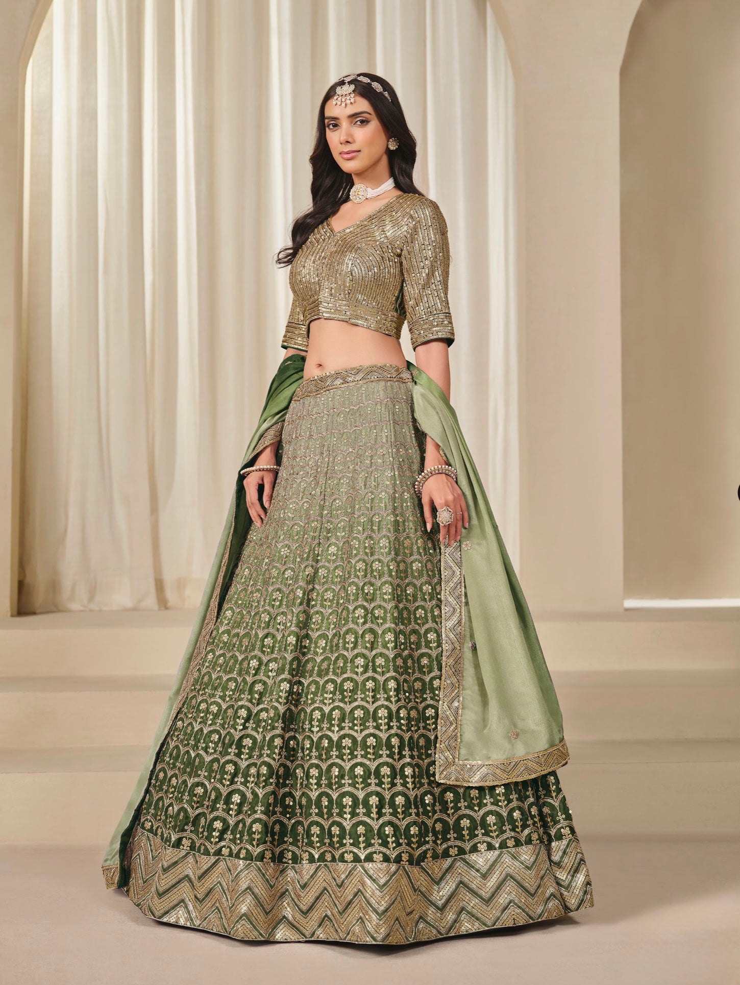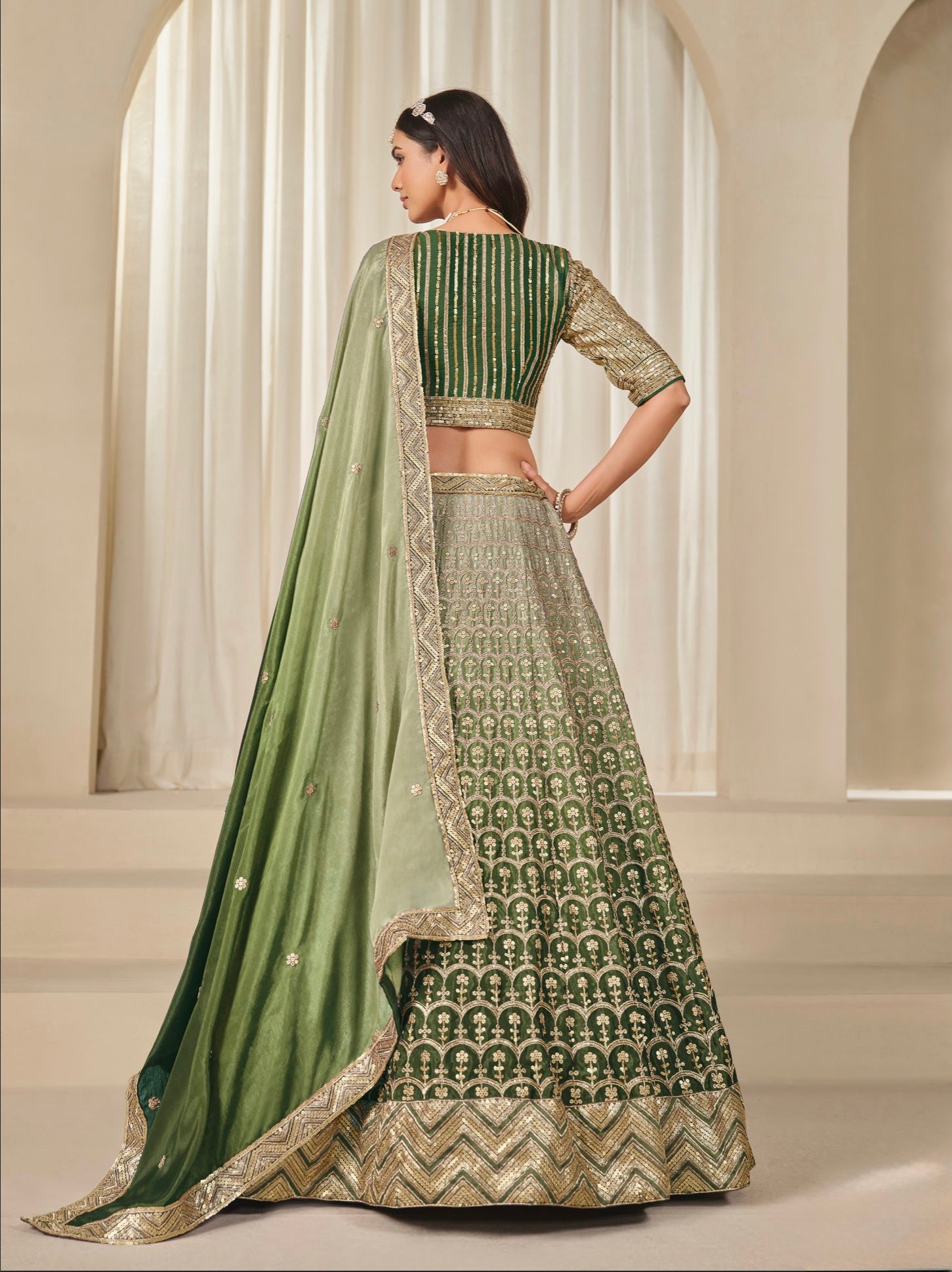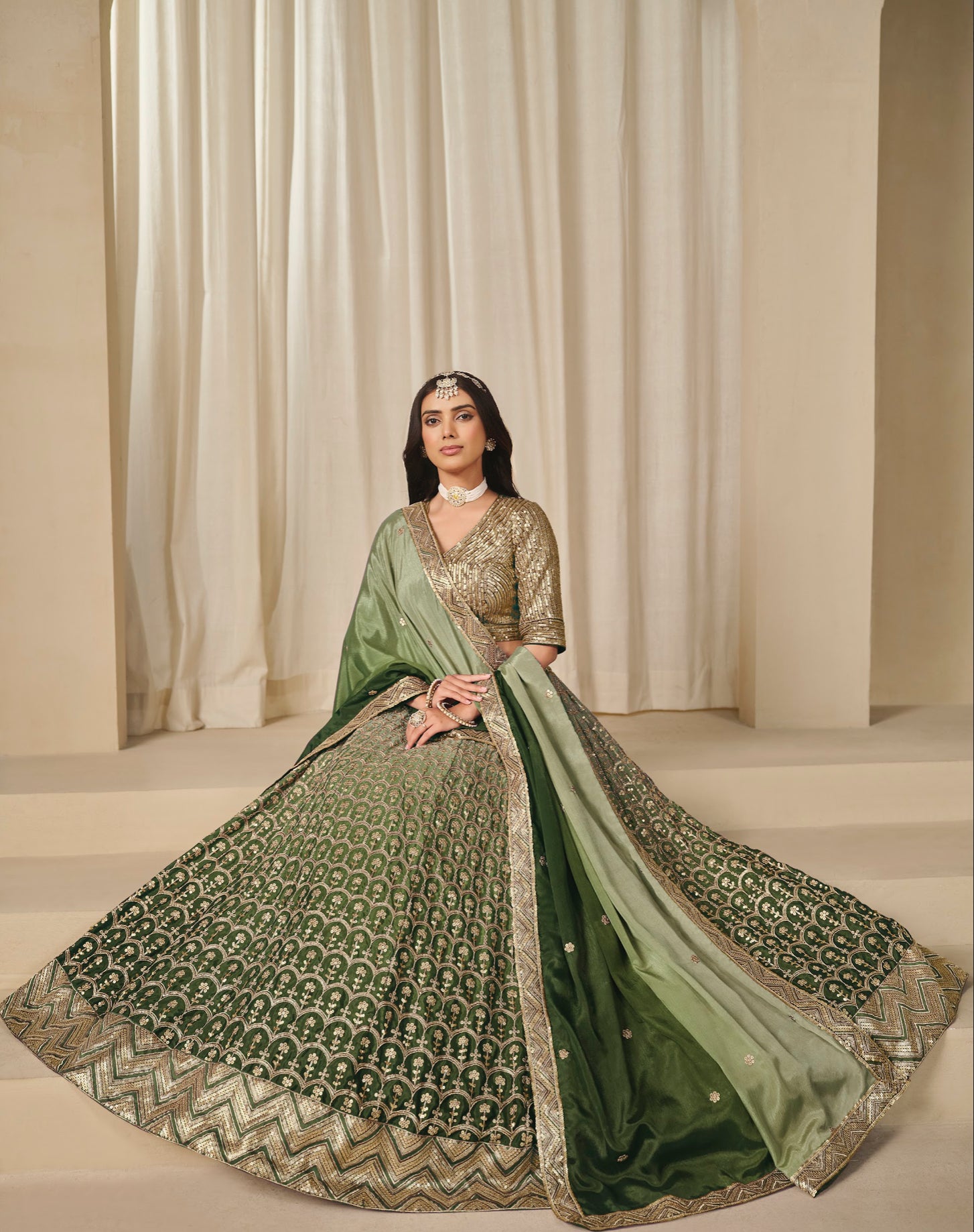 Lehenga vert émeraude en soie chinon premium COLLECTION AMAYA