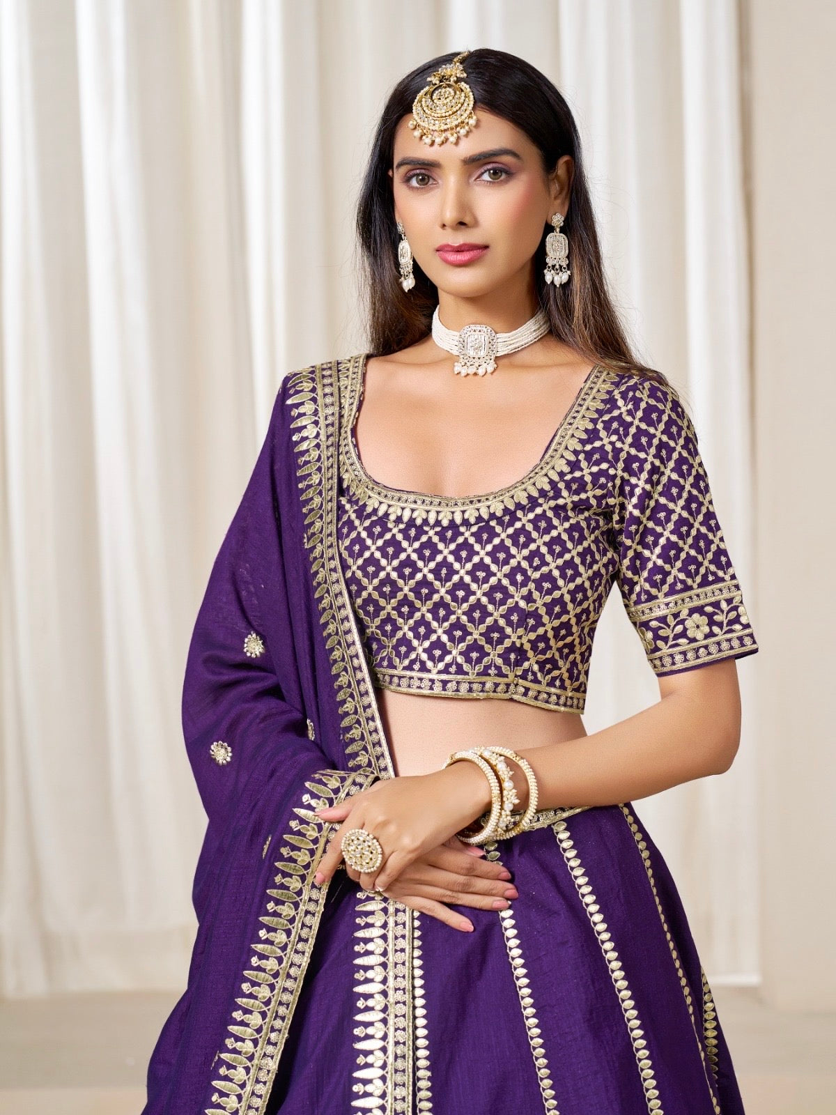 Lehenga violet vibrant en soie artificielle COLLECTION MANVI