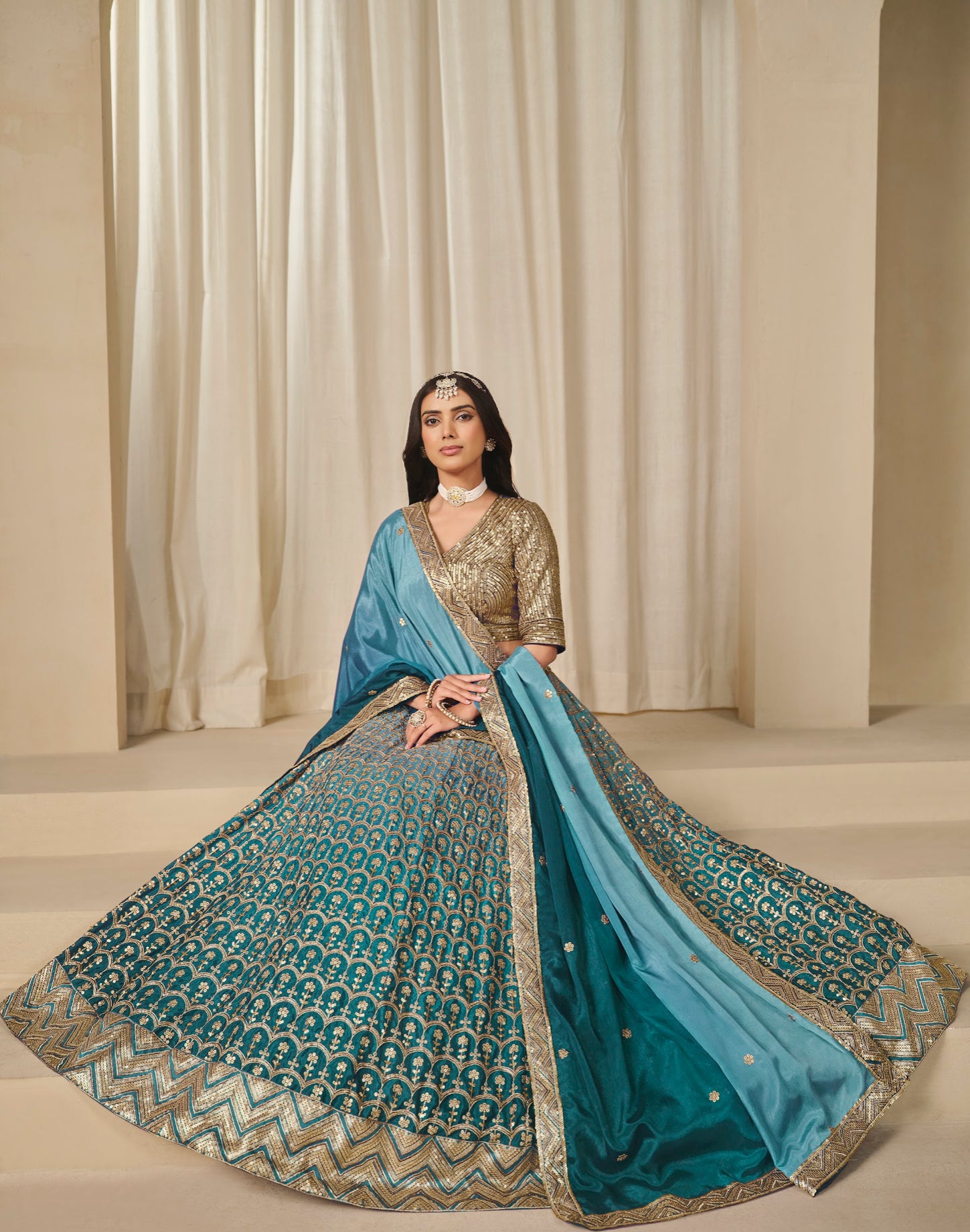 Lehenga bleu lagon en soie chinon premium COLLECTION AMAYA