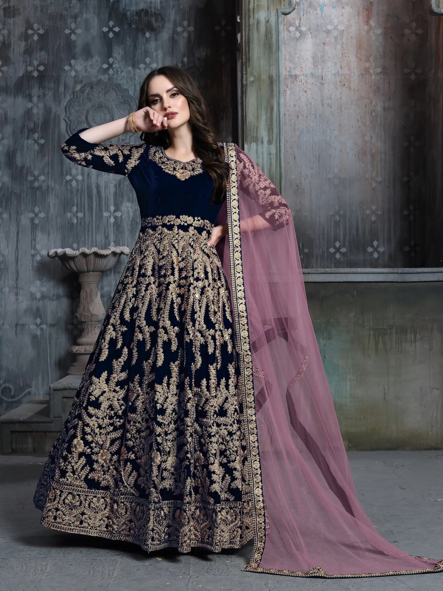 Rayonnez d’un charme royal avec cet ensemble de robe en velours exquis, conçu pour les occasions spéciales. Le haut est orné d’une broderie fine en fils et sequins qui apporte une touche luxueuse à l’ensemble. Un bas en santoon uni, élégant et confortable, ajoute grâce et aisance, tandis que le dupatta en filet doux, décoré d’une délicate broderie en fils et sequins, complète le look avec une sophistication pure. Cet ensemble est parfait pour les mariages, réceptions ou fêtes.