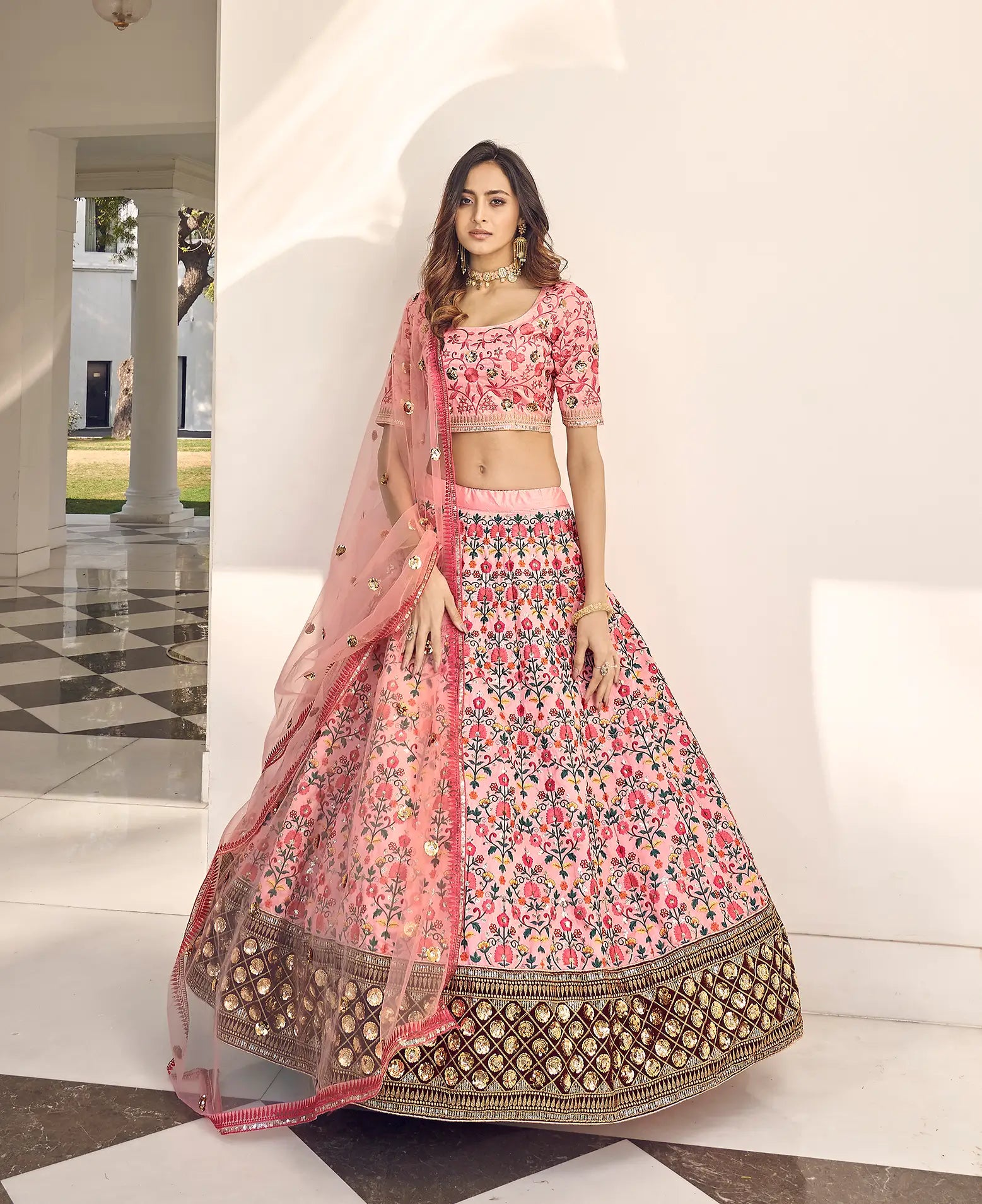 Lehenga Choli Rose en Soie Art Rose avec Broderie au Fil et Sequins COLLECTION KAYANI