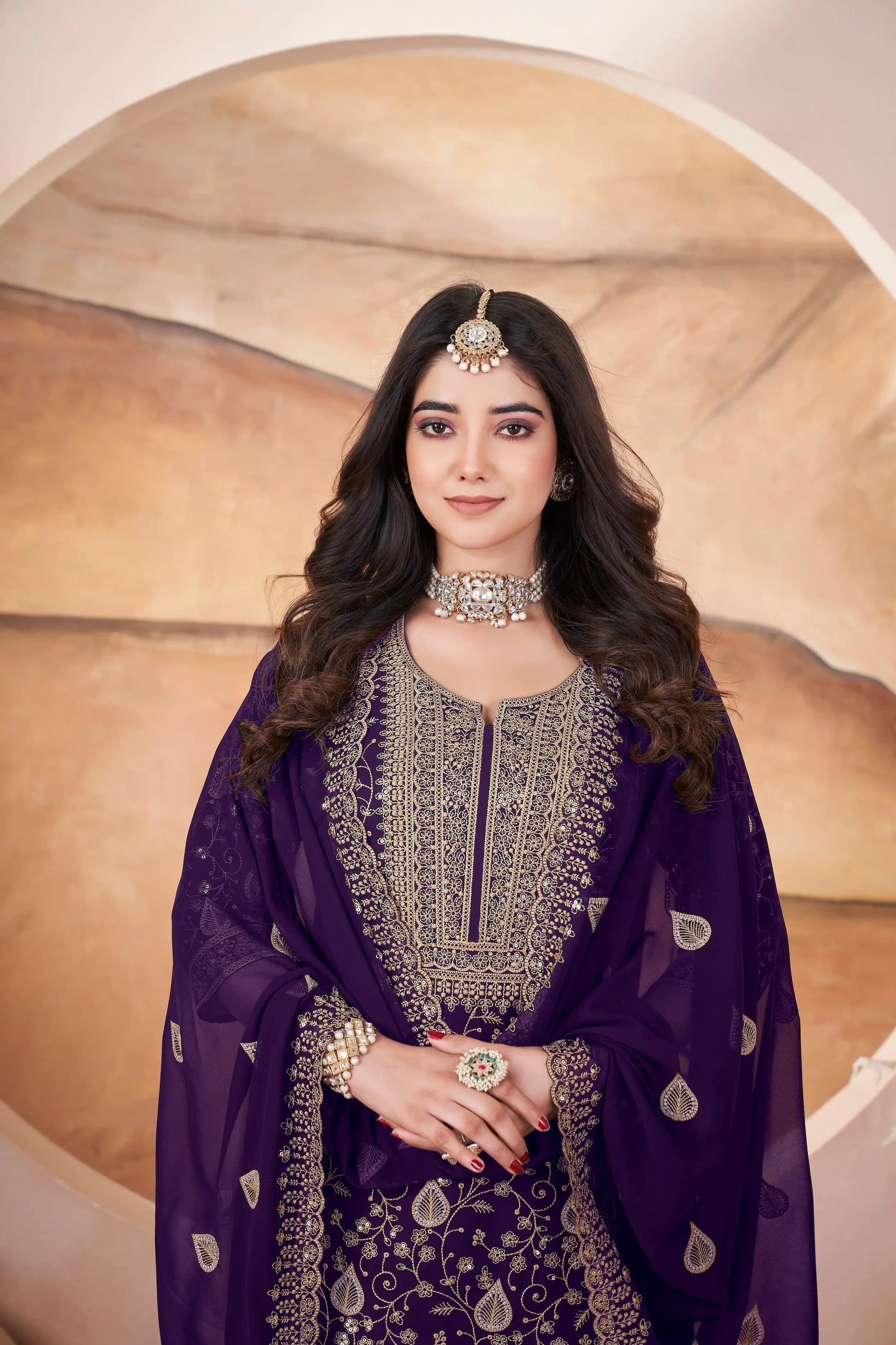 Salwar Suit en Georgette violet avec Broderie et Sequins