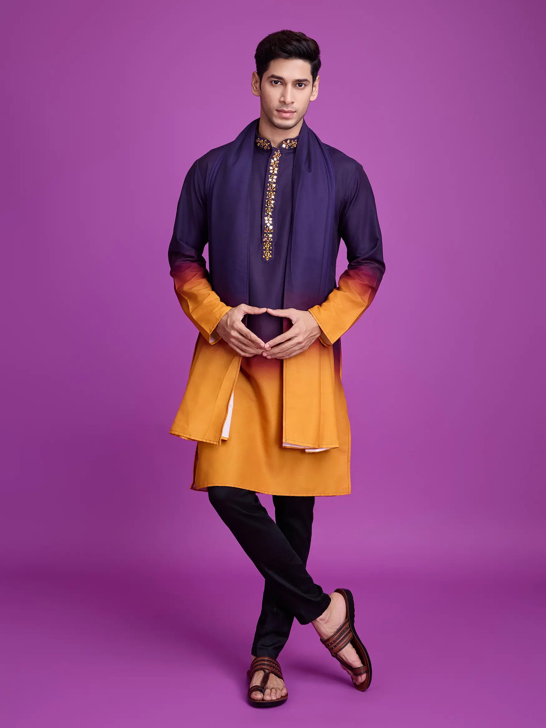 Notre Kurta Violet et Jaune moutarde en Rayon avec Broderies de Miroirs Faites Main. Confectionné dans un tissu de première qualité, il offre une coupe décontractée permettant une grande liberté de mouvement tout en conservant une allure raffinée. Son design minimaliste est parfait pour ceux qui privilégient une élégance subtile. Idéal pour les événements festifs et les réunions familiales, ce kurta s'associe magnifiquement avec des tenues traditionnelles ou un jean. Une pièce intemporelle que vous aurez plaisir à porter régulièrement.
