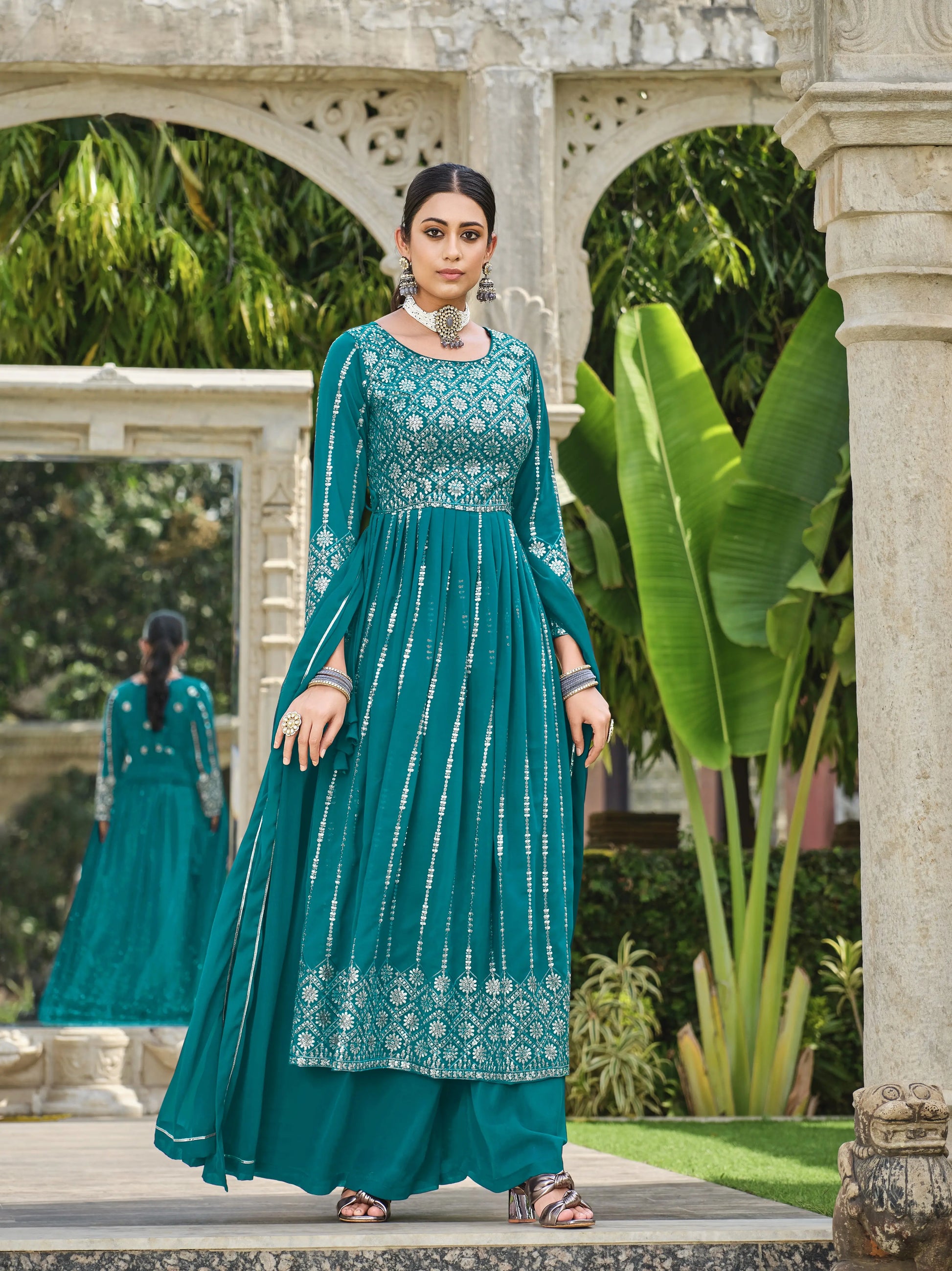Découvrez notre ensemble prêt-à-porter, alliant élégance et confort. Confectionné en pure Fox Georgette, cet ensemble se distingue par son travail de sequins raffiné sur le devant, son tombé fluide et ses finitions soignées. Parfait pour vos événements ou vos occasions spéciales, il incarne l’équilibre parfait entre tradition et modernité.