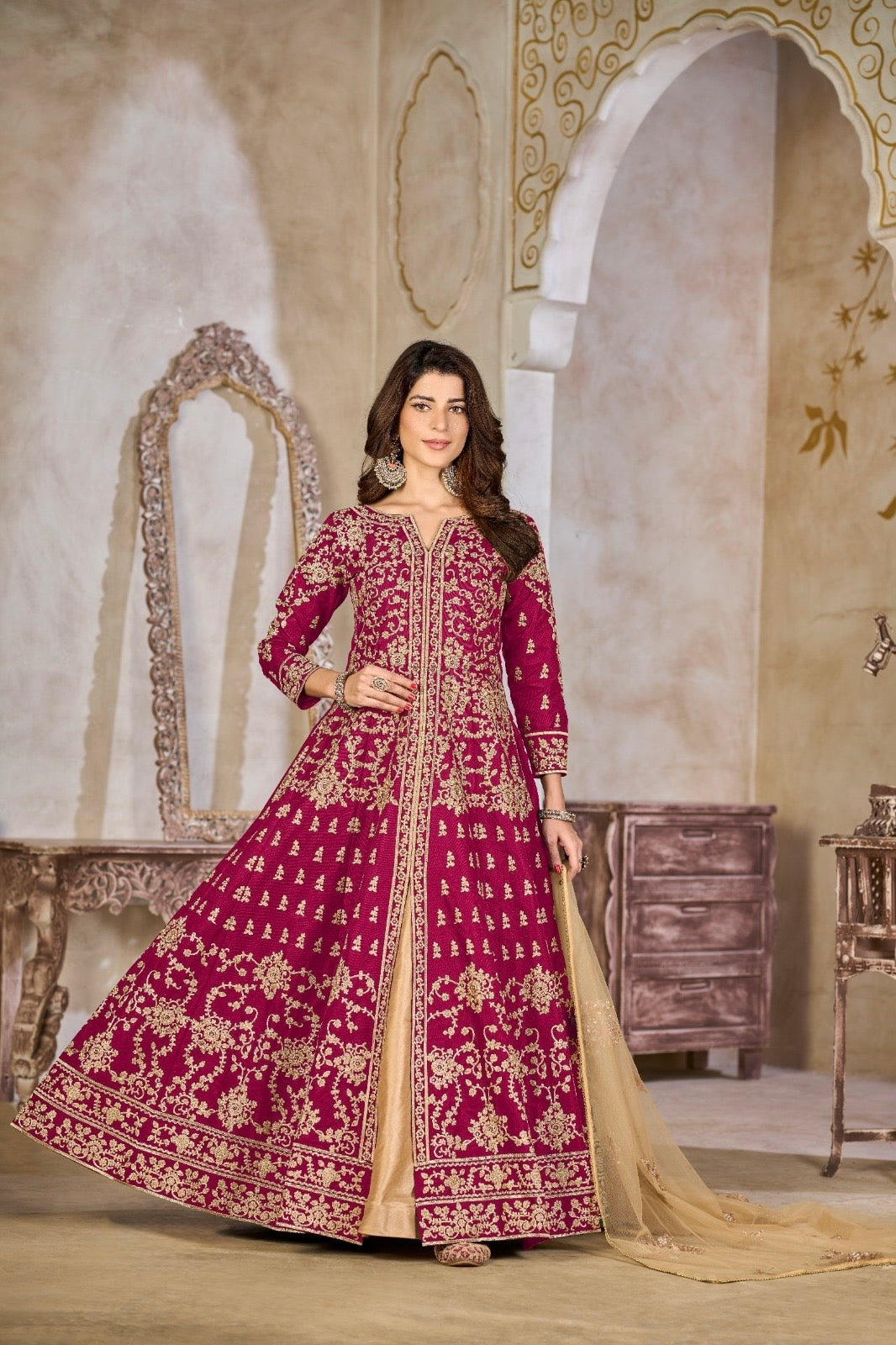 Robe Maxi Rose foncé de fête en tulle COLLECTION NAYLA