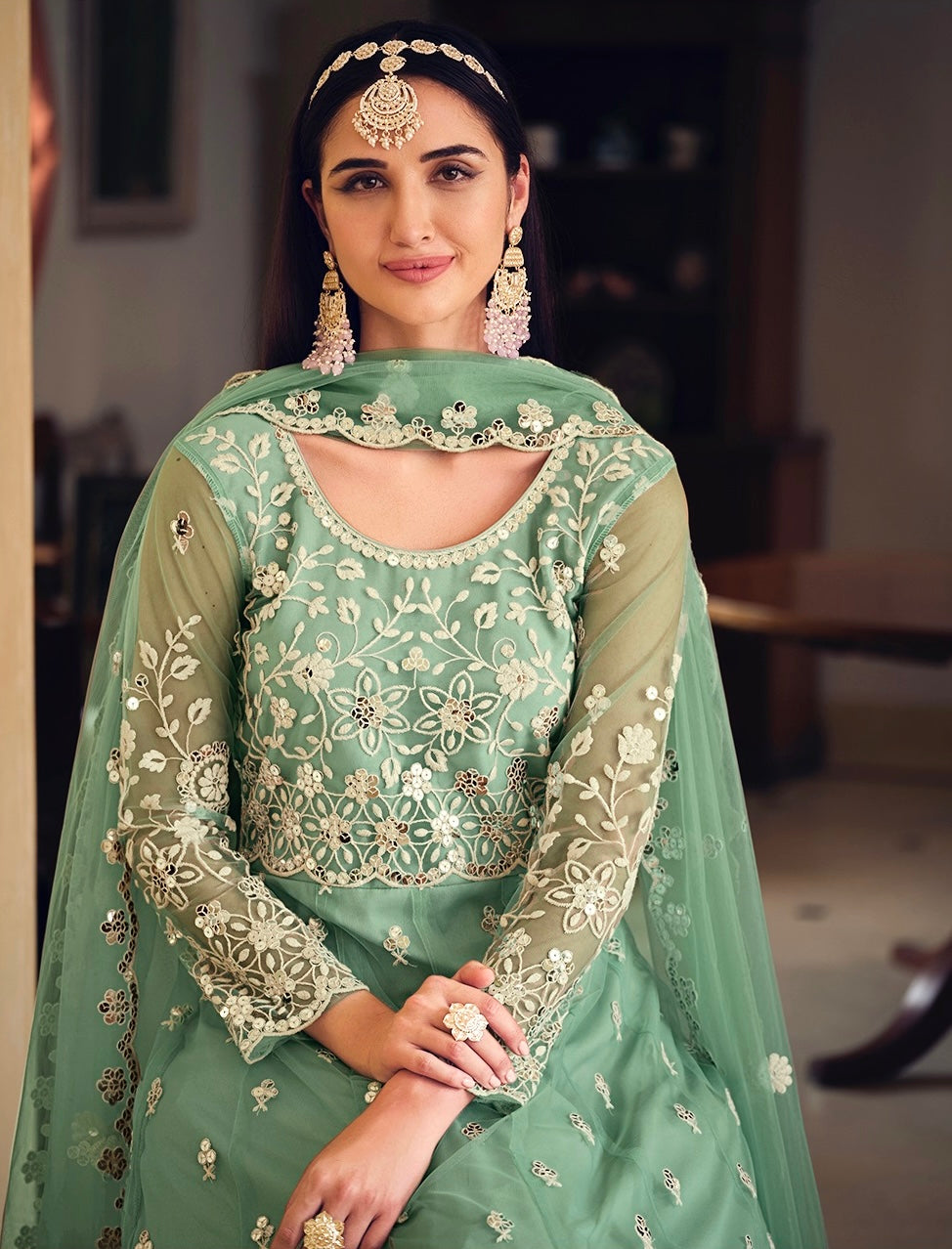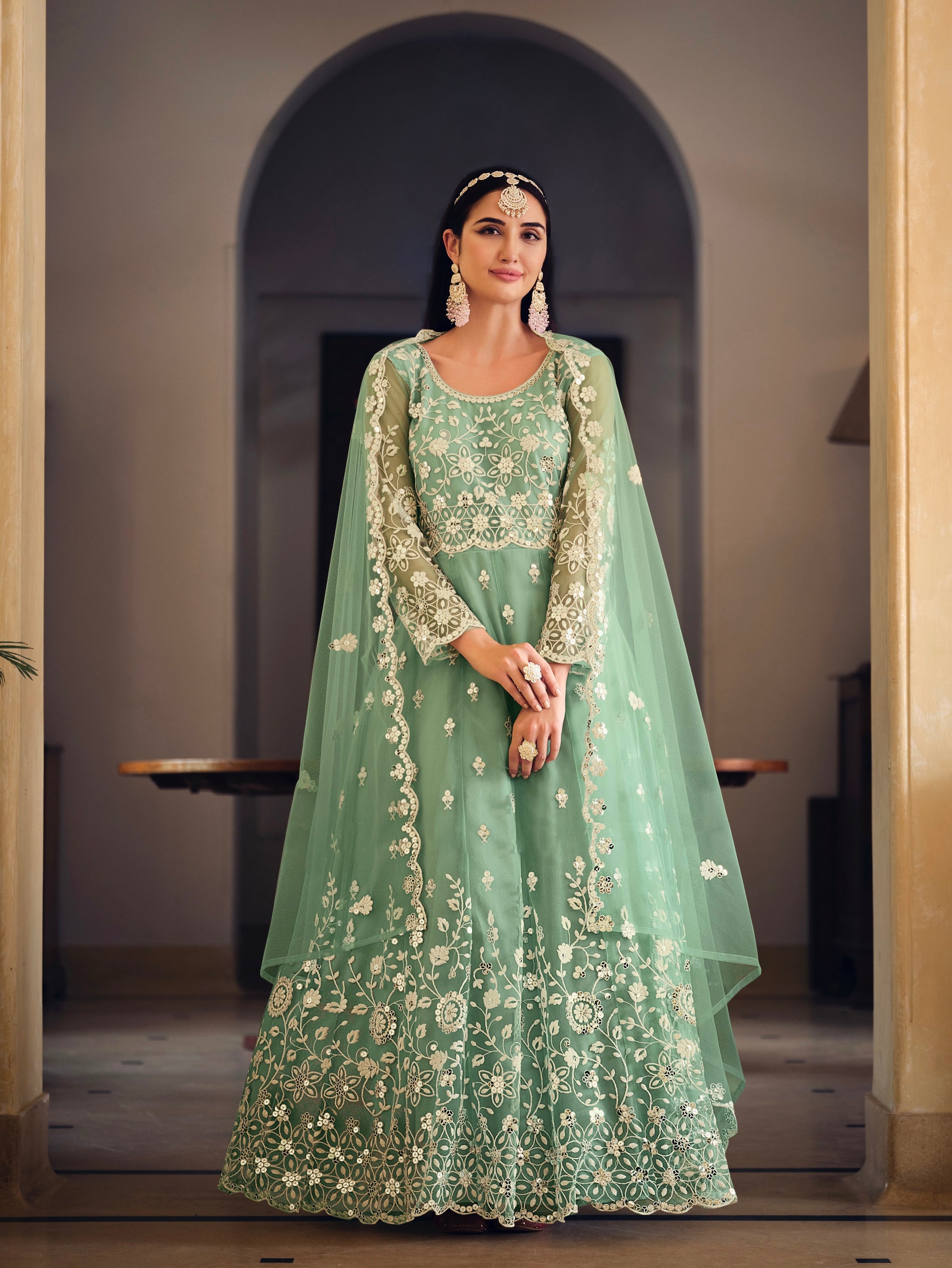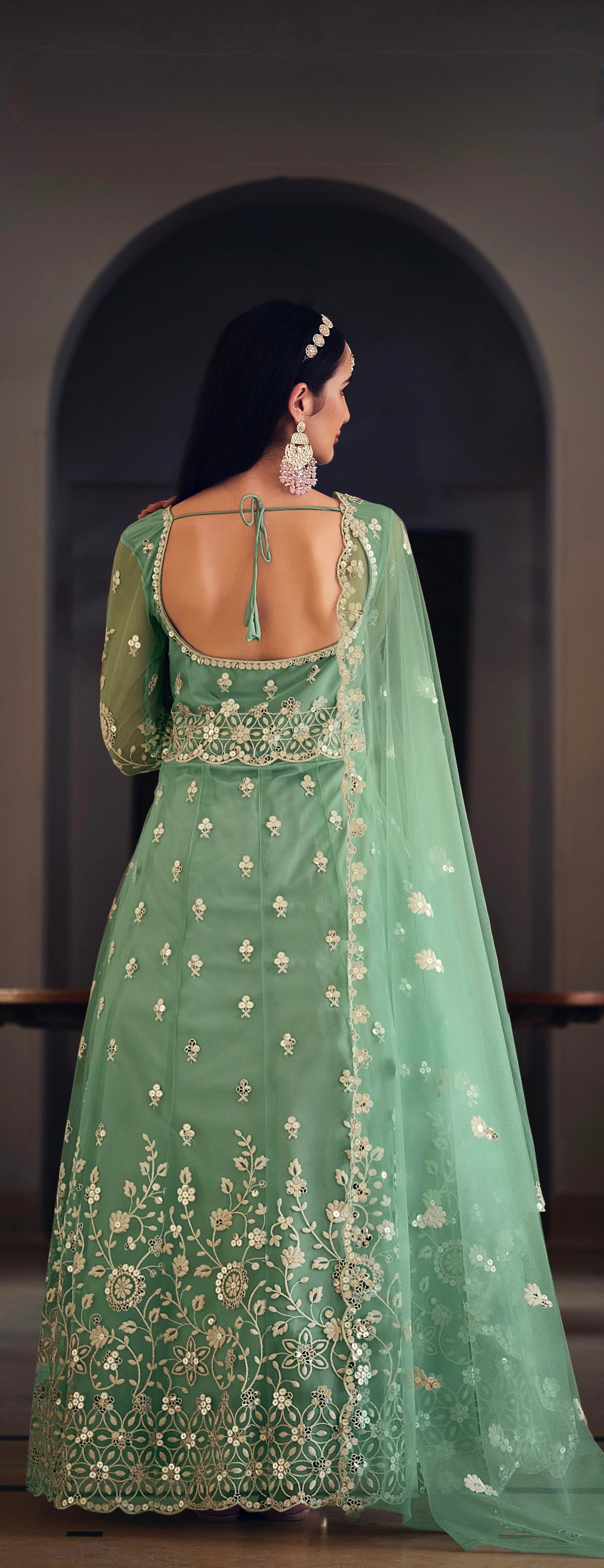 Robe Maxi vert clair pistache pour occasions en tulle et broderies chargées COLLECTION SAKINA