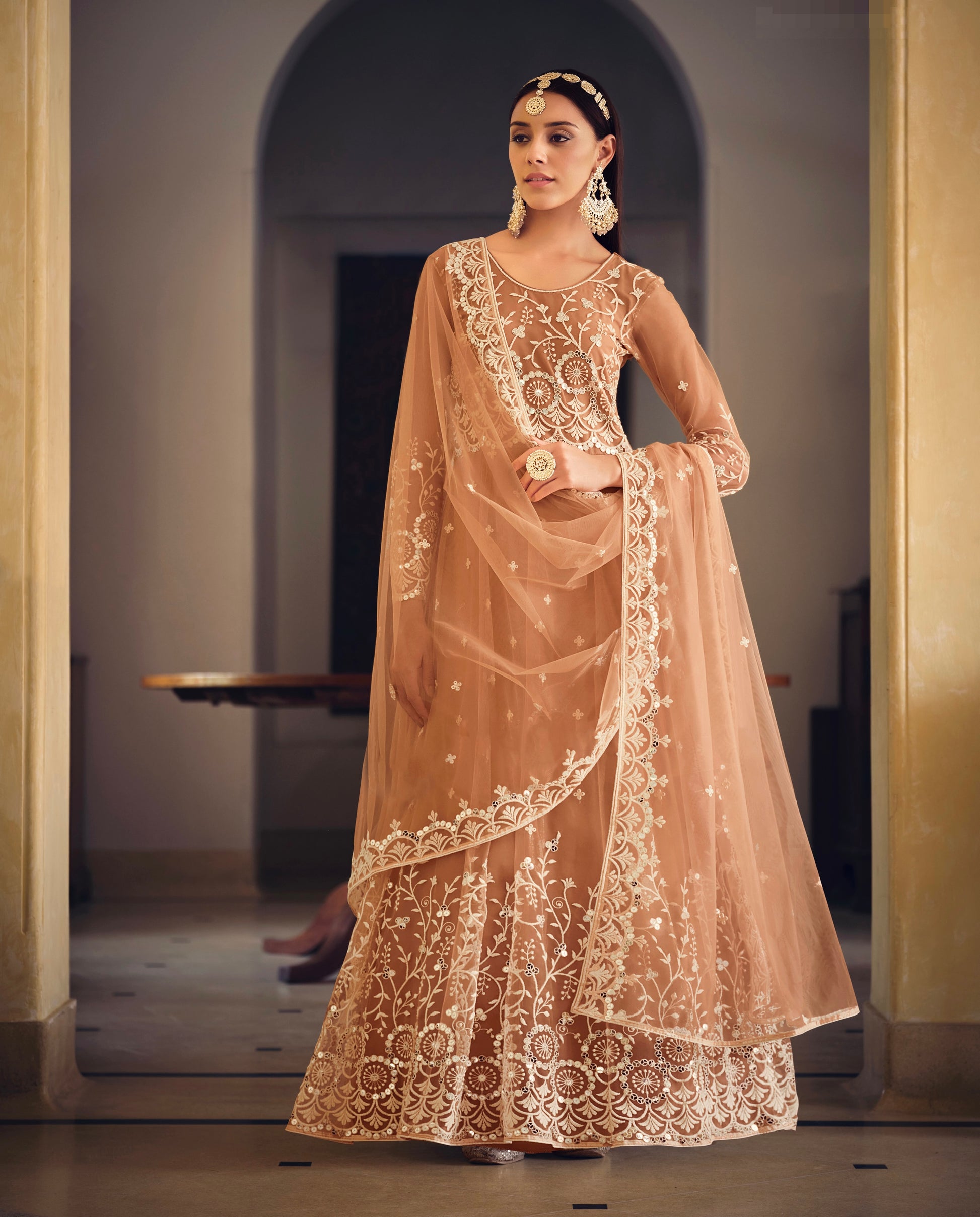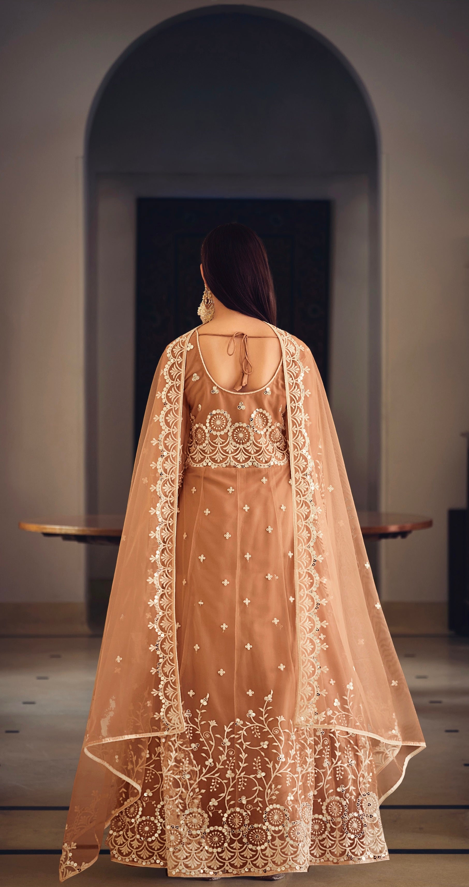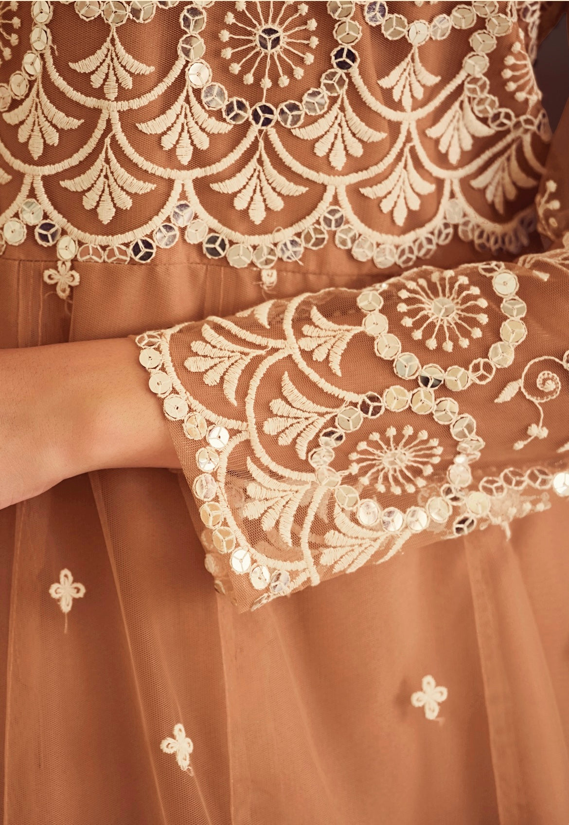 Robe Maxi beige foncé pour occasions en tulle et broderies chargées COLLECTION SAKINA