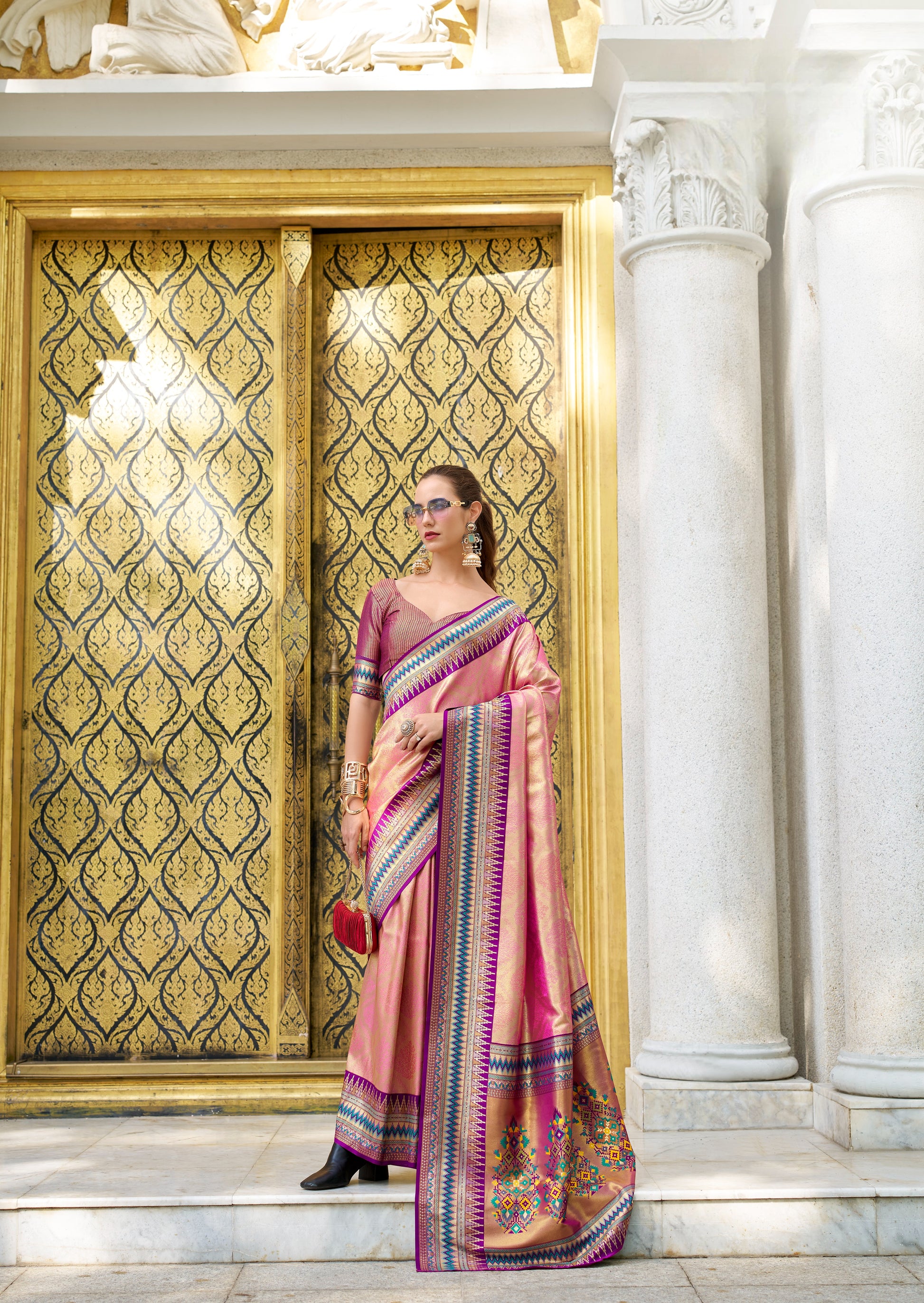 Sari en soie raffiné ethnique à bordure contrastée rose mauve multicolore Tradition COLLECTION RADHIKA