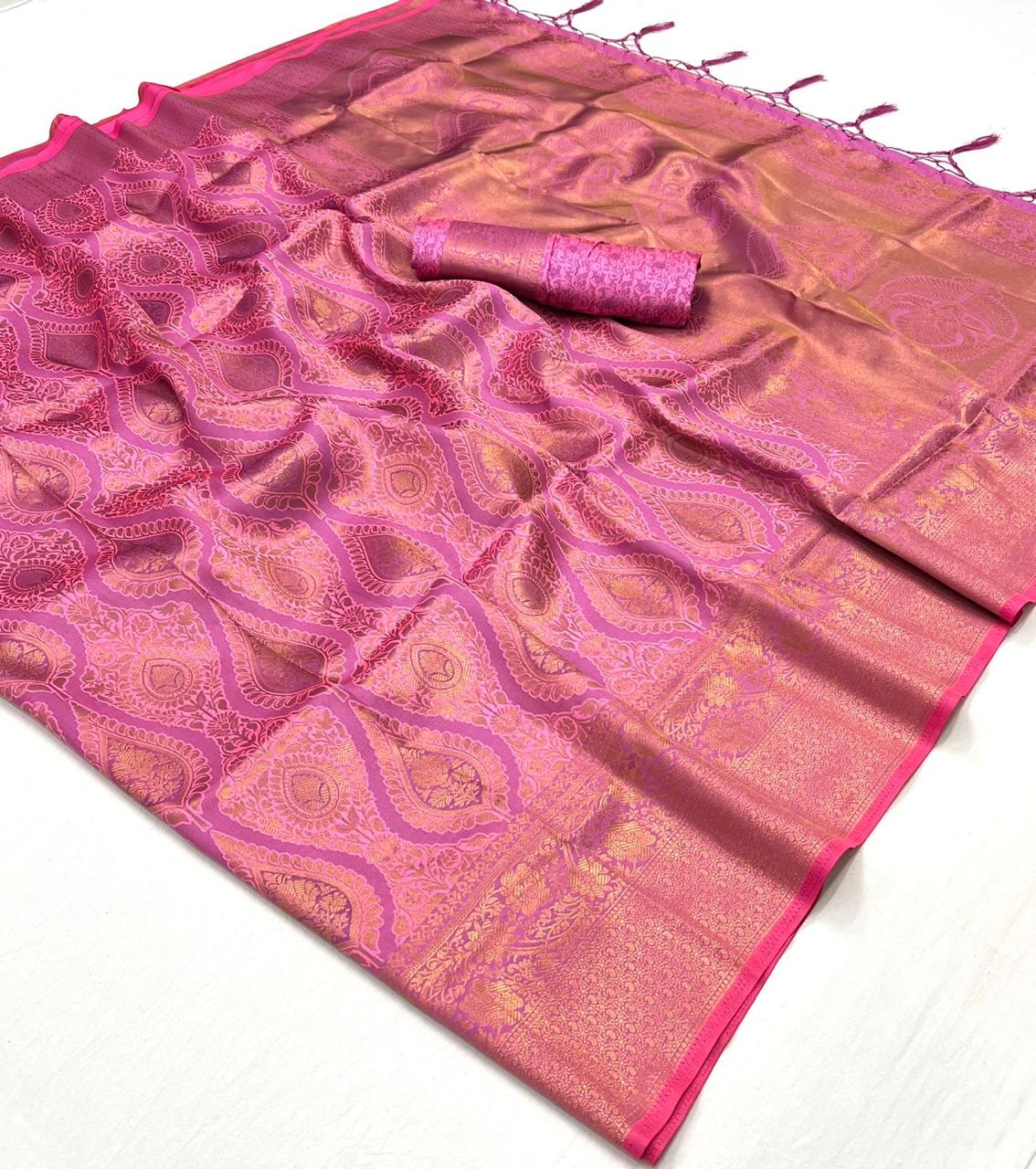 Sari rose tissé main effet bicolore Tradition COLLECTION QALA