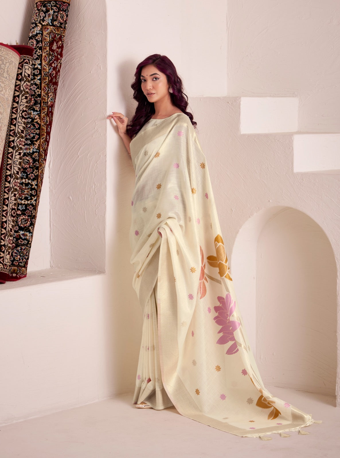 Sari beige clair aux motifs romantiques de fleurs COLLECTION ISHITA