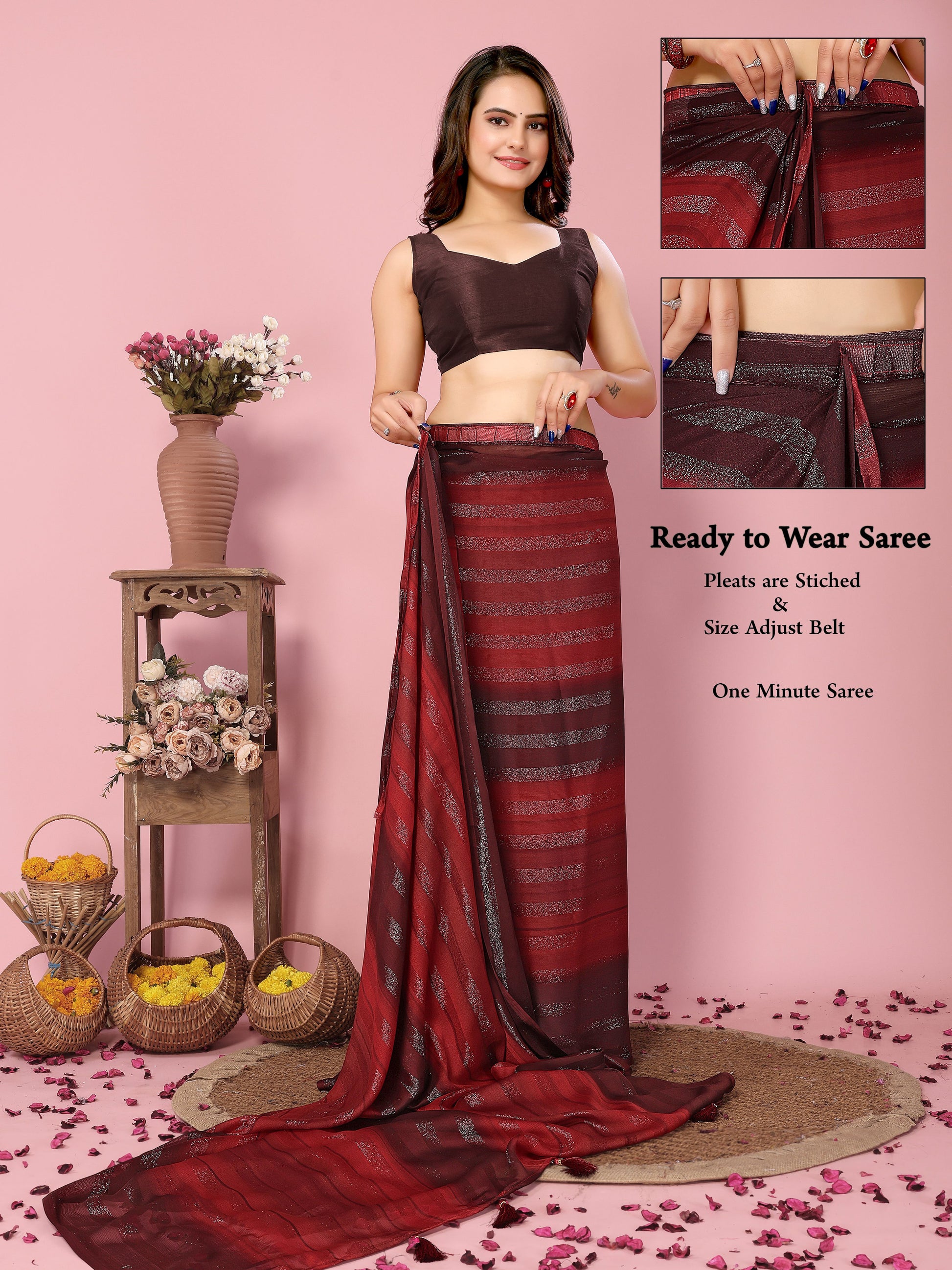 Laissez-vous séduire par ce sari prêt-à-porter confectionné en soie Rangoli fluide et élégante, idéal pour celles qui cherchent à adopter un look élégant en quelques secondes !