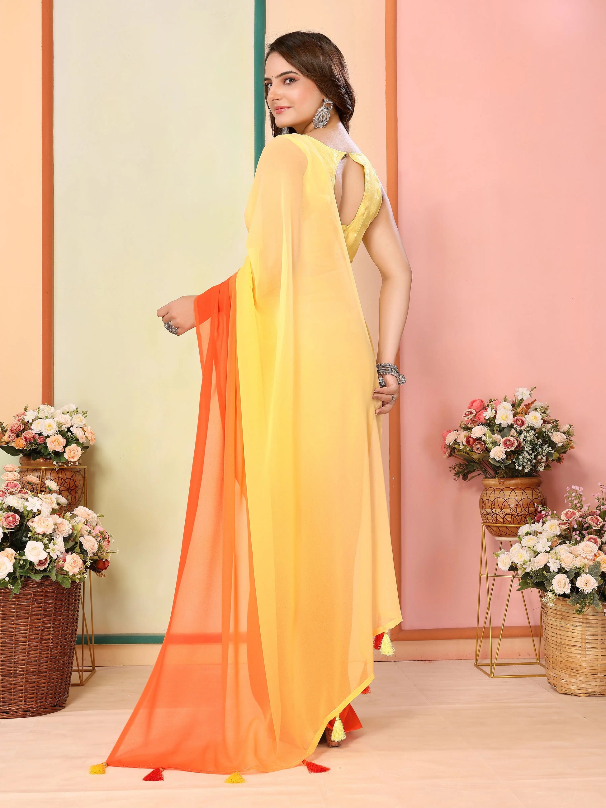 Sari prêt-à-porter jaune orange en georgette légère COLLECTION JANHVI