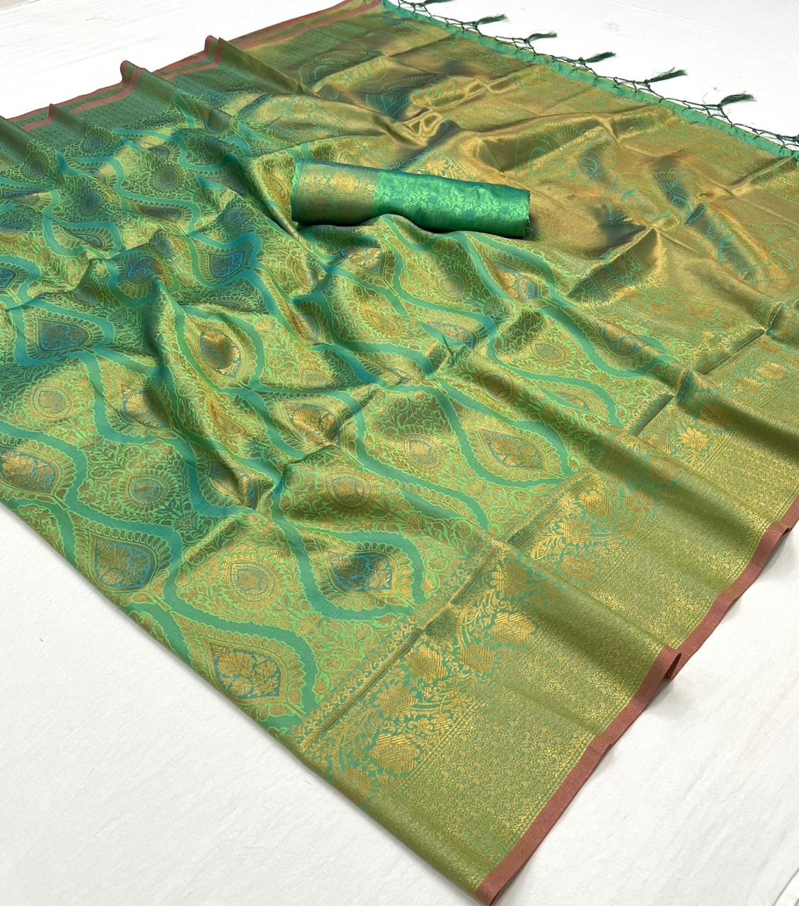 Sari vert tissé main effet bicolore Tradition COLLECTION QALA