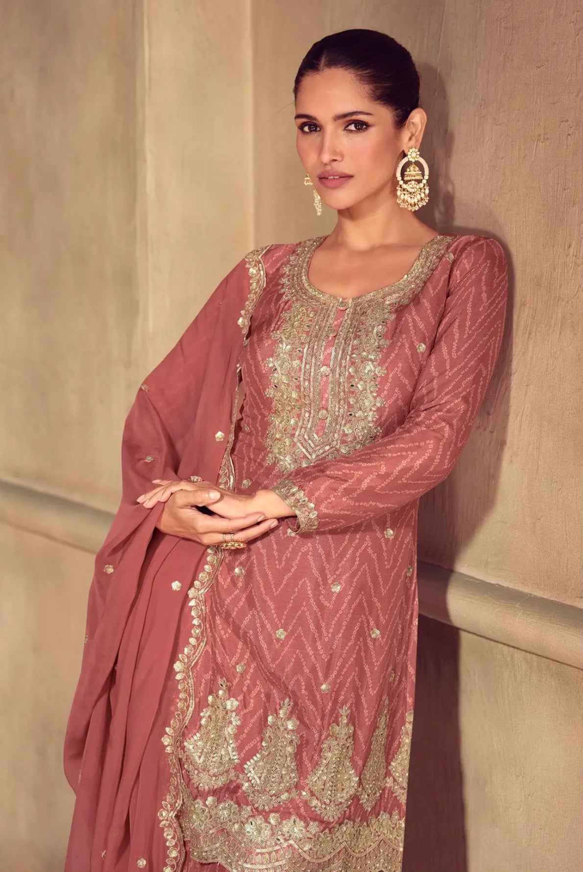 Alliant tradition et élégance contemporaine, cet ensemble sharara palazzo en soie Chinon séduit par son tissu fluide, rehaussé d’imprimés raffinés et d’une broderie soignée. Une tenue chic et confortable, idéale pour briller lors des mariages, réceptions et fêtes.
