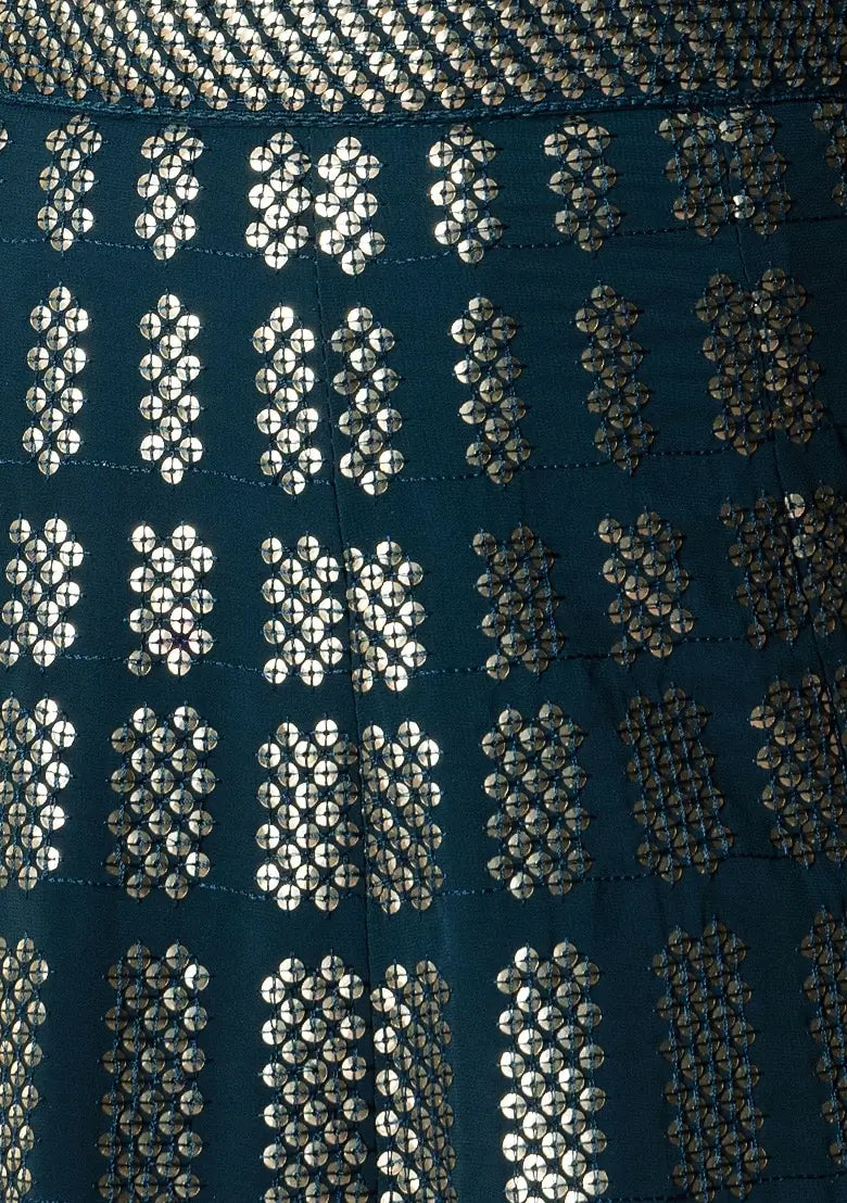 Lehenga Choli en georgette bleu-vert foncé avec sequins et broderie à fil